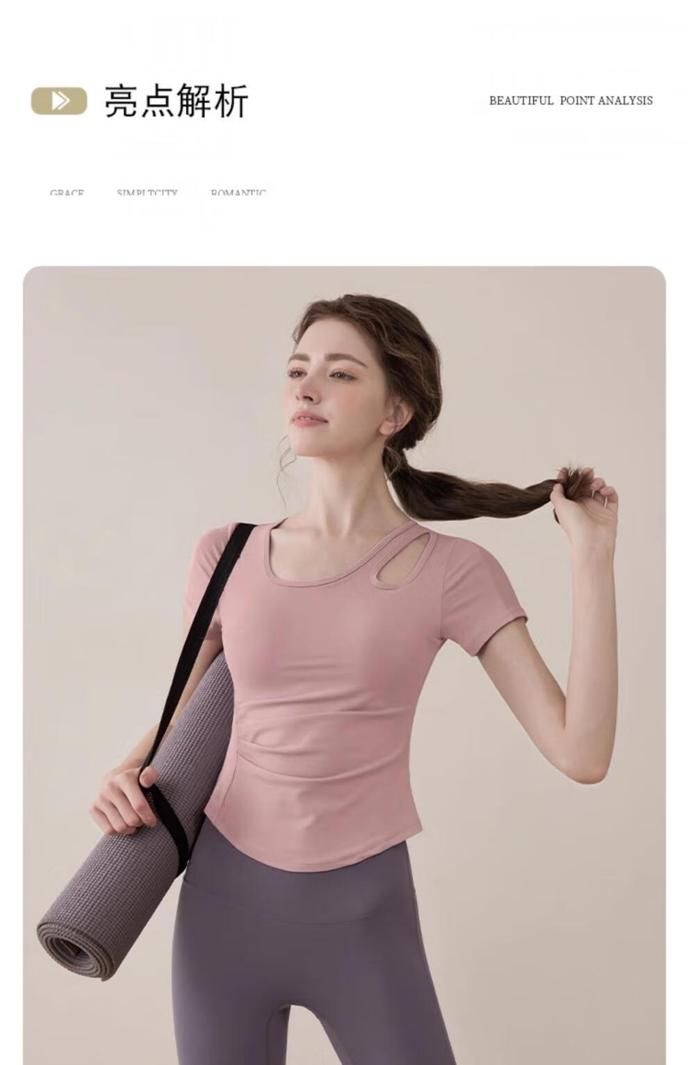 SMVPVOJ yoga clothes for women 2025 new short-sleeved slim sports tops Pilates training clothes fitness clothes pink tops fixed chest pad S weight 95Jin Jin is equal to 0.5 kg or less