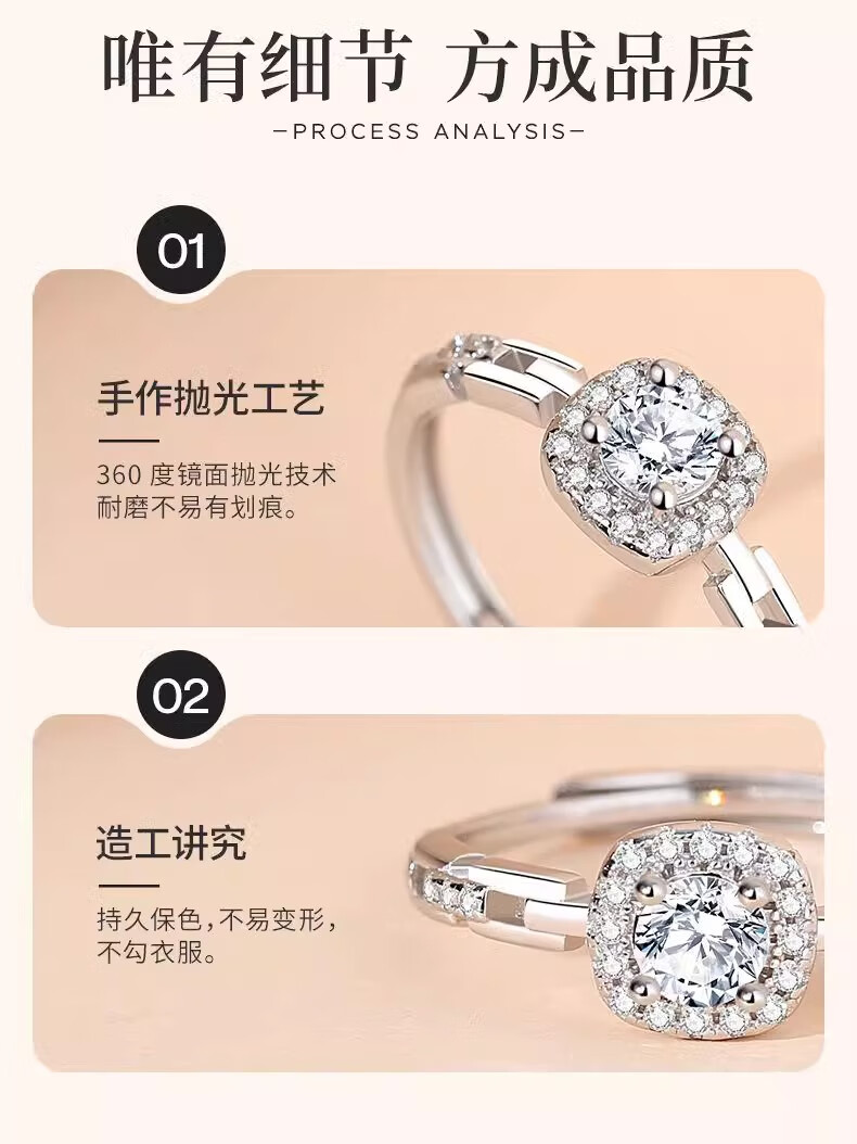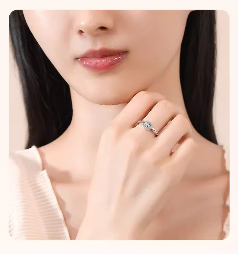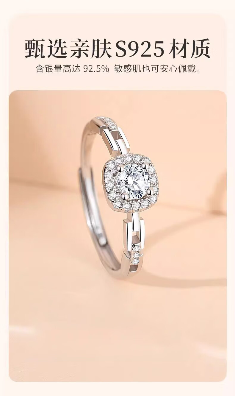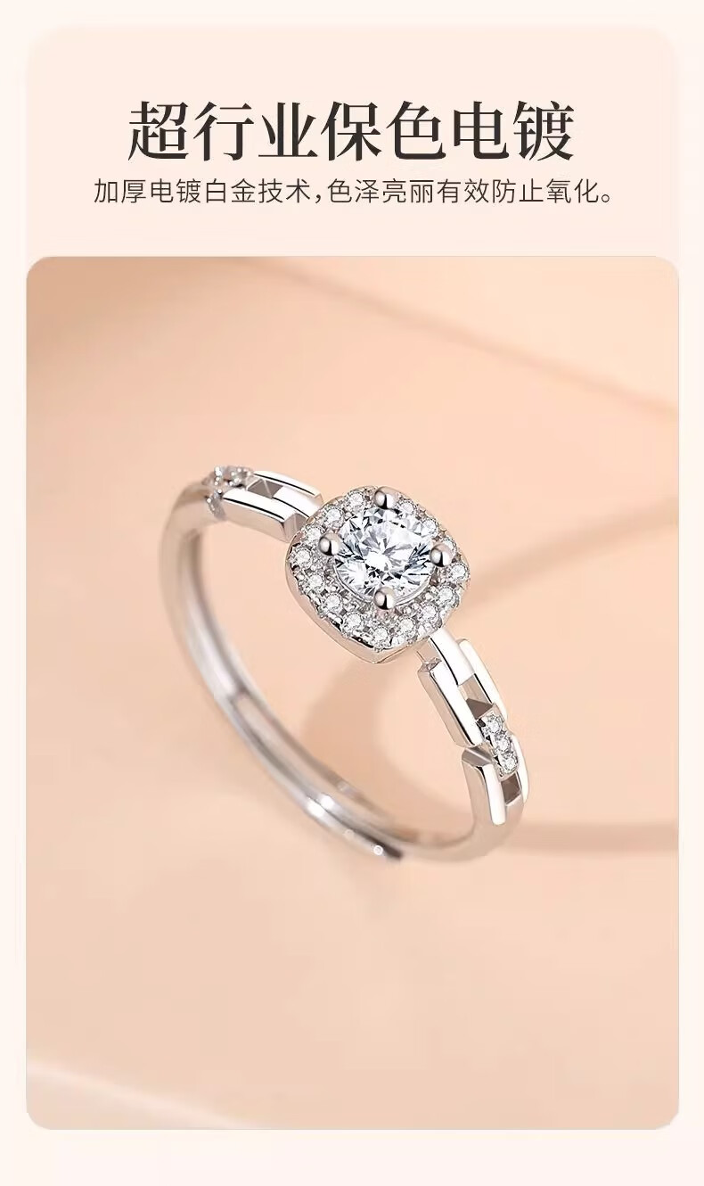 Lao Fengxiang S925 silver small sugar cube ring for women, light luxury adjustable ring, Valentine's Day birthday gift for girlfriend and lover, small sugar cube ring