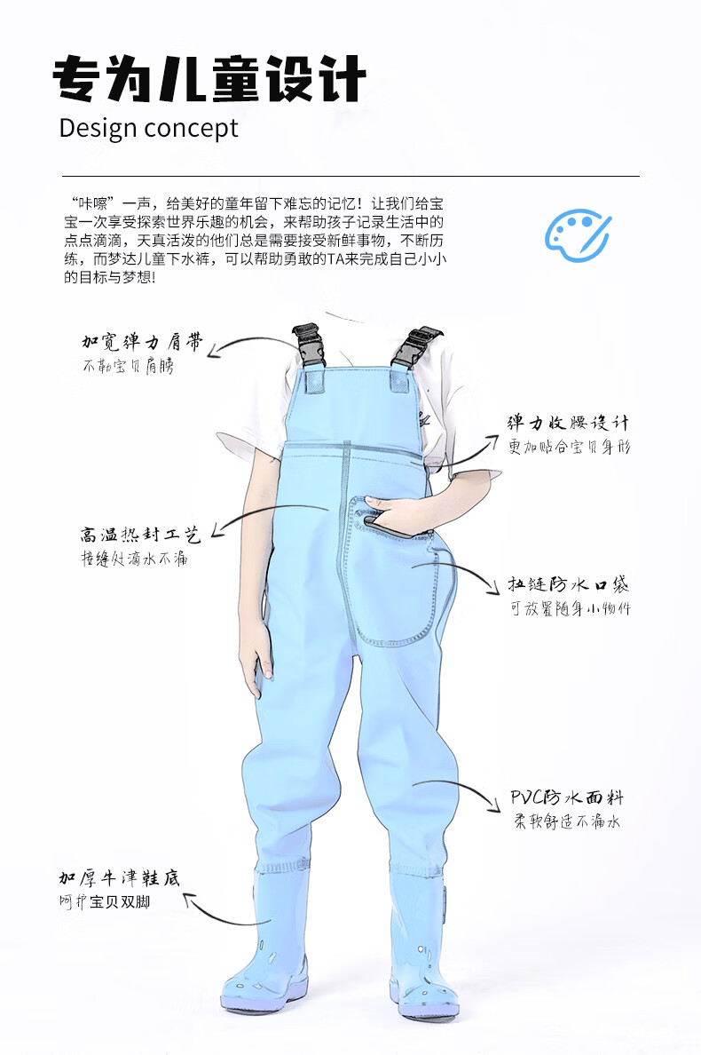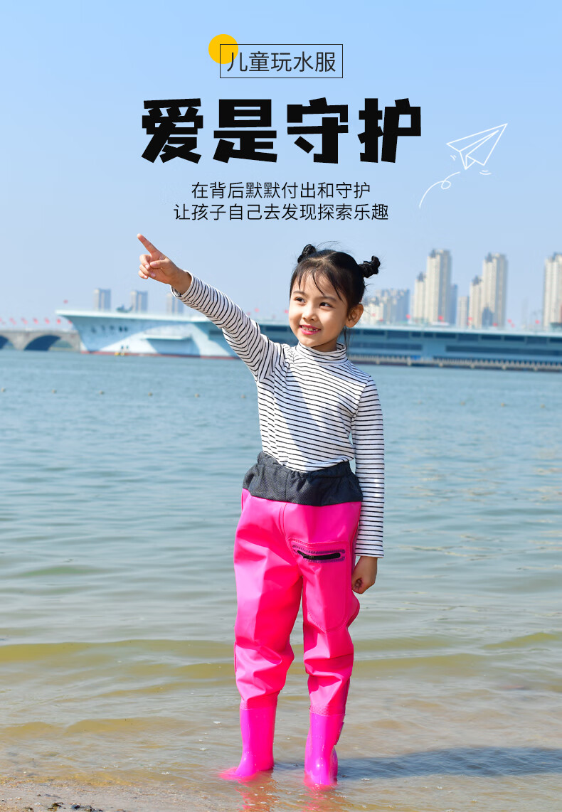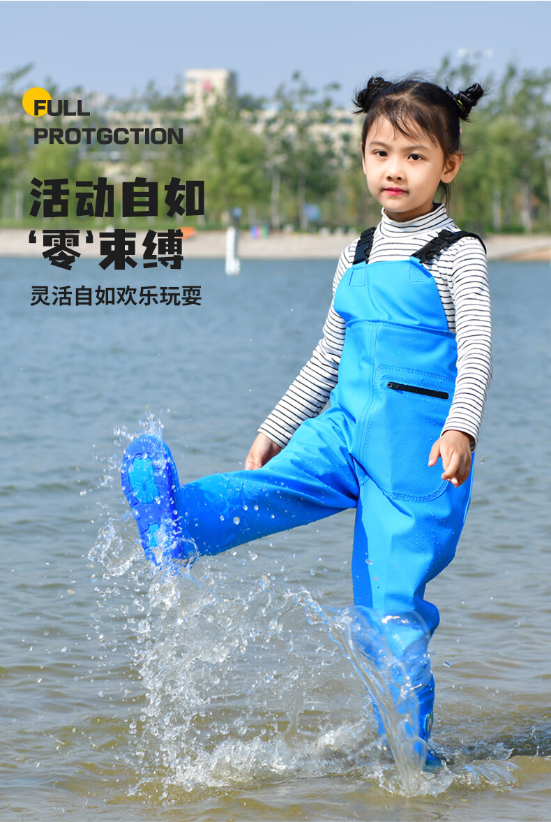 He Jiagong's wading pants for children, children's water play one-piece waders, kindergarten waterproof clothes, sea fishing equipment, men and women's fishing wading pants, children's yellow overalls (replacement for leakage), available in size 22 (shoe inner length 13cm)