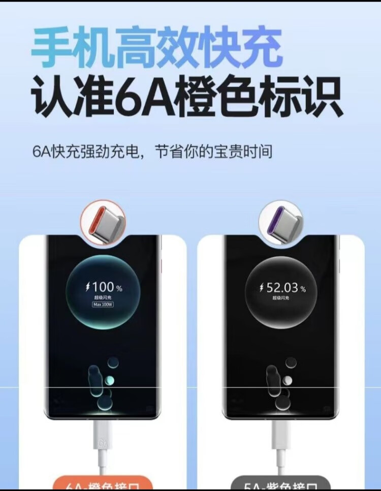 Rekoda is suitable for original Huawei 120W super fast charging charger mate60/P50/P60 fast charging data cable Honor 6A fast charging cable 2 meters 1