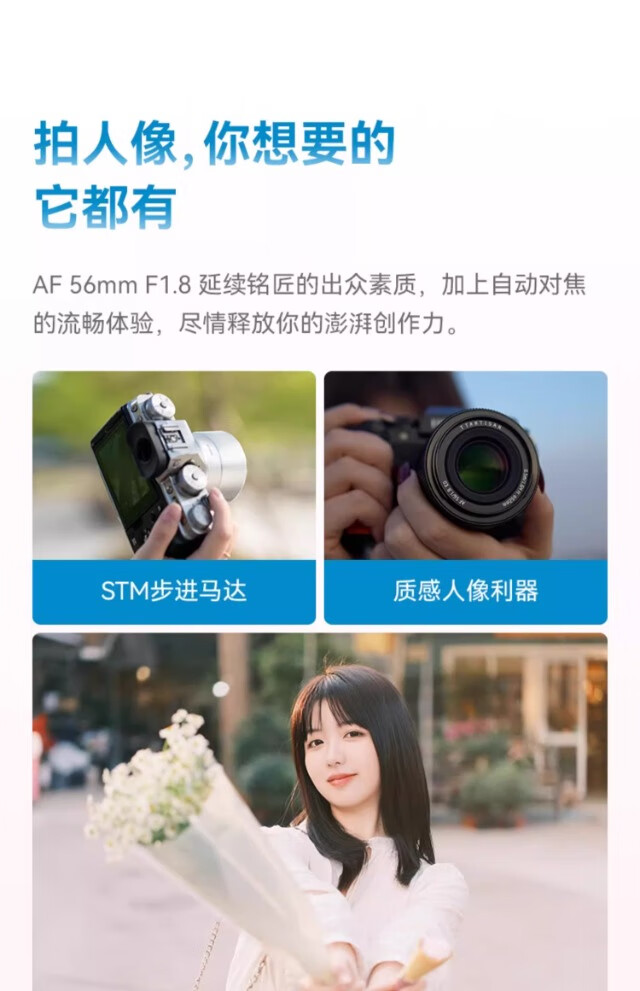 Mingjiang AF56mm f1.8 autofocus large aperture portrait fixed focus half-frame lens AF56 1.8 mirrorless camera fixed focus XM5 lens Sony E-mount black official standard package does not include filter cleaning kit and other necessary accessories. Recommended package