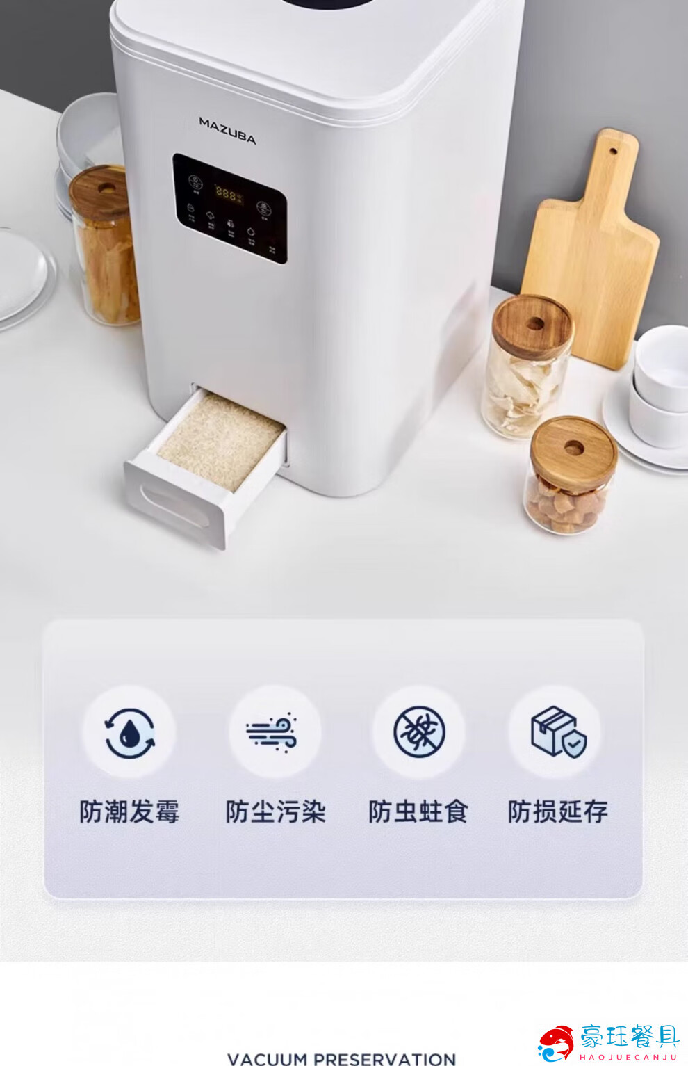 MDNG Japan imported quality Songqiao household vacuum rice bucket insect-proof and moisture-proof sealed rice storage box smart Japanese kitchen gold beige