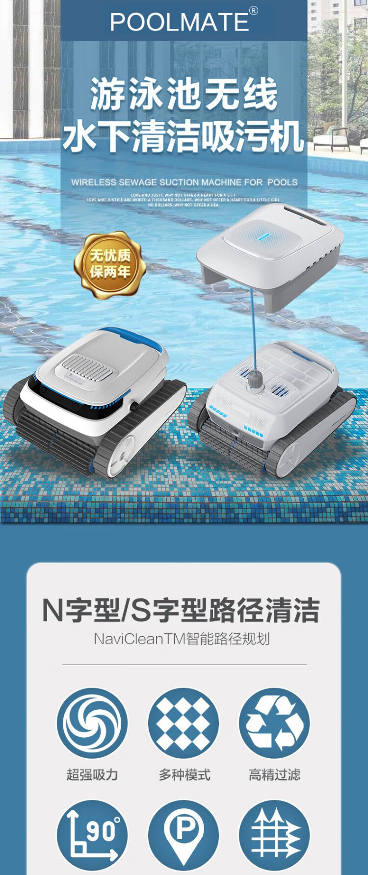 PoolMate swimming pool fully automatic sewage suction machine villa landscape pool intelligent cleaning robot bath wireless underwater vacuum cleaner PC10 wireless sewage suction machine