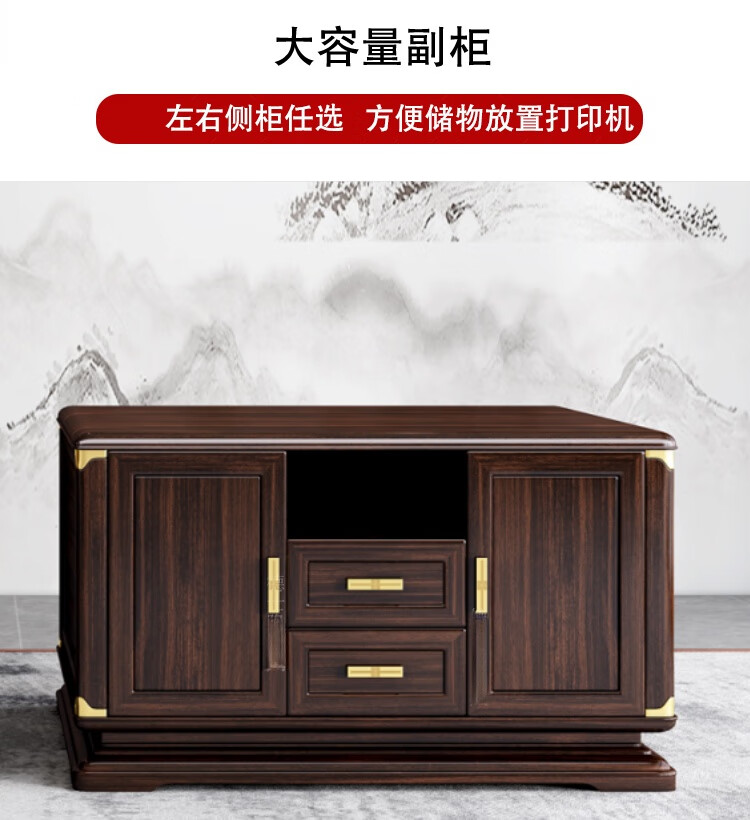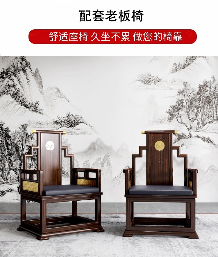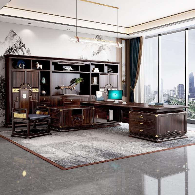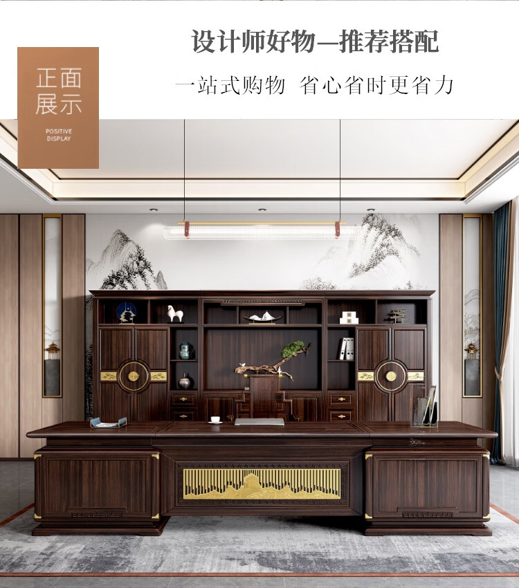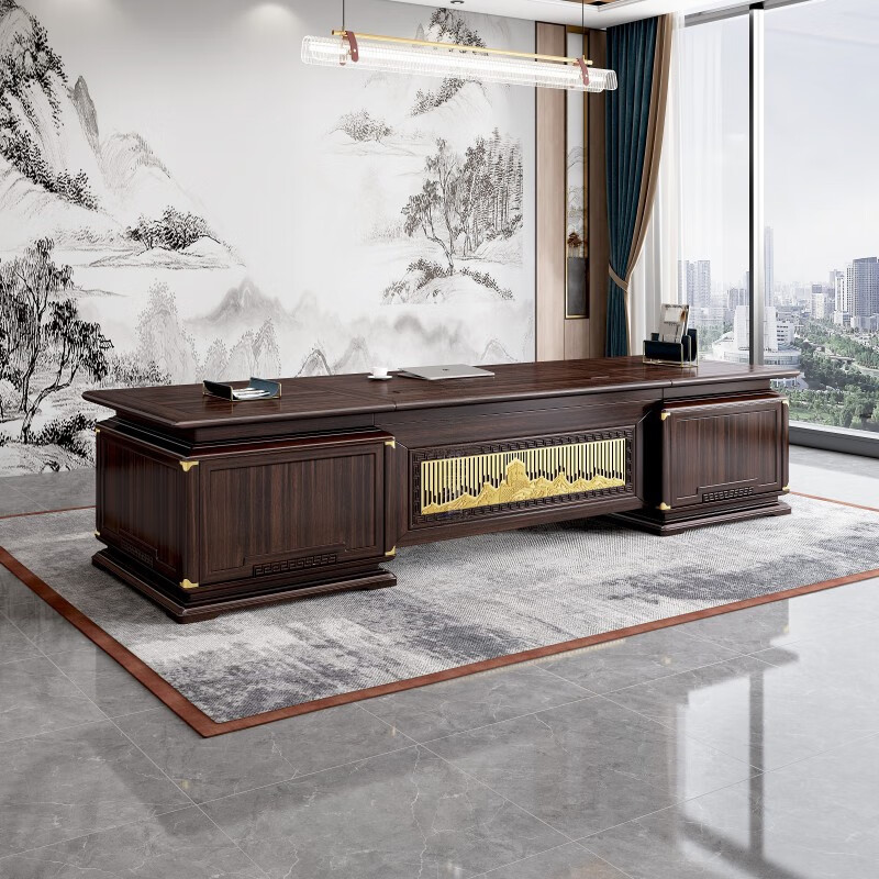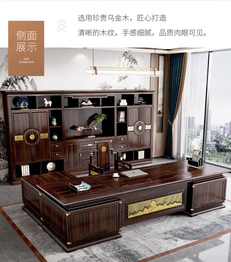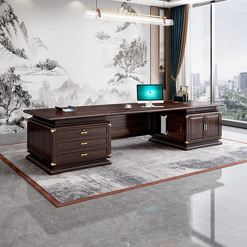New Chinese style all-solid wood desk combination boss desk ash ebony wood high-end executive desk chairman's office 2.4m desk/ash wood