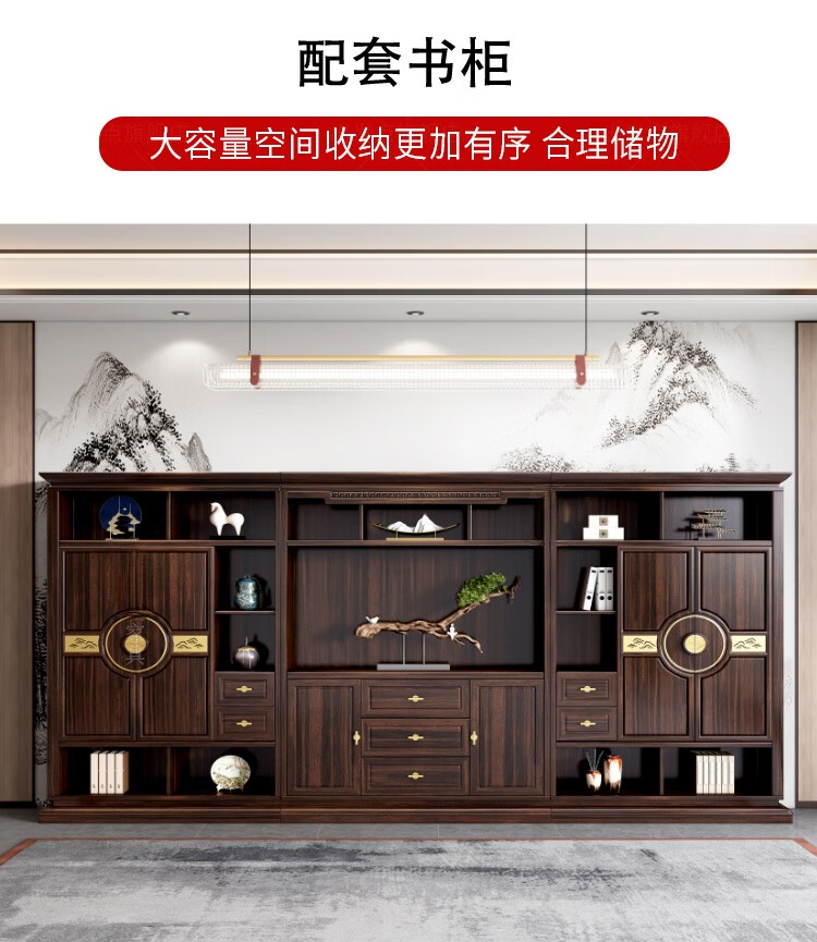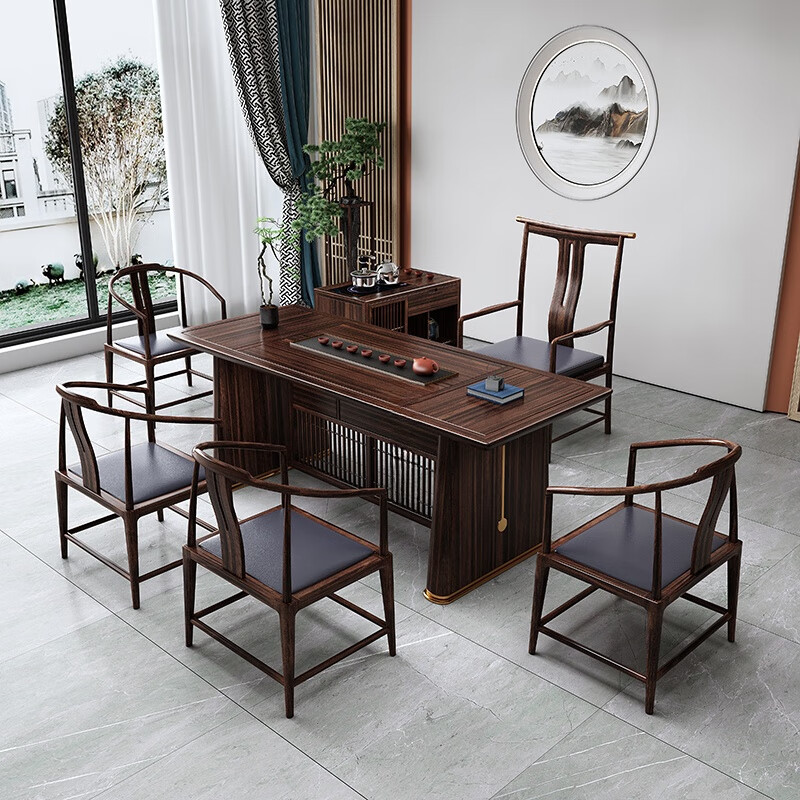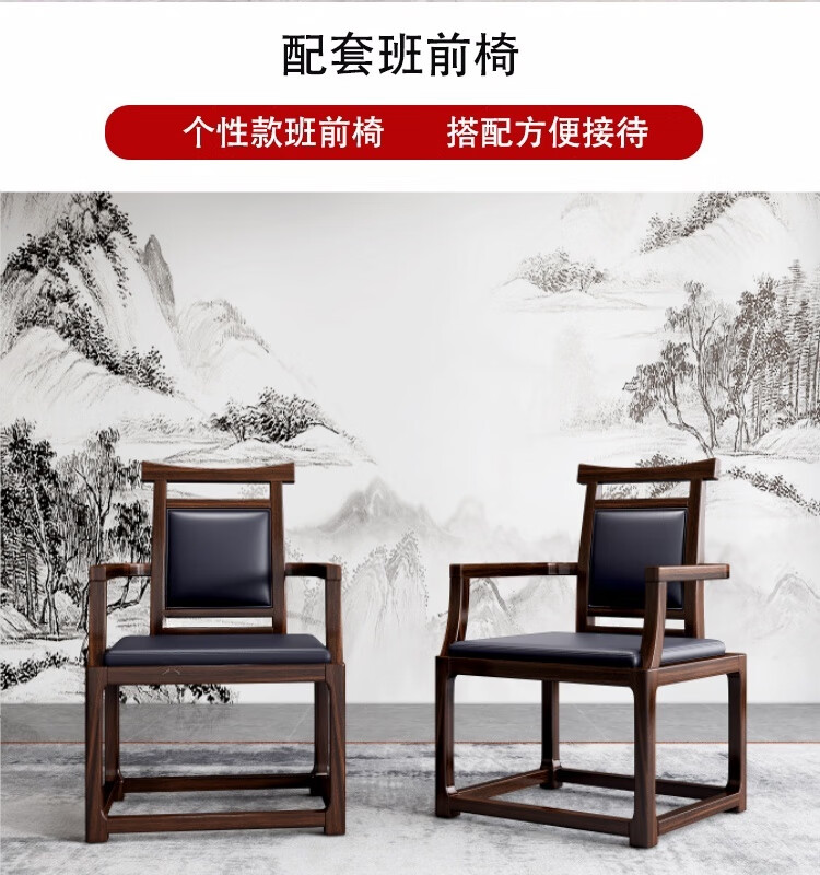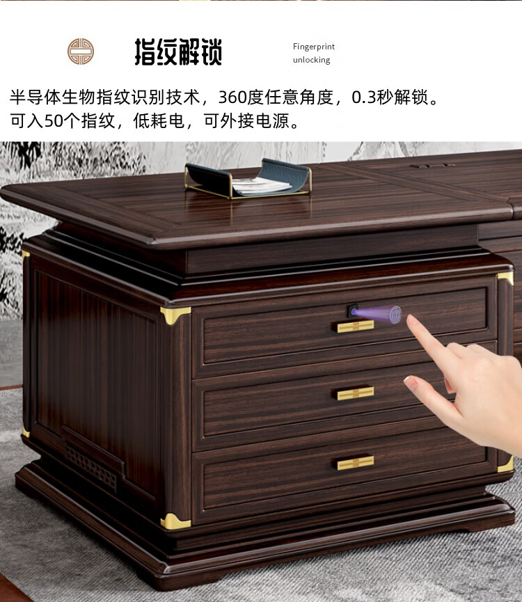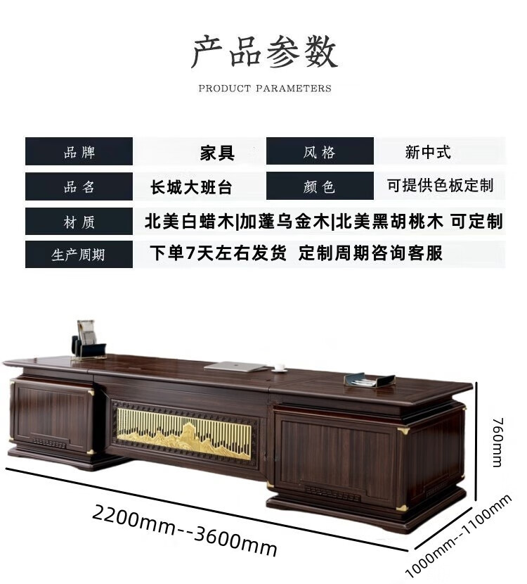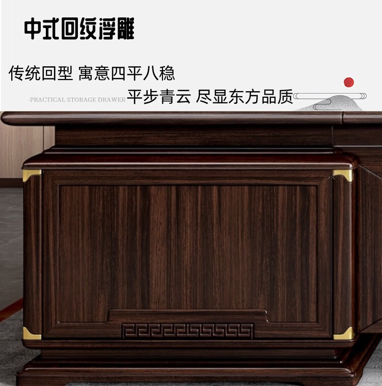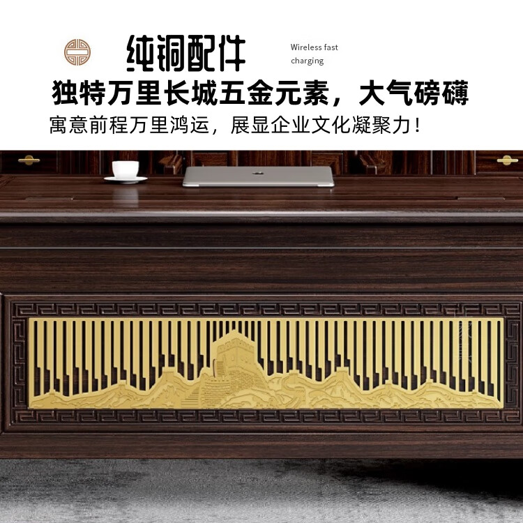 New Chinese style all-solid wood desk combination boss desk ash ebony wood high-end executive desk chairman's office 2.4m desk/ash wood