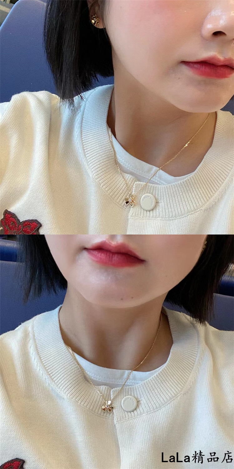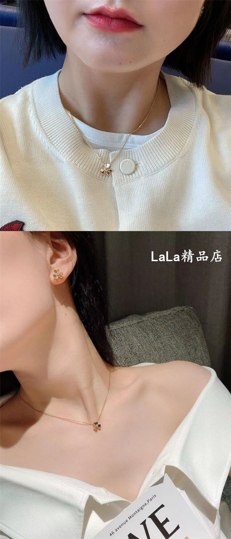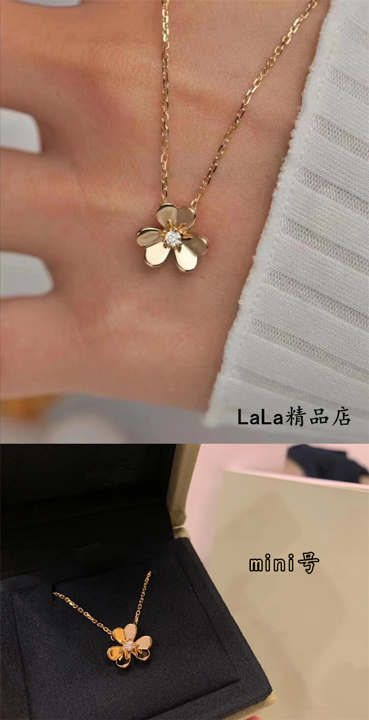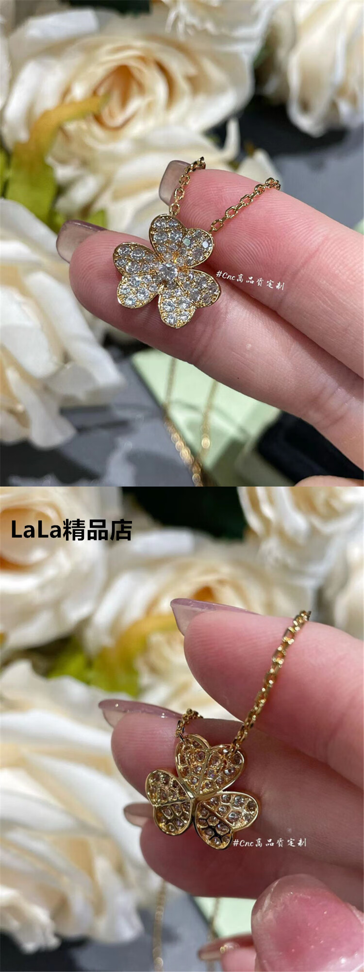 CAOX new light luxury clover necklace full of diamond petals plated 18K gold flower single diamond clavicle chain clover pendant for women