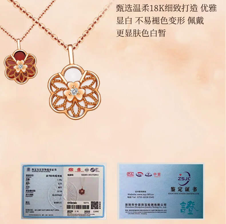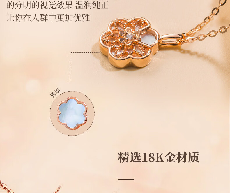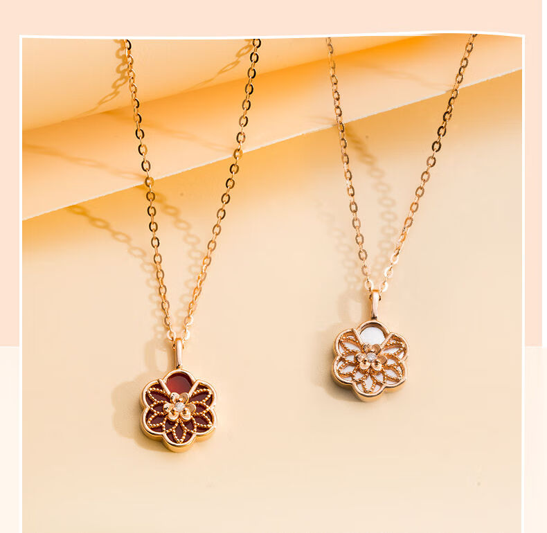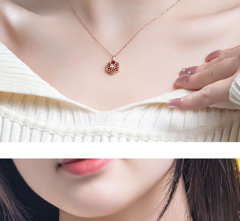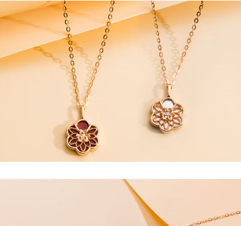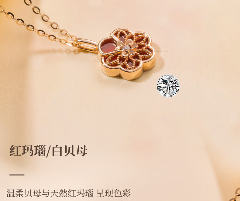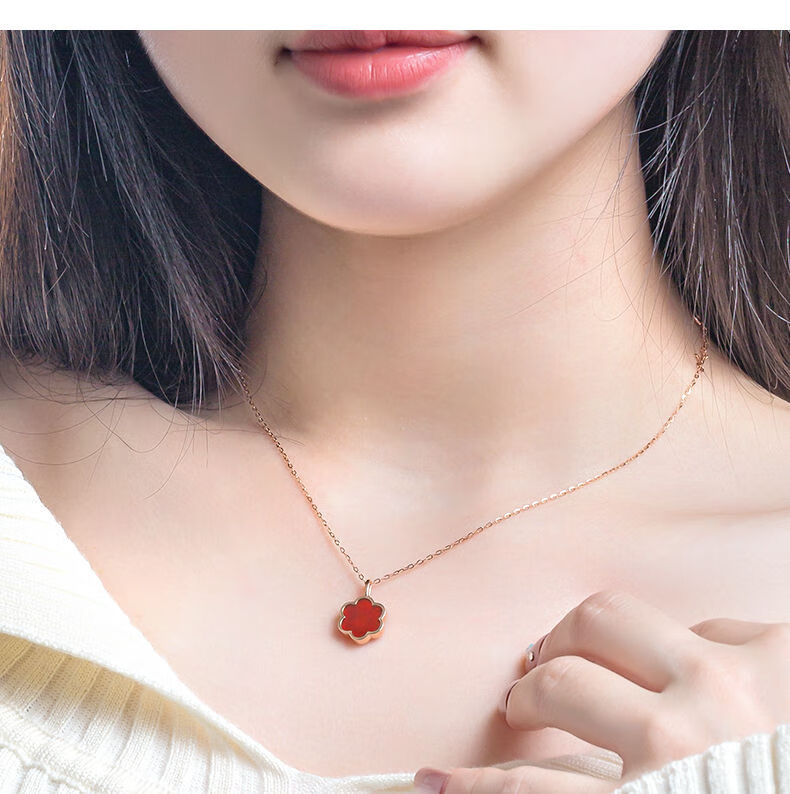 CAOX 18K gold flower diamond red agate necklace for women, rose gold and white mother-of-pearl clavicle pendant gift for girlfriend 18K white mother-of-pearl single pendant + 18K flash O chain