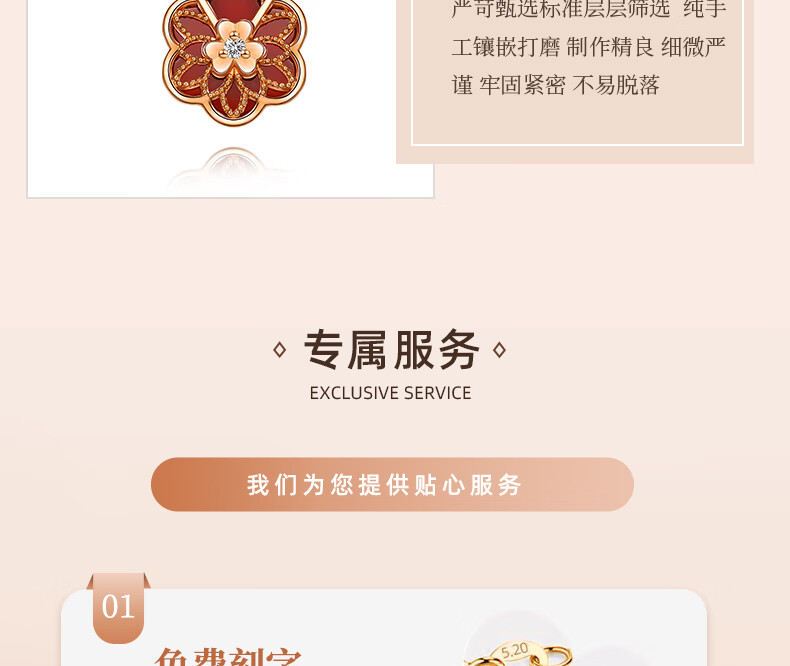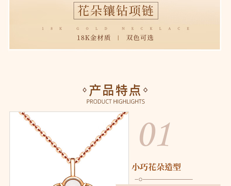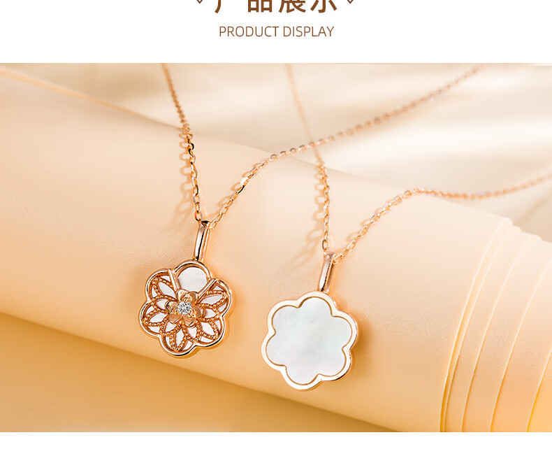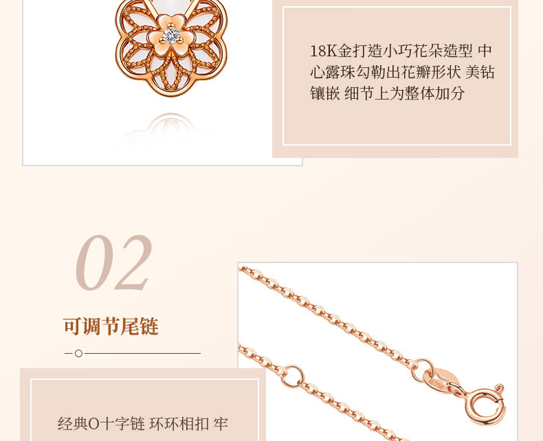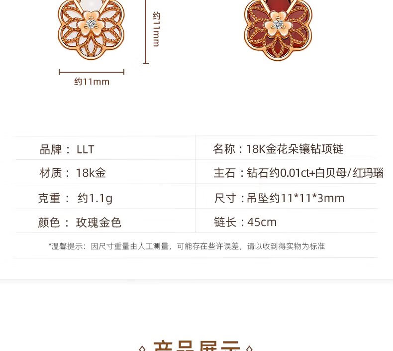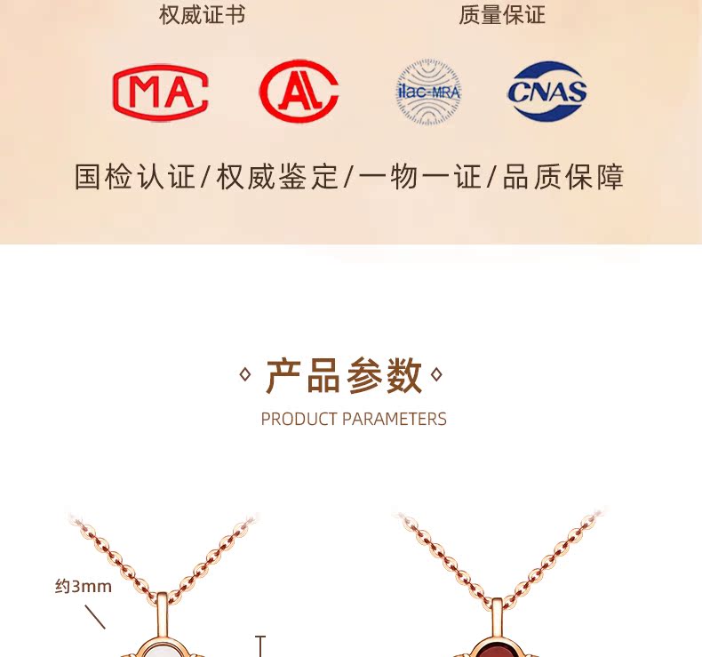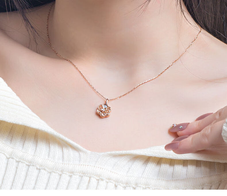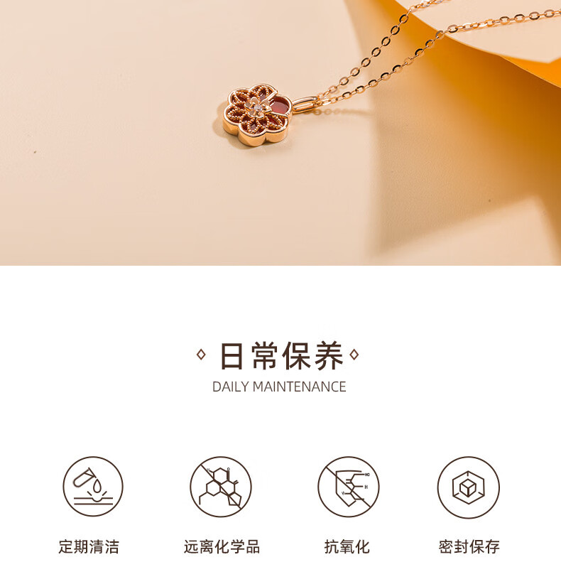 CAOX 18K gold flower diamond red agate necklace for women, rose gold and white mother-of-pearl clavicle pendant gift for girlfriend 18K white mother-of-pearl single pendant + 18K flash O chain