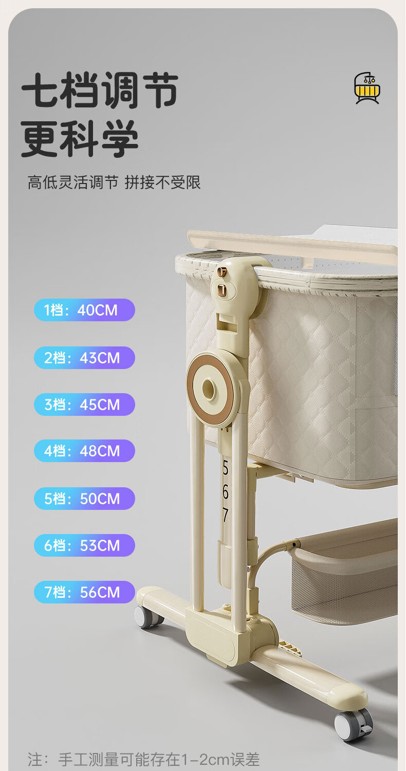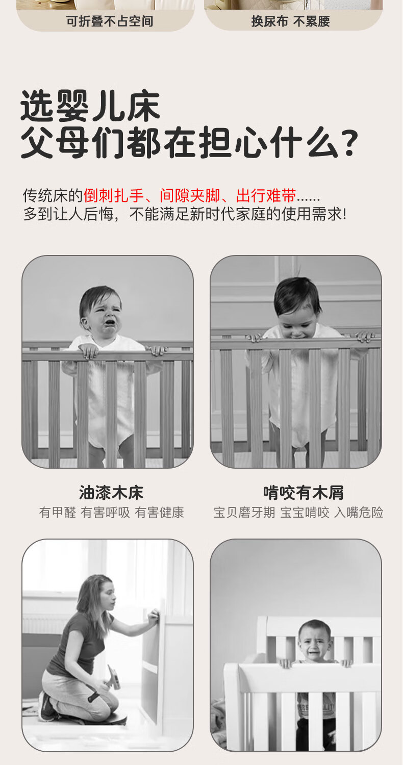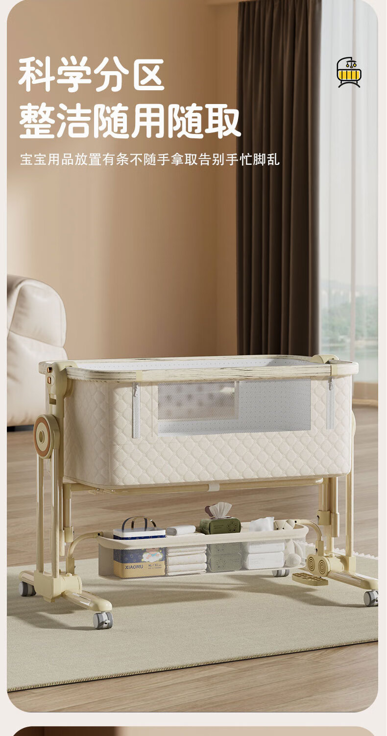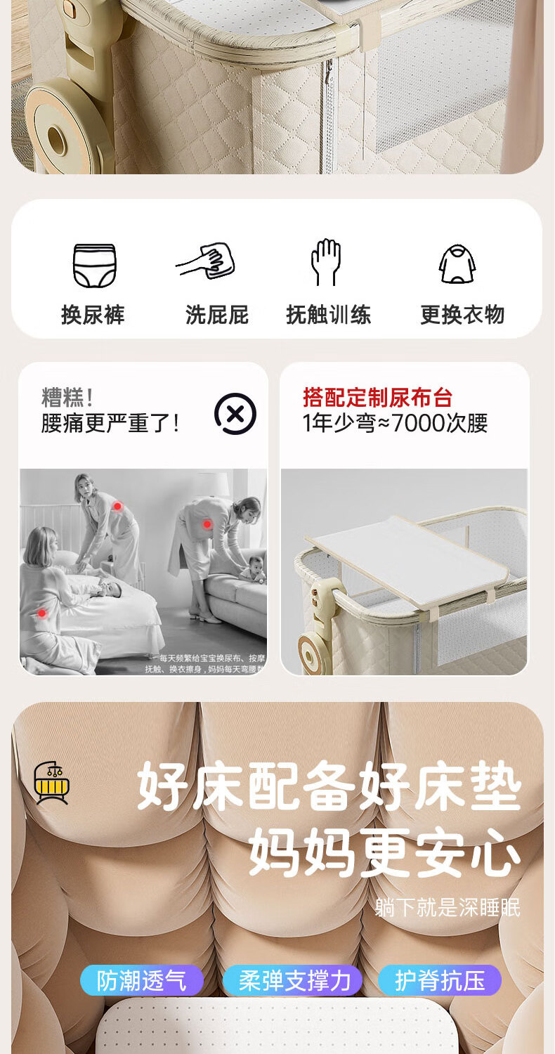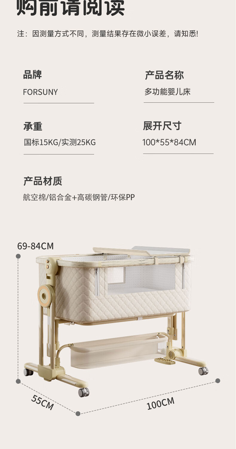 FORSUNNY crib, removable, multi-functional, seamless, foldable, liftable crib with changing table, cradle, rocking bed, one-touch folding crib with mosquito net, free changing table + mosquito net + mattress