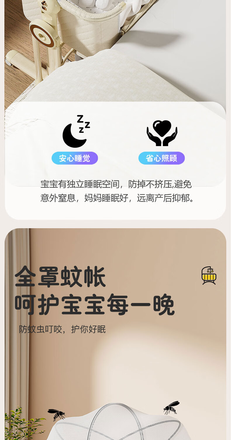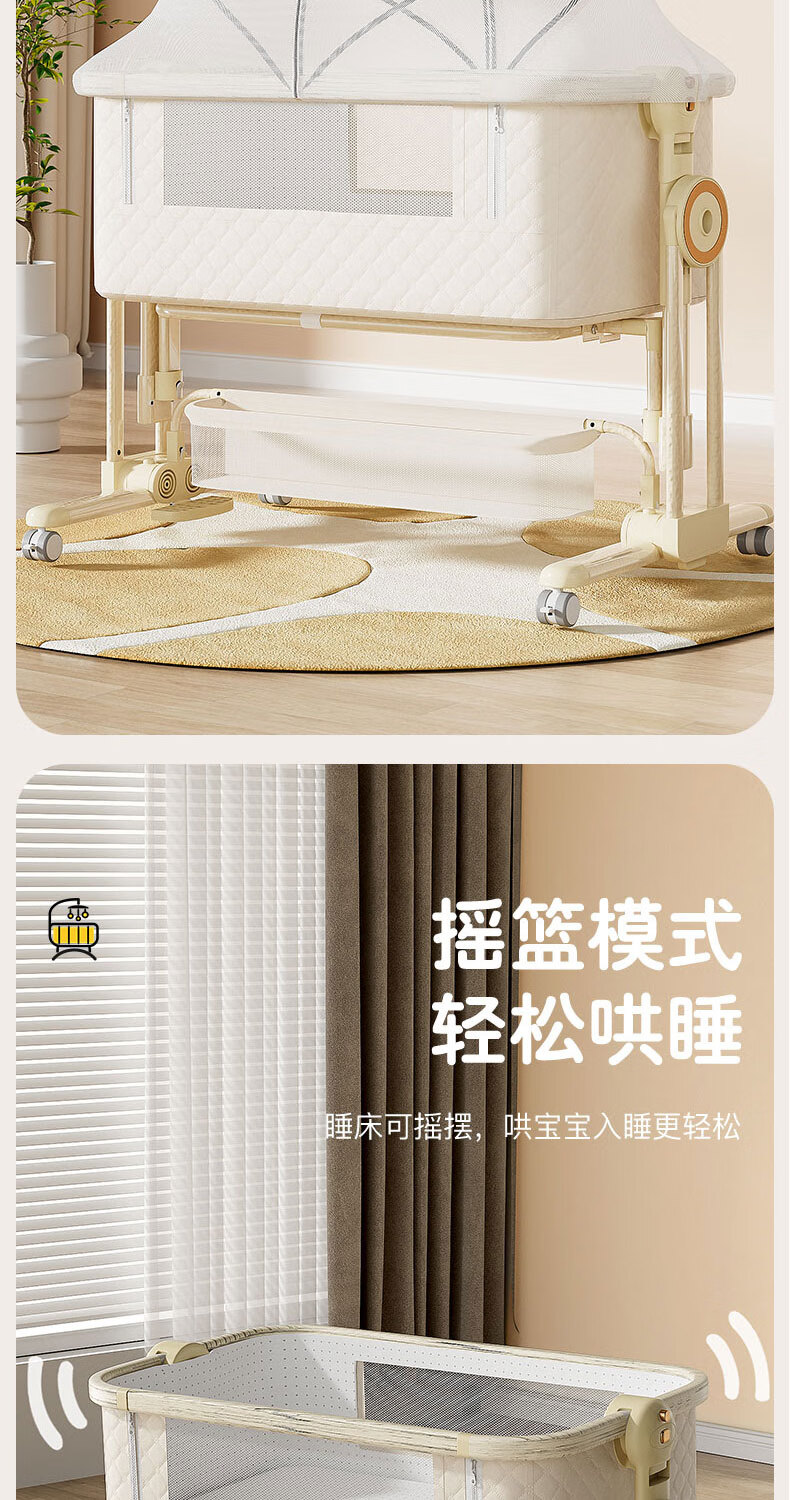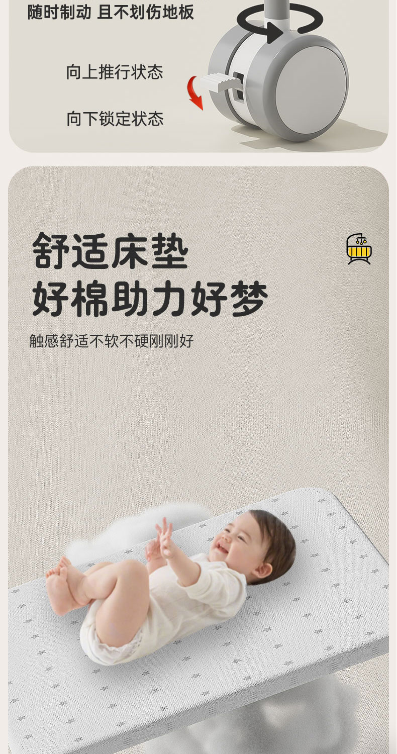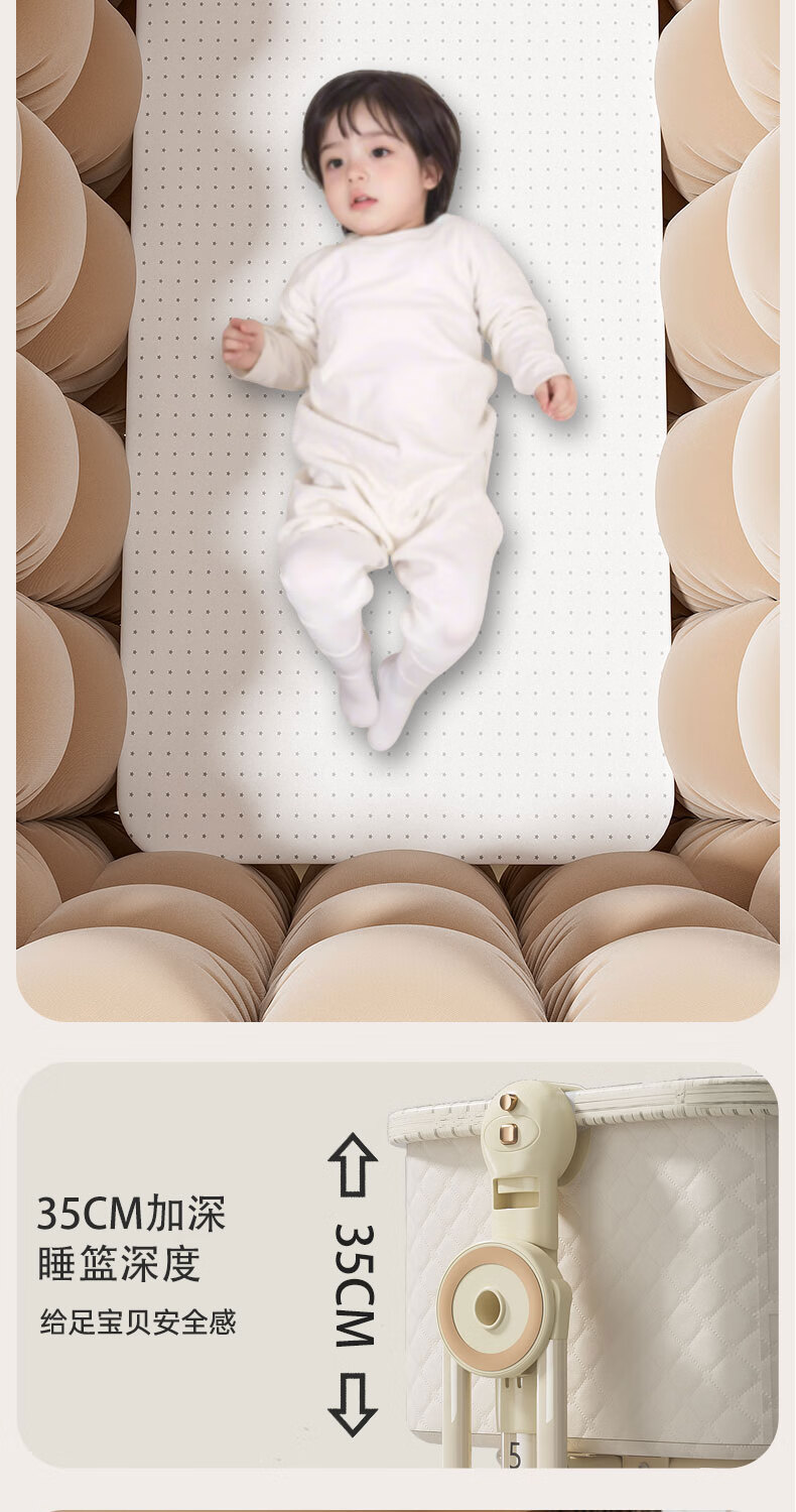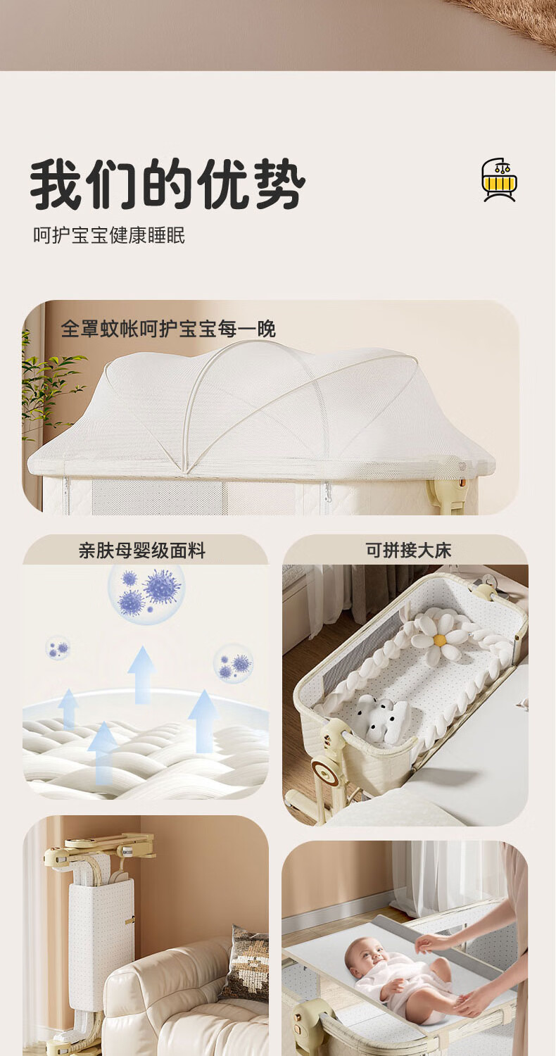 FORSUNNY crib, removable, multi-functional, seamless, foldable, liftable crib with changing table, cradle, rocking bed, one-touch folding crib with mosquito net, free changing table + mosquito net + mattress