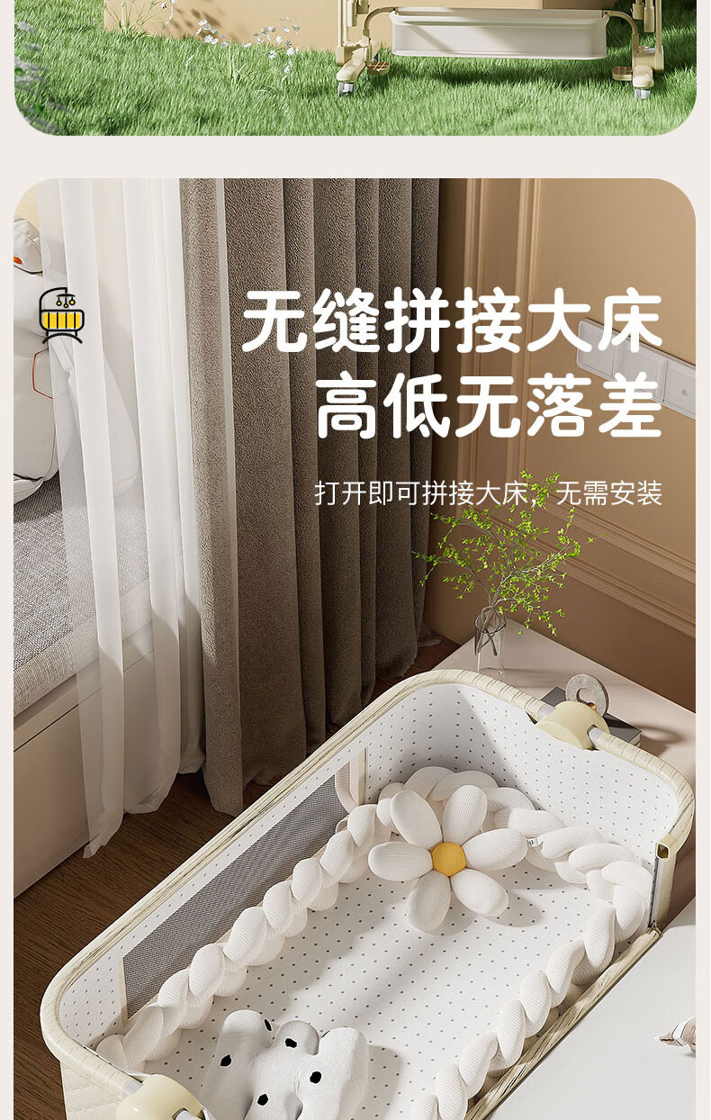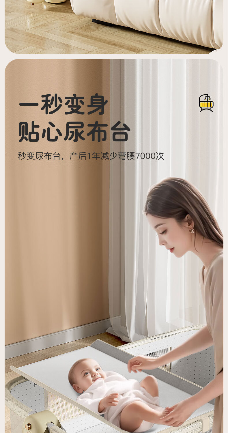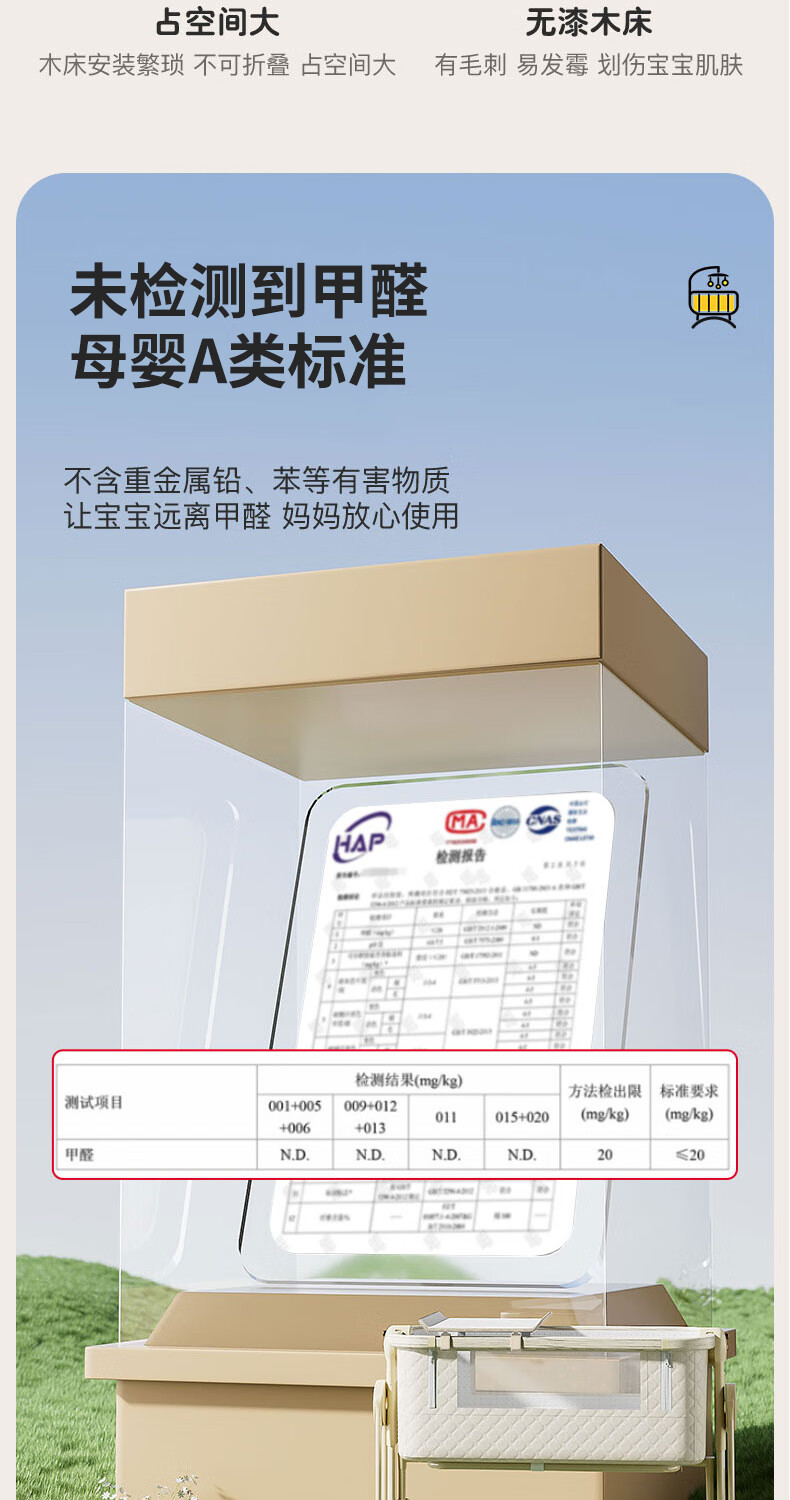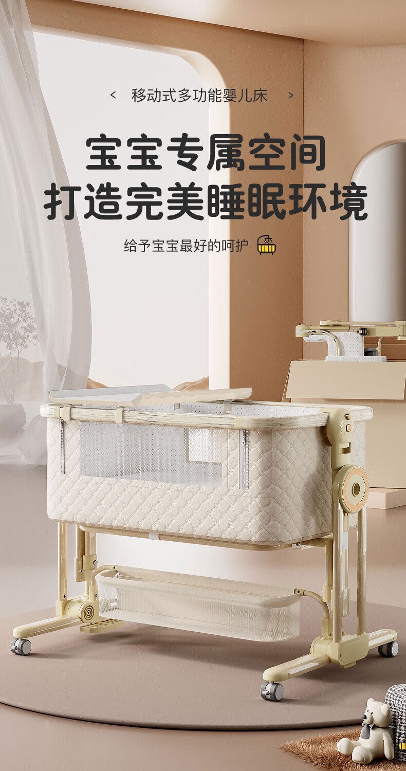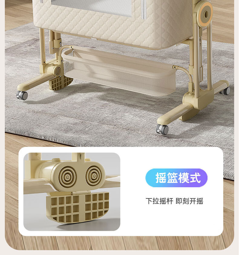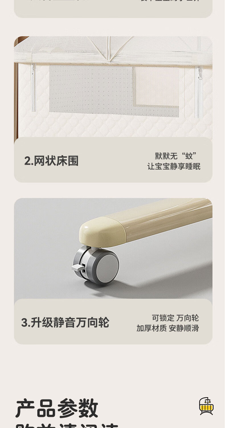 FORSUNNY crib, removable, multi-functional, seamless, foldable, liftable crib with changing table, cradle, rocking bed, one-touch folding crib with mosquito net, free changing table + mosquito net + mattress