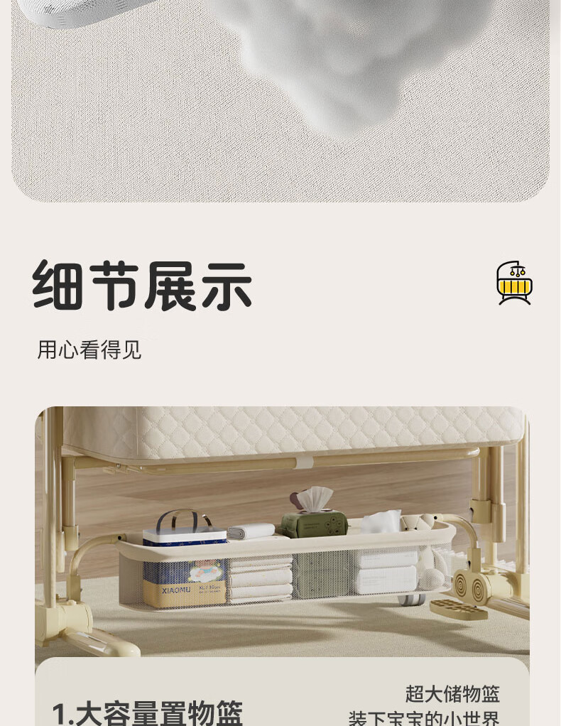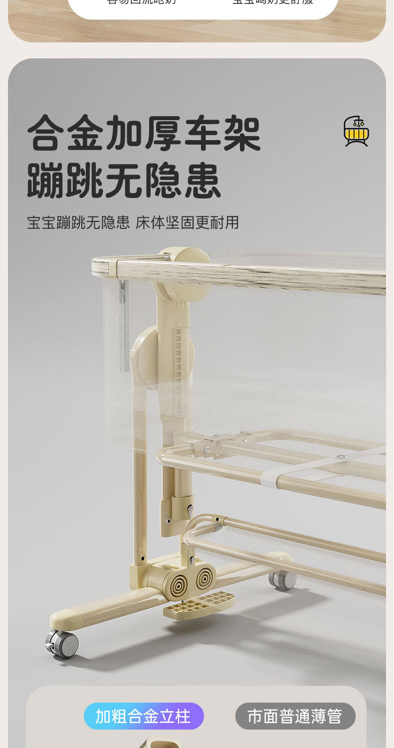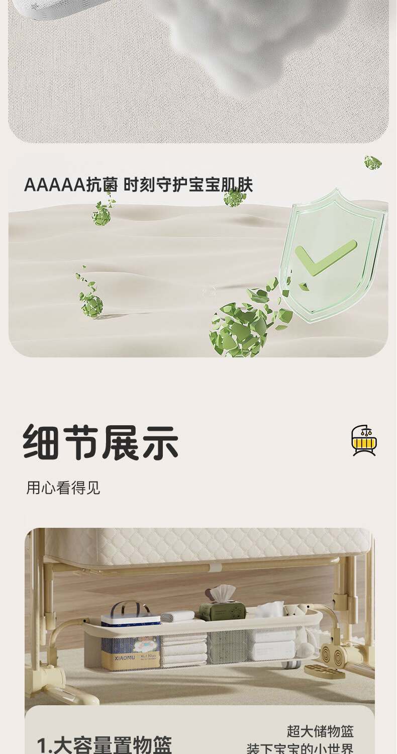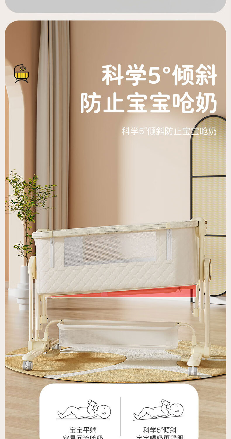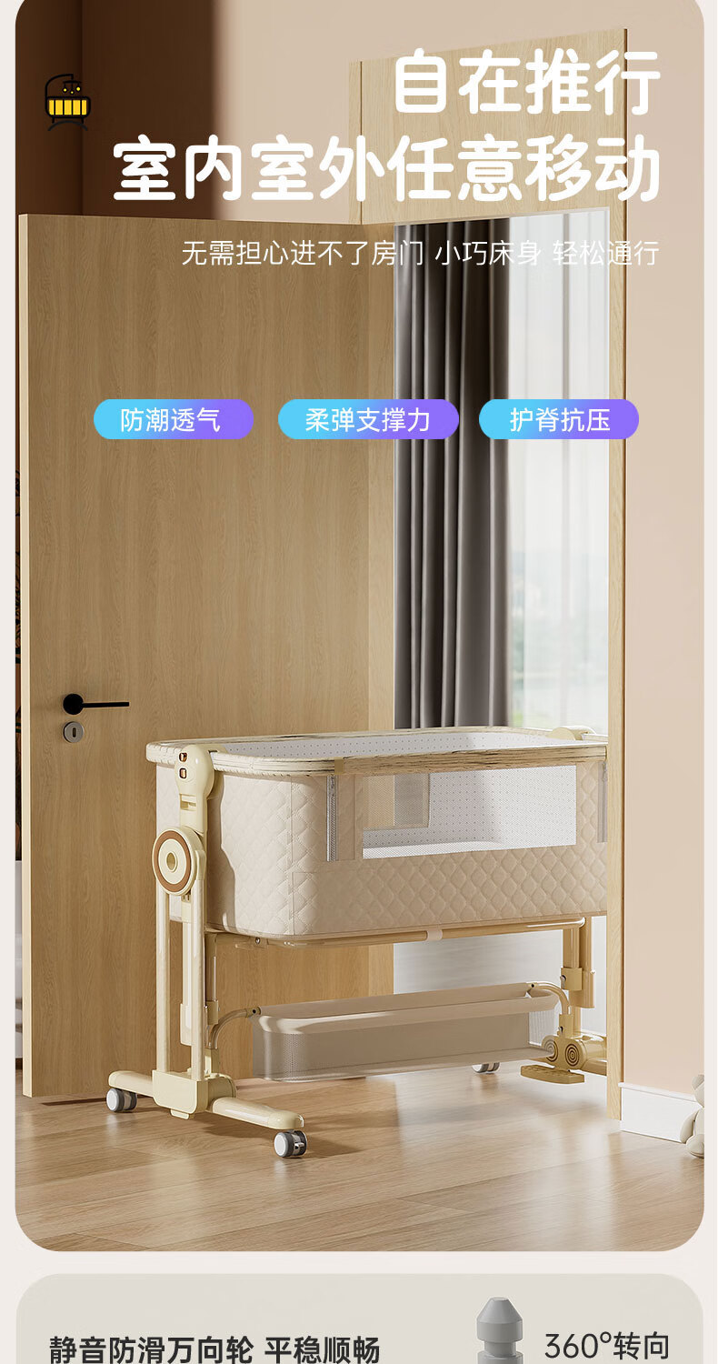 FORSUNNY crib, removable, multi-functional, seamless, foldable, liftable crib with changing table, cradle, rocking bed, one-touch folding crib with mosquito net, free changing table + mosquito net + mattress