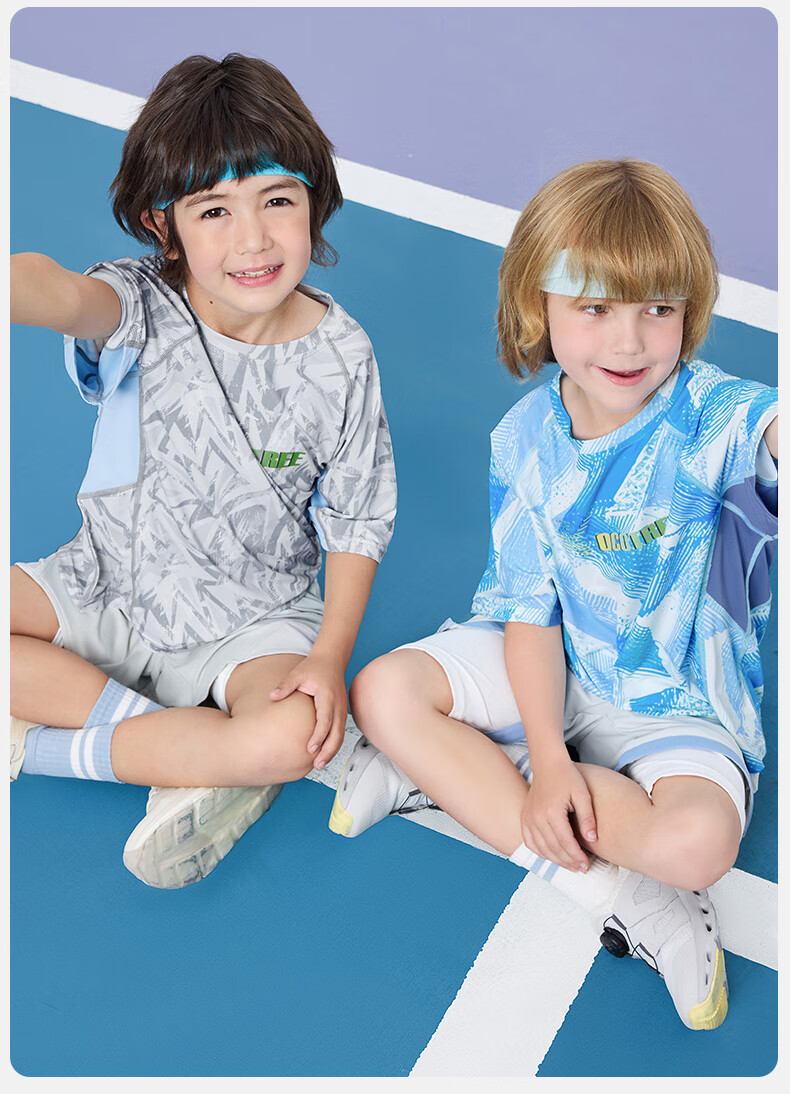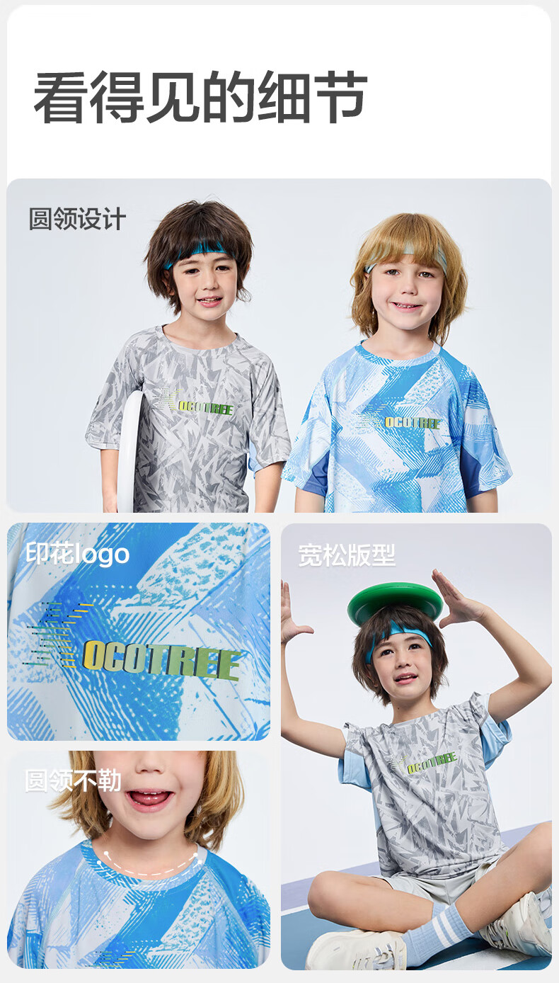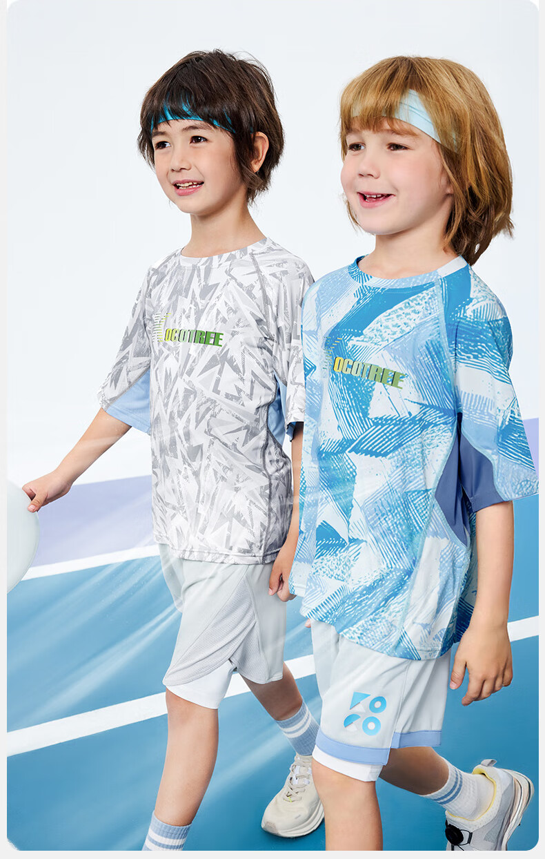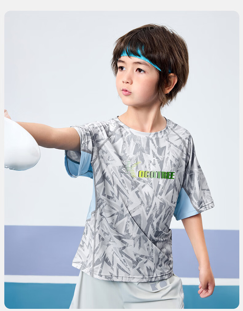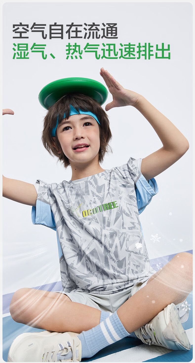 KocotreeKK tree children's quick-drying clothes for boys and girls short-sleeved cool T-shirt summer moisture-absorbent sun protection sports top 2025 new geometric gray 140