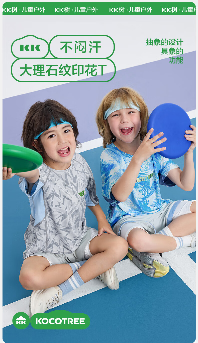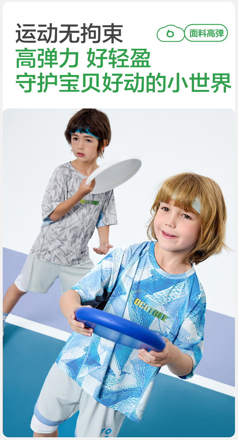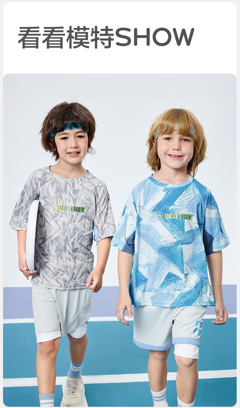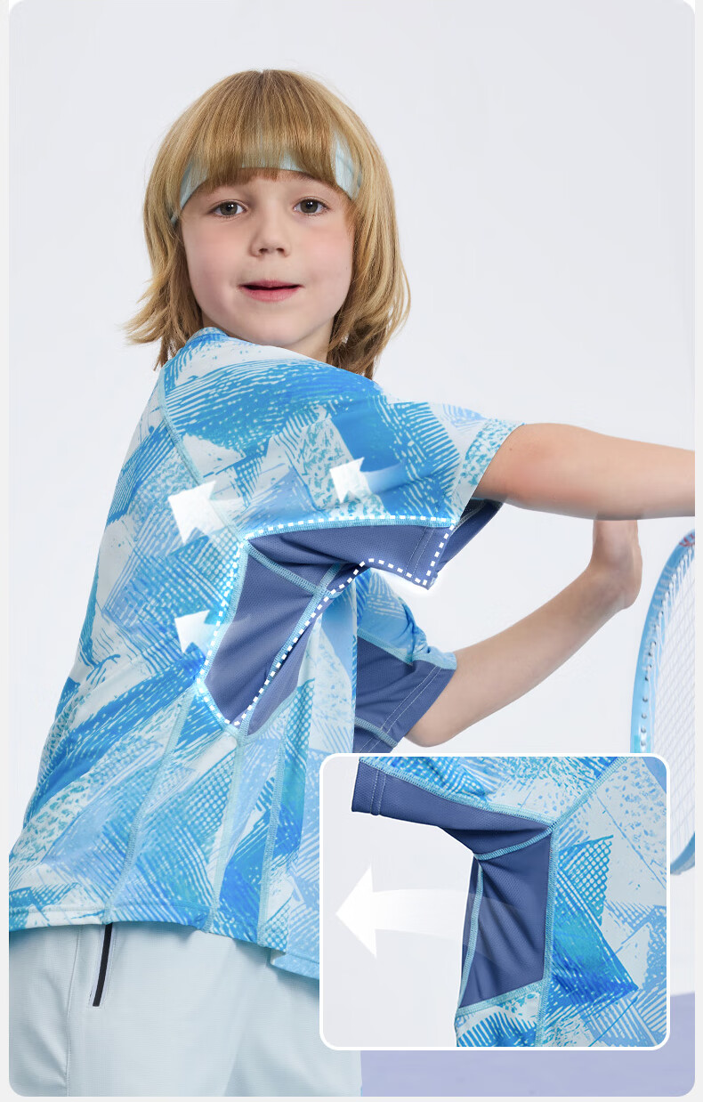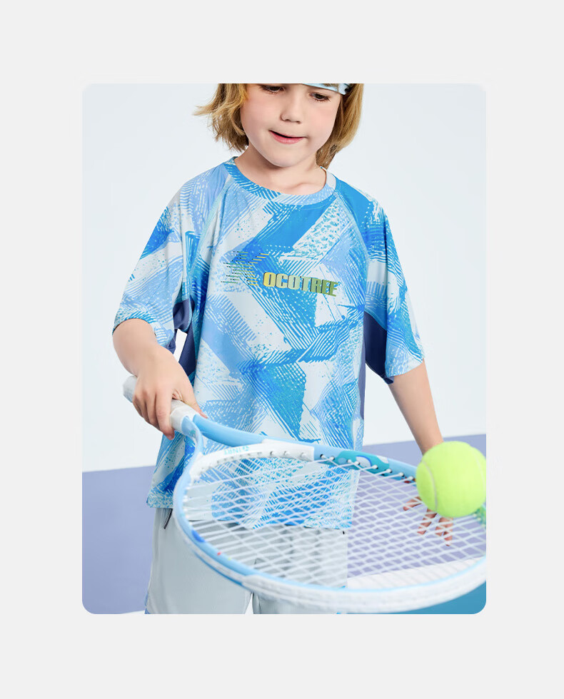 KocotreeKK tree children's quick-drying clothes for boys and girls short-sleeved cool T-shirt summer moisture-absorbent sun protection sports top 2025 new geometric gray 140