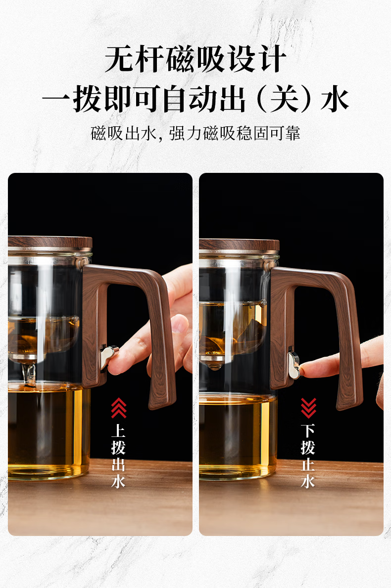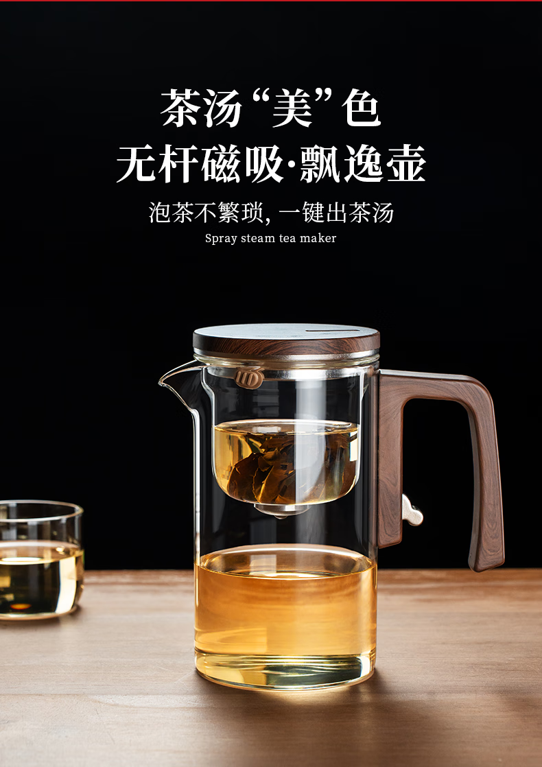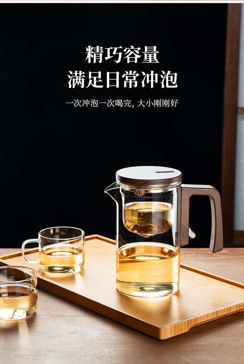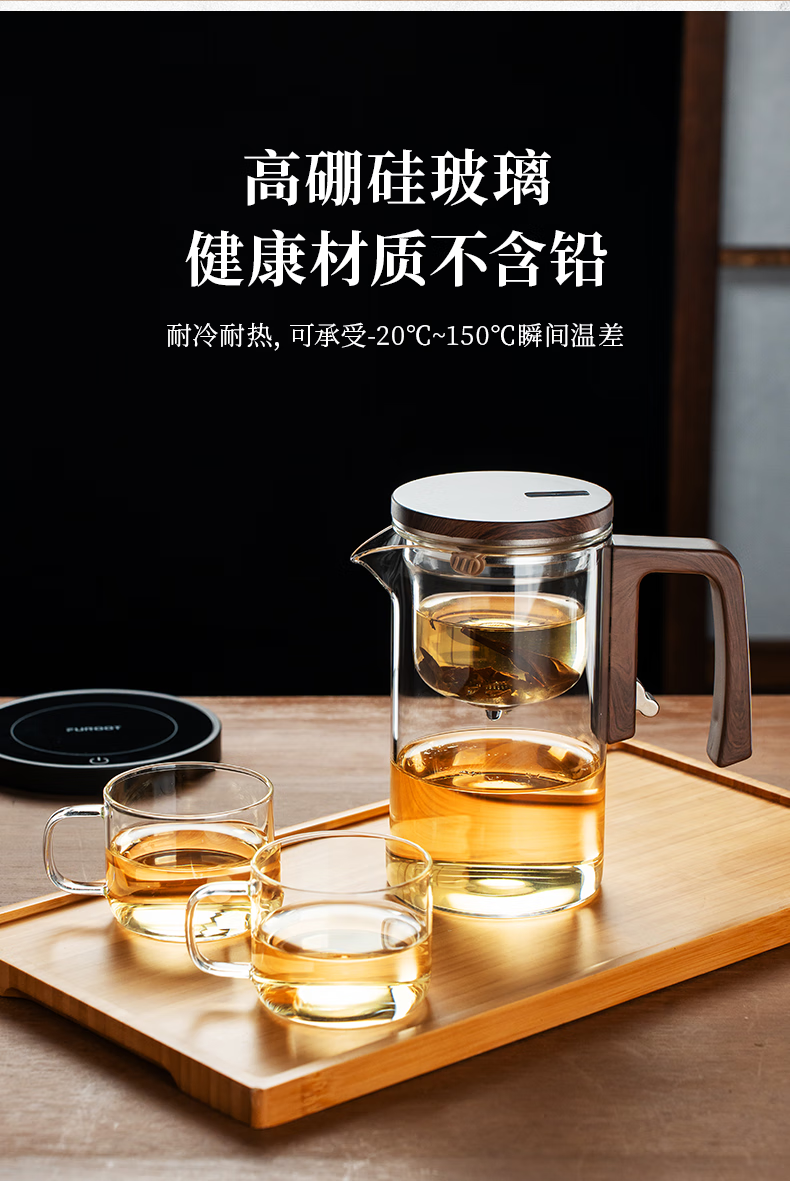 Fulong Magnetic Elegant Cup One-touch Filter Tea Set Tea Water Separation Glass Teapot Tea Maker Tea Maker Tea Set 680ML (Single Pot)