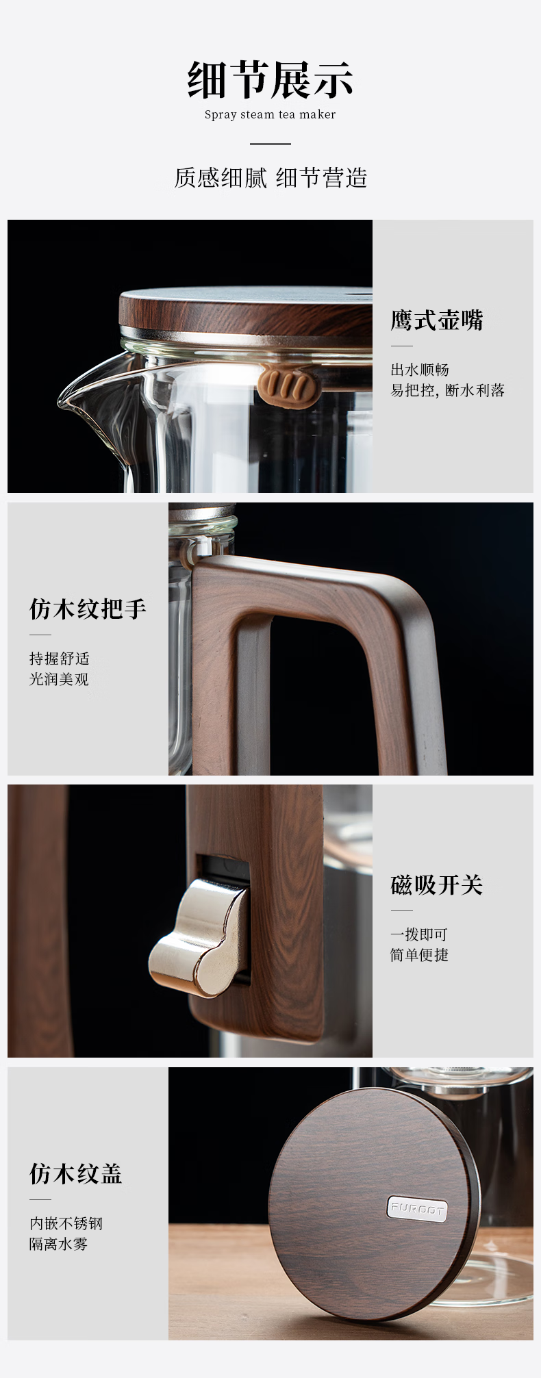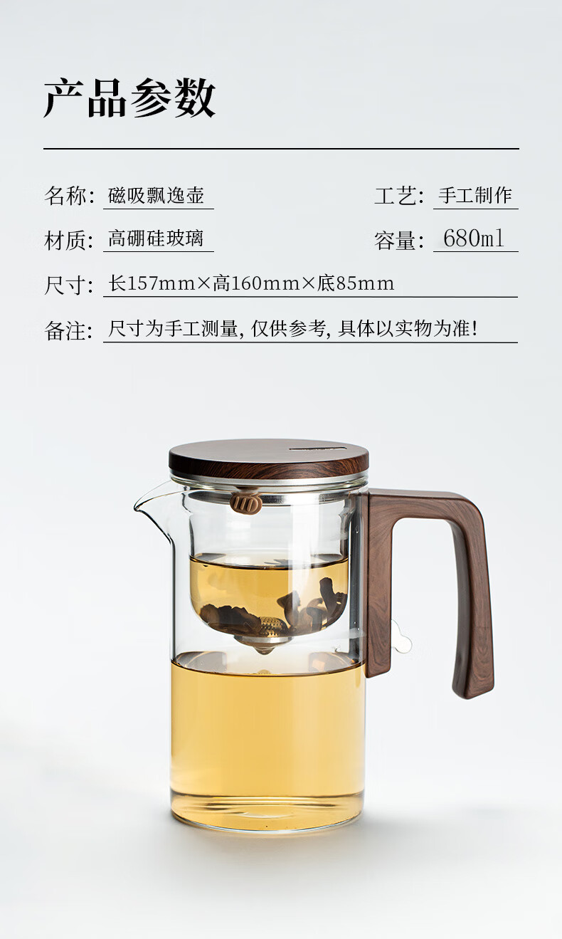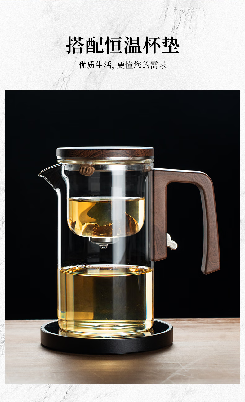 Fulong Magnetic Elegant Cup One-touch Filter Tea Set Tea Water Separation Glass Teapot Tea Maker Tea Maker Tea Set 680ML (Single Pot)