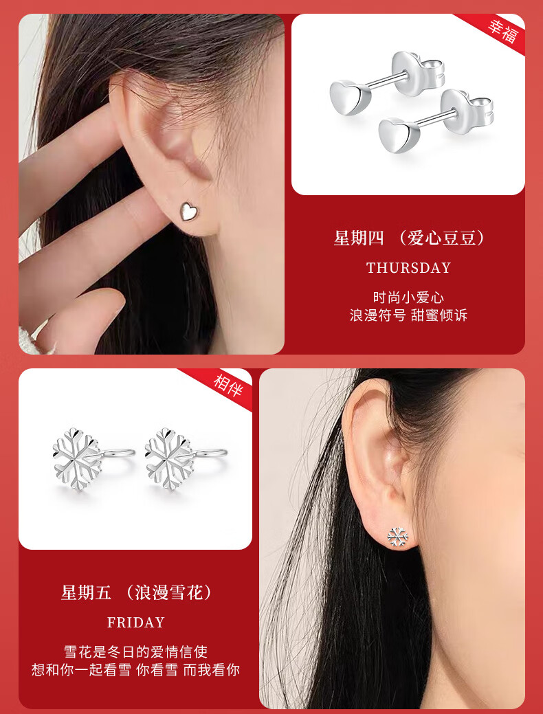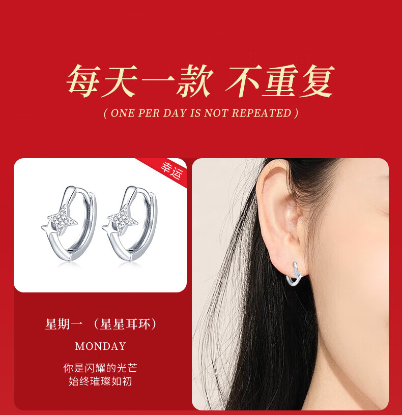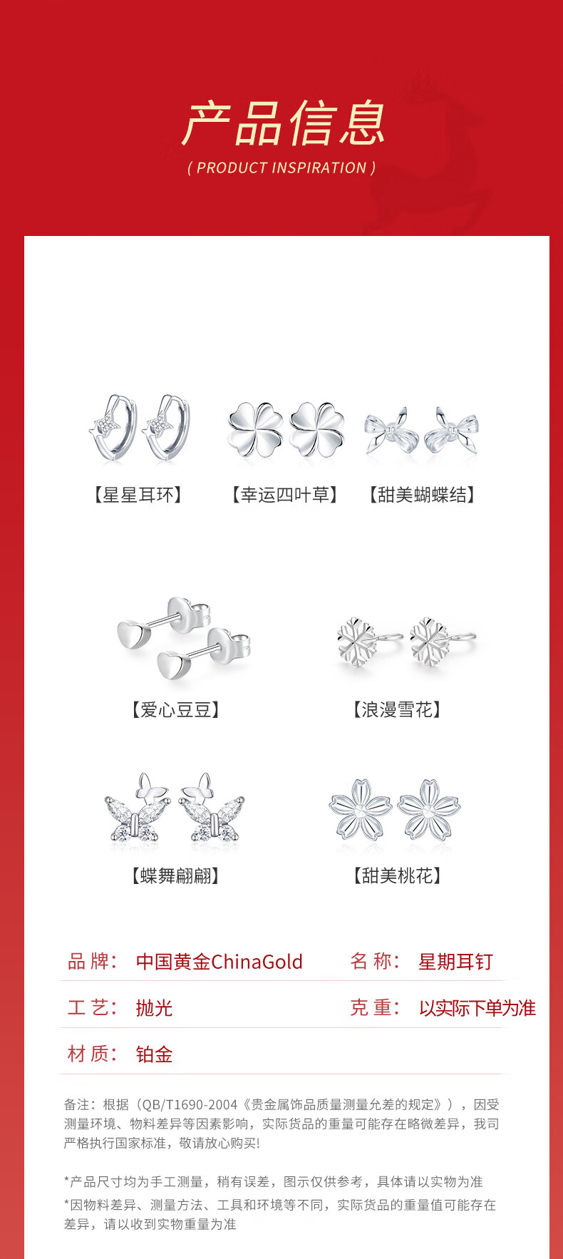 CHINA GOLD Light Luxury Platinum Weekly Earrings Women's Earrings Earrings Earrings Valentine's Day Birthday Gifts for Girlfriends and Wife Shining Star Platinum Weekly Earrings About 11.5g