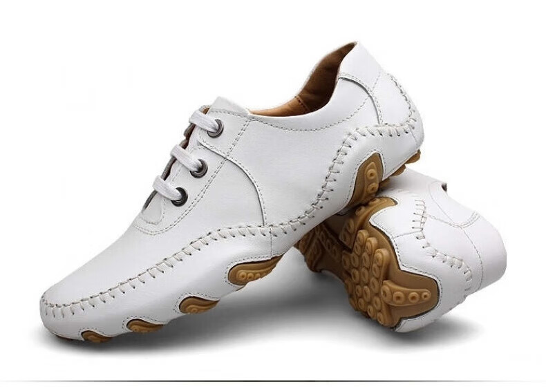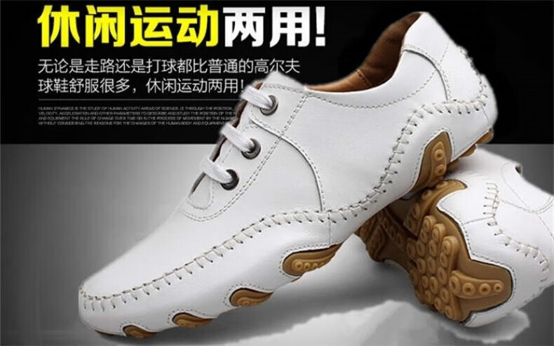 CARTELO genuine leather golf shoes lightweight men's shoes GOLF breathable waterproof anti-slip toe layer cowhide casual sports shoes white lace 42