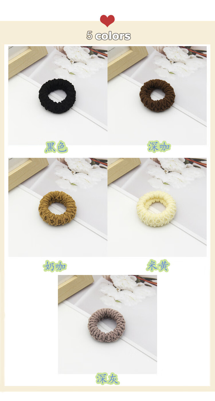 High elasticity and durable headband hair tie, high ponytail, bold and thick hair tie, high-end rubber band hair accessory, 06 mixed colors, 5 pieces/package OPP bag
