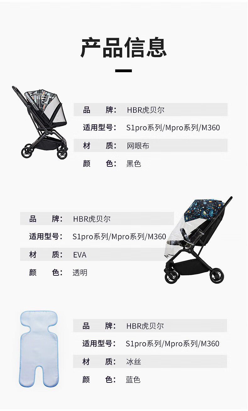Huber baby stroller mat, mosquito net, rain cover, protective travel assistant, rain cover (S1pro, Mpro, Mpro2.0, M36