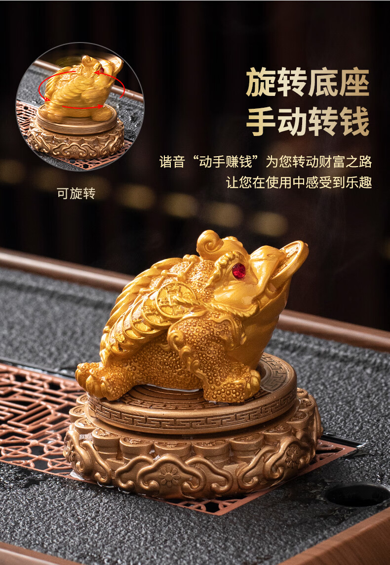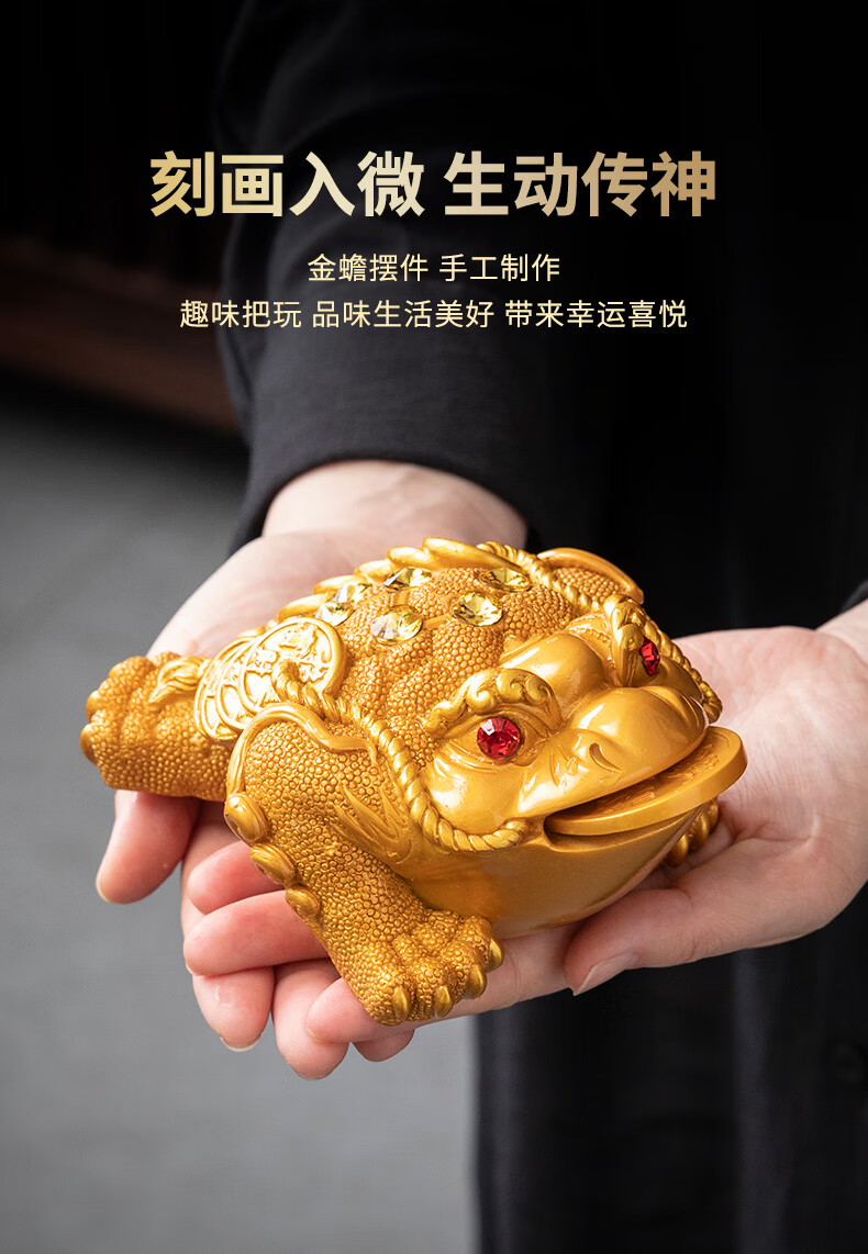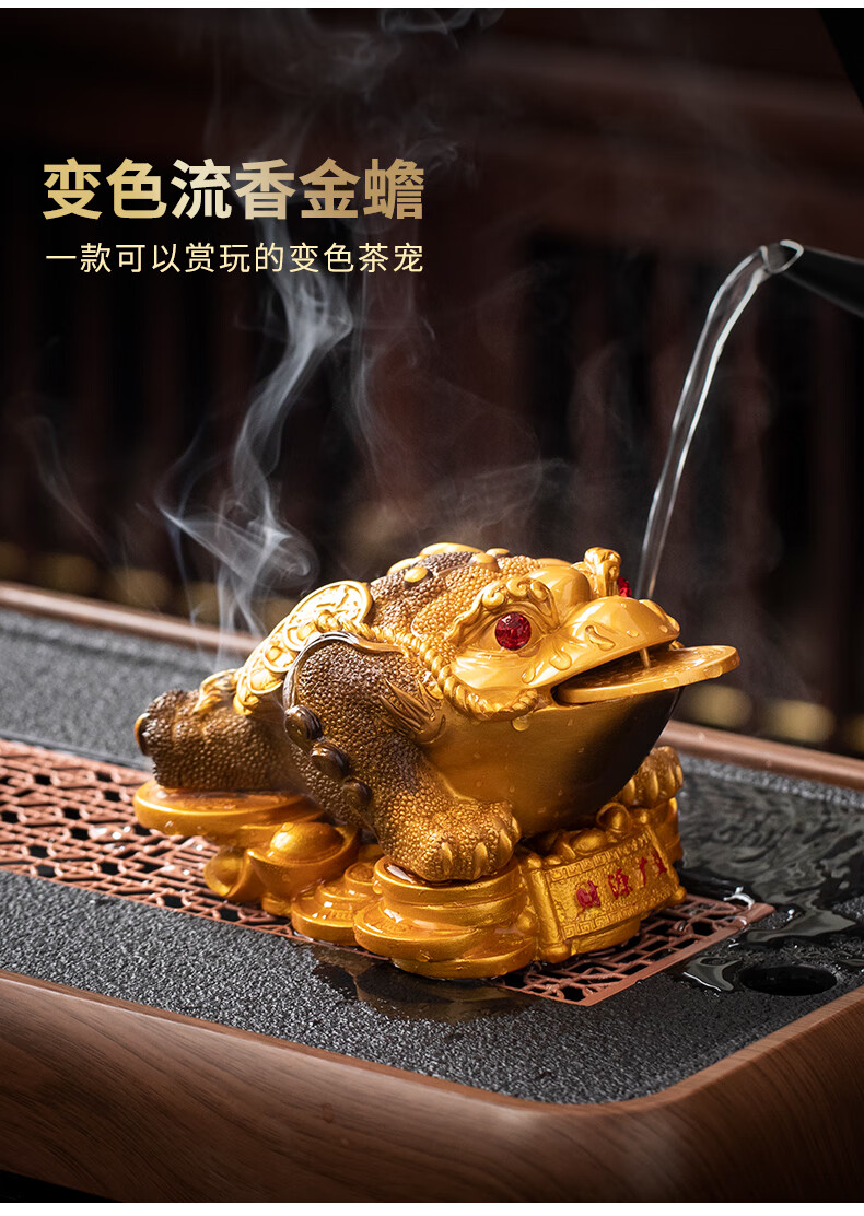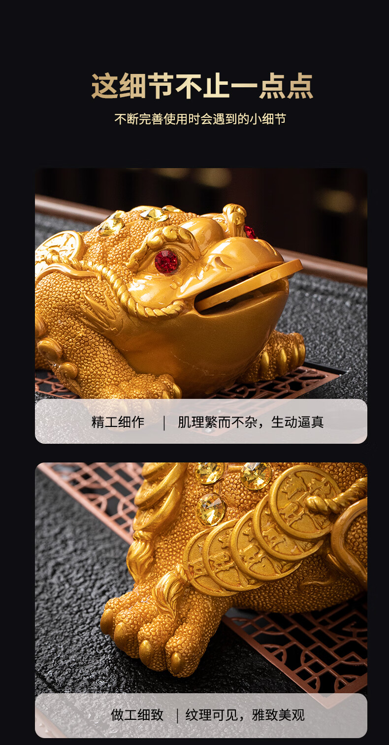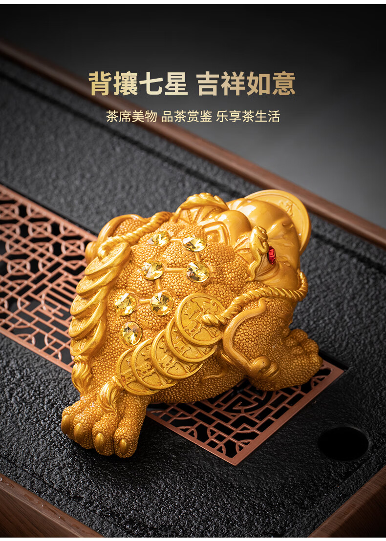 Shi Jian said that high-end boutique products can raise the golden toad that attracts wealth, tea pet ornaments, tea set accessories, luminous backflow fragrant tea play ornaments, small golden toad that attracts wealth (gold)