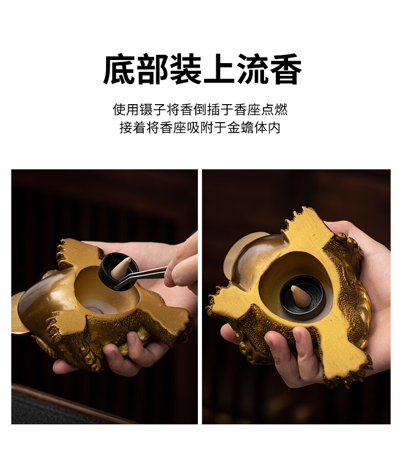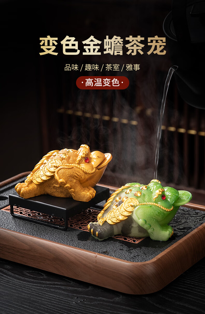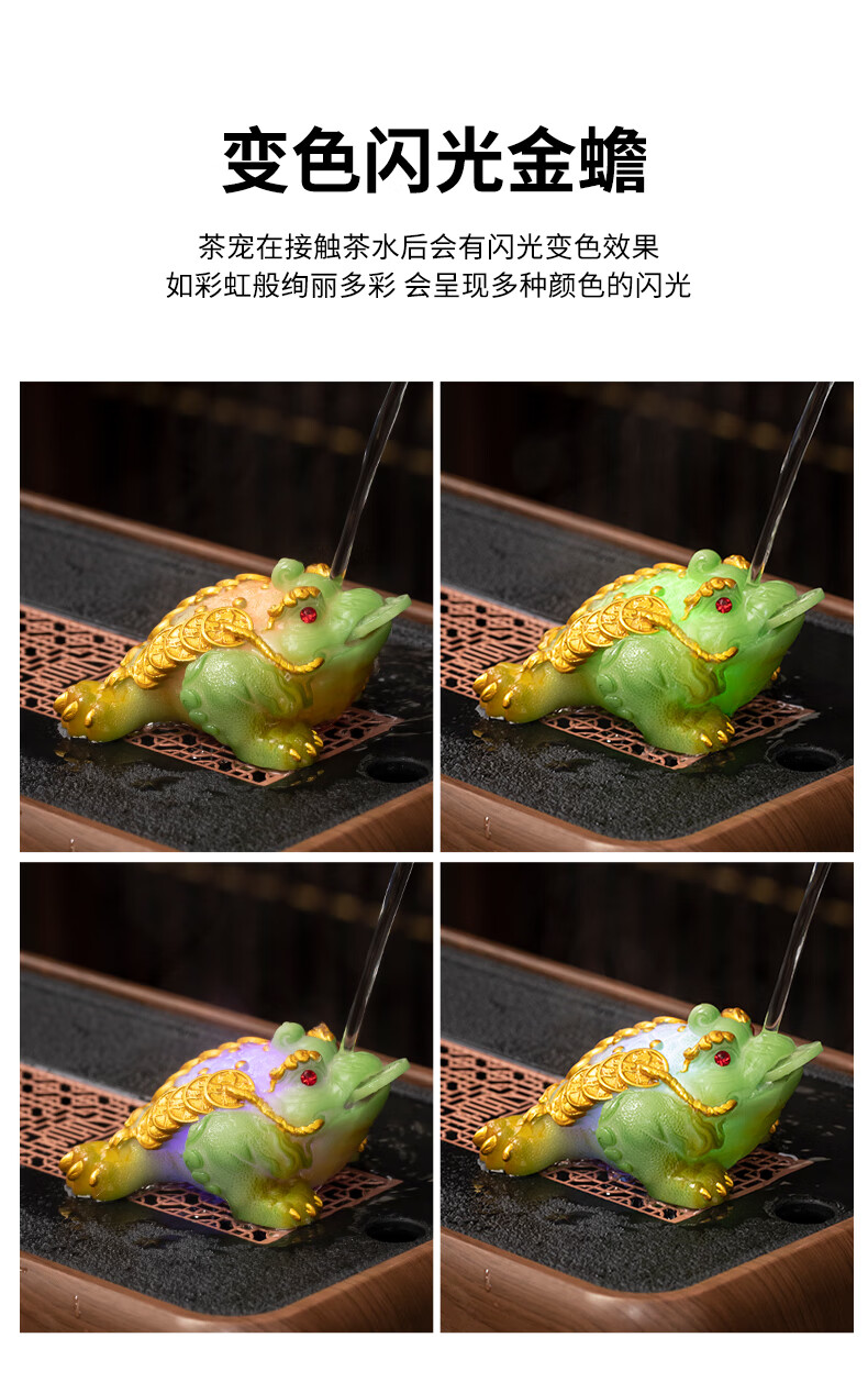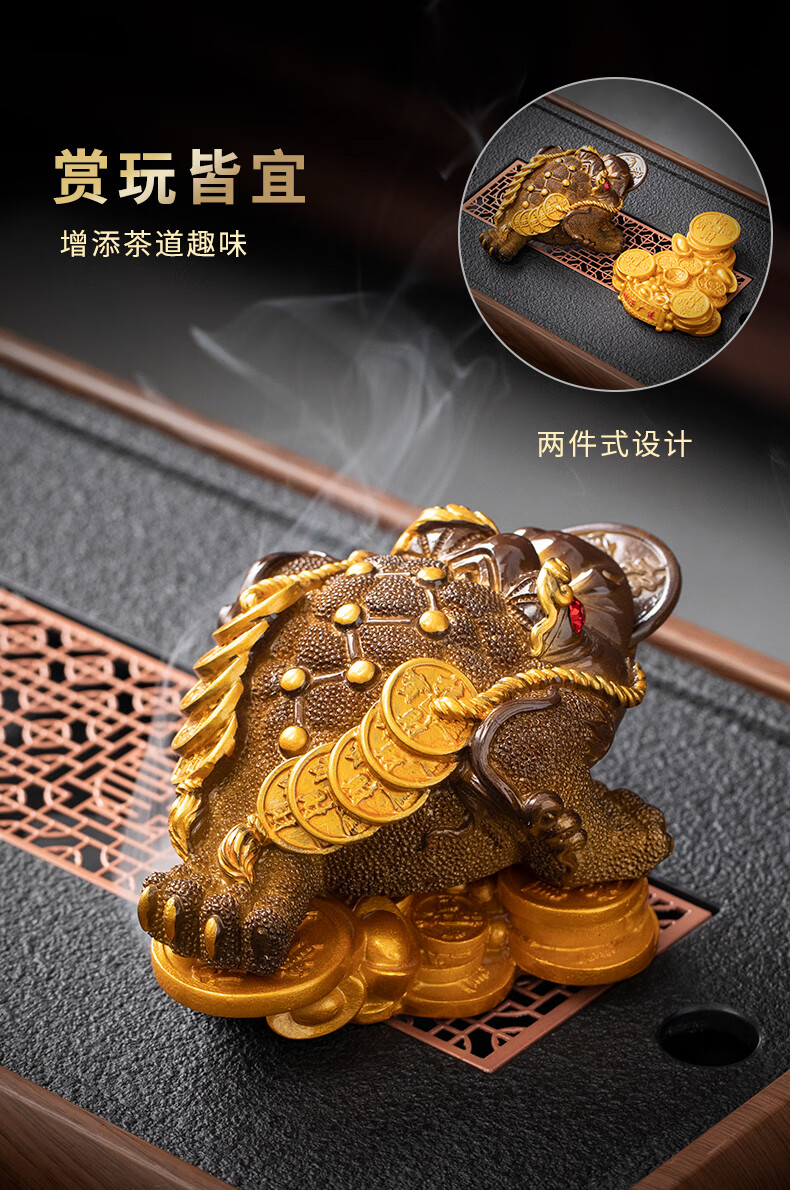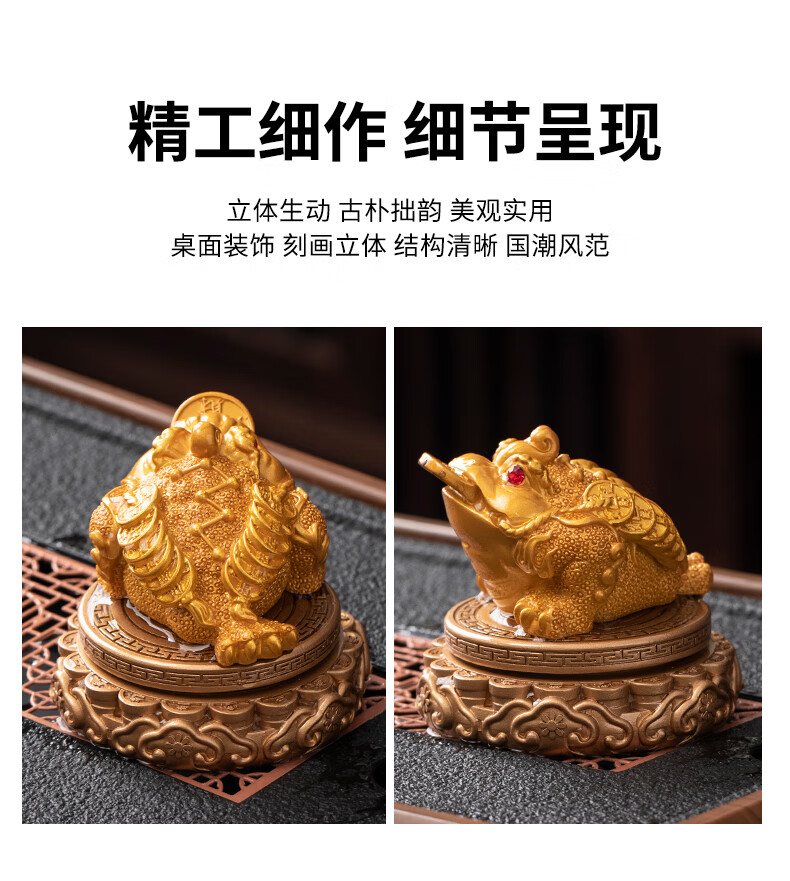 Shi Jian said that high-end boutique products can raise the golden toad that attracts wealth, tea pet ornaments, tea set accessories, luminous backflow fragrant tea play ornaments, small golden toad that attracts wealth (gold)