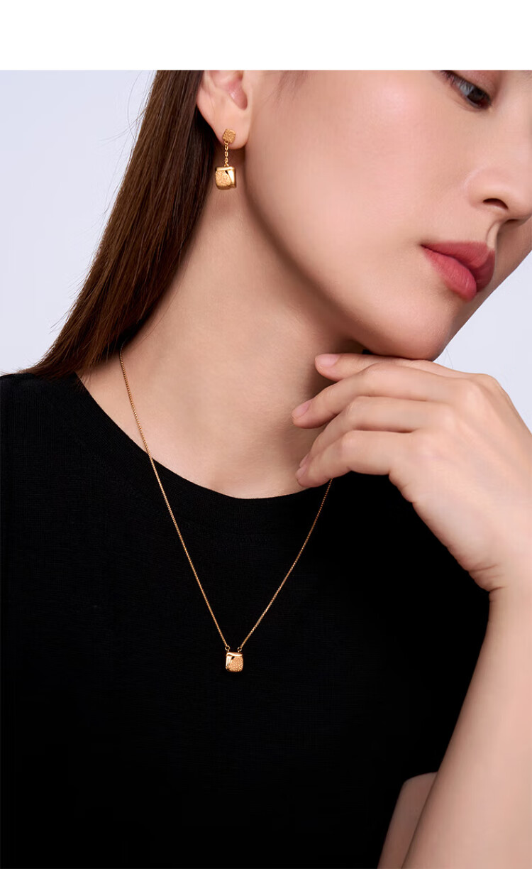 Bai Lan Fangcuo Necklace 925 Silver Clavicle Chain Female Niche Design Light Luxury Fashion High-end Jewelry Birthday Gift for Wife Fangcuo Necklace (Gold)
