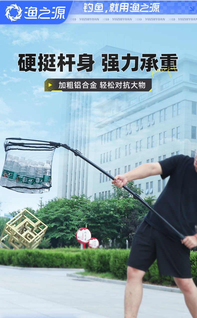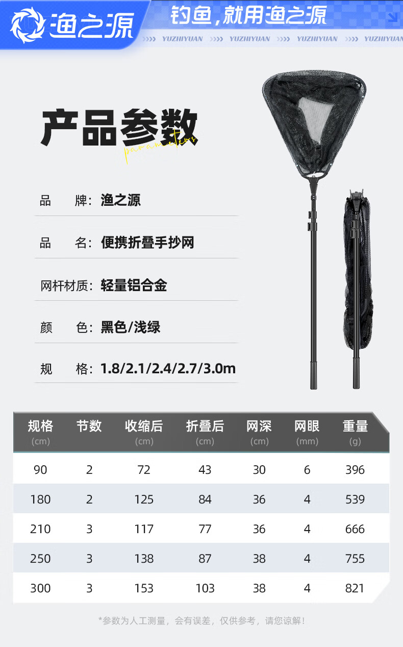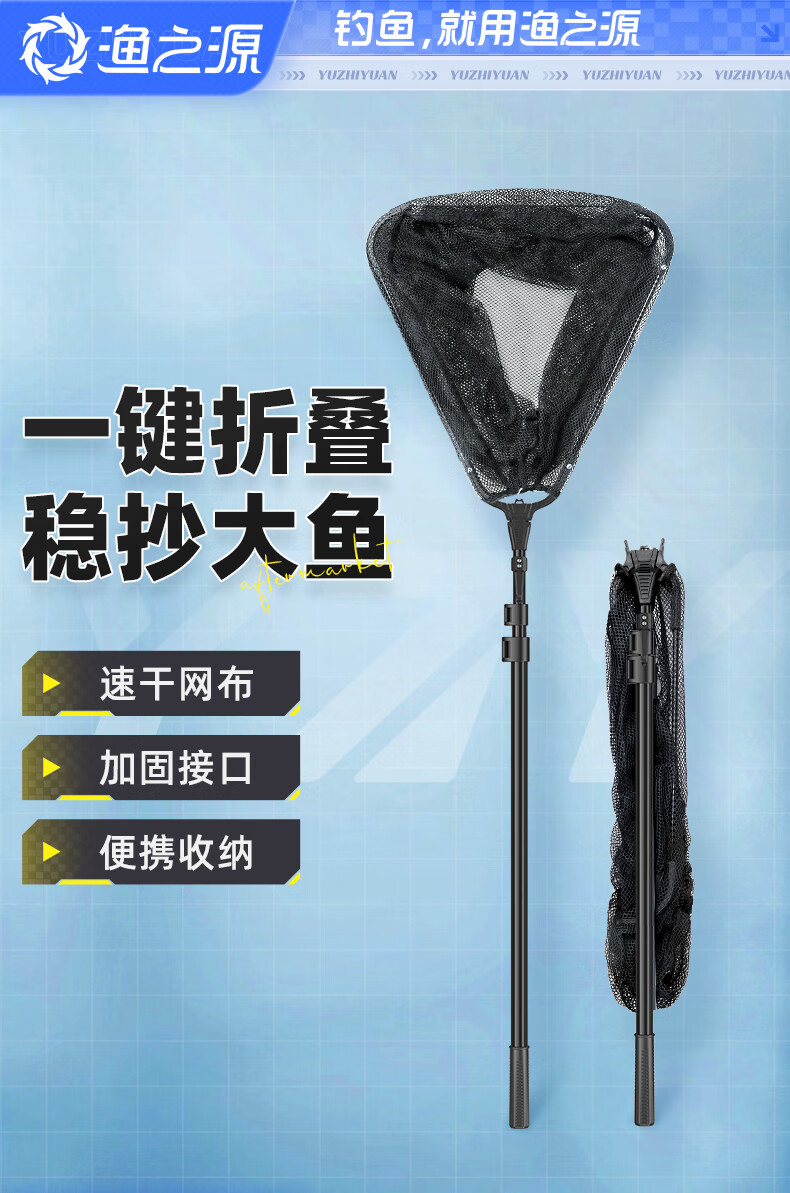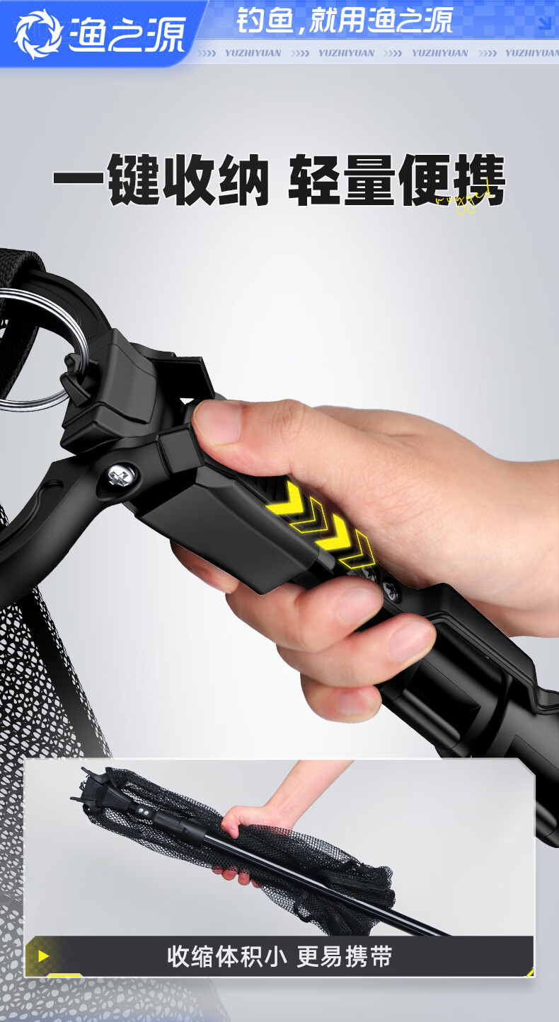 Fishing source fishing net fishing net pocket fishing net fishing small fish retractable fishing large object copy net folding triangle children's copy 1.8m 38cm wild fishing comprehensive one-click folding black