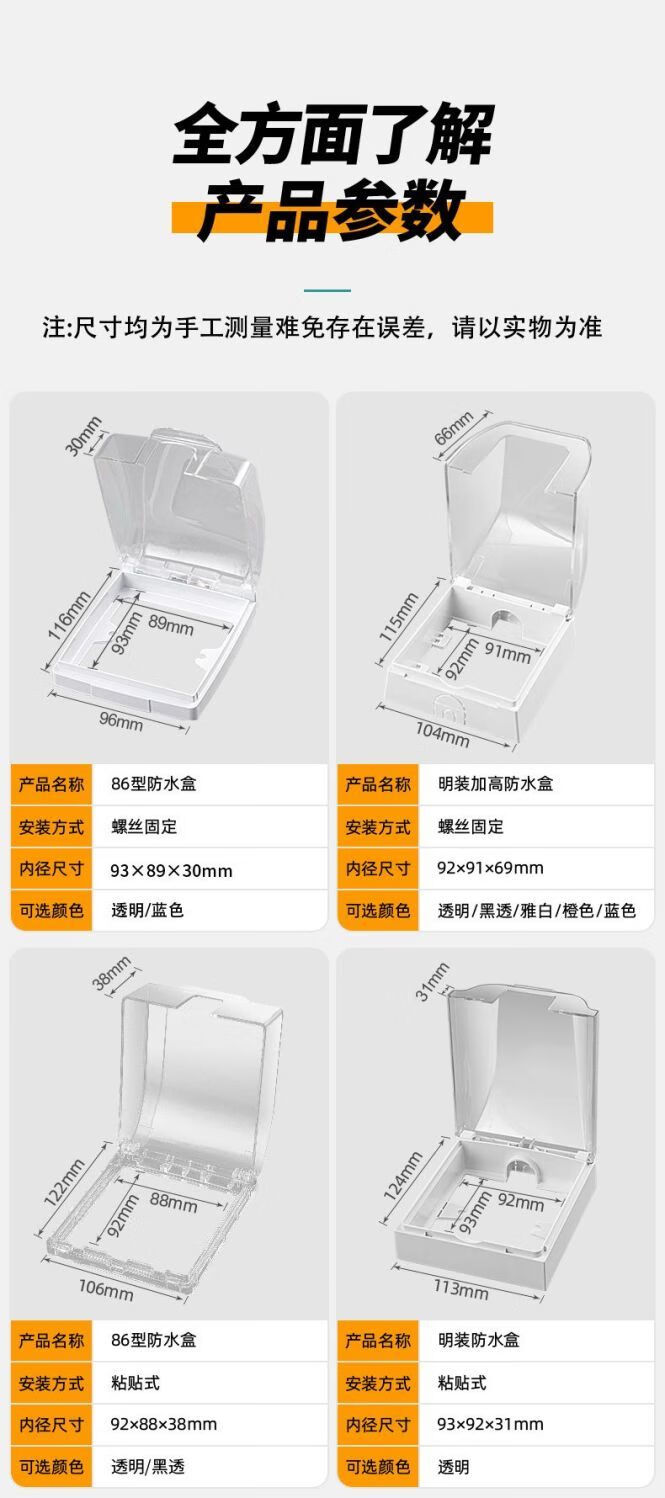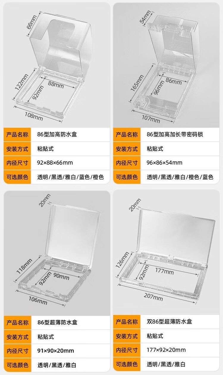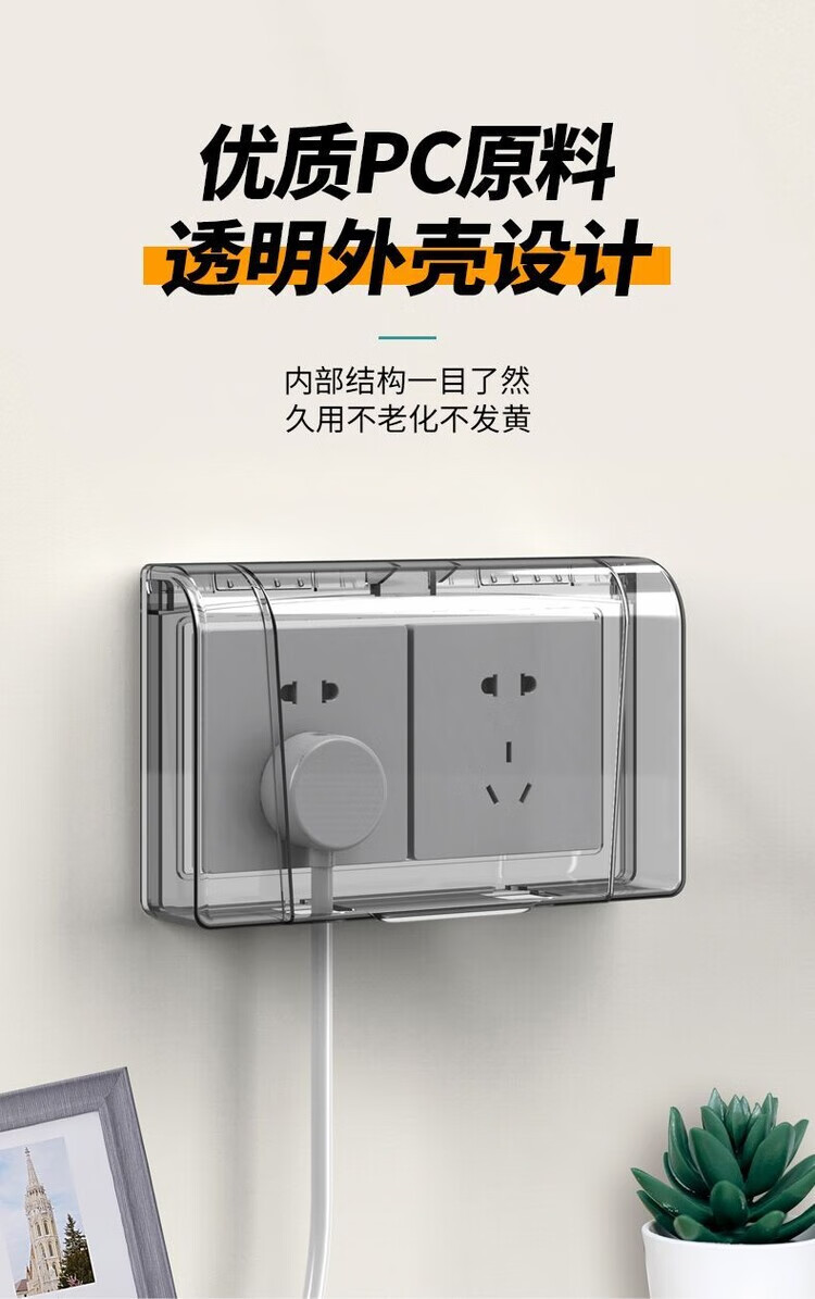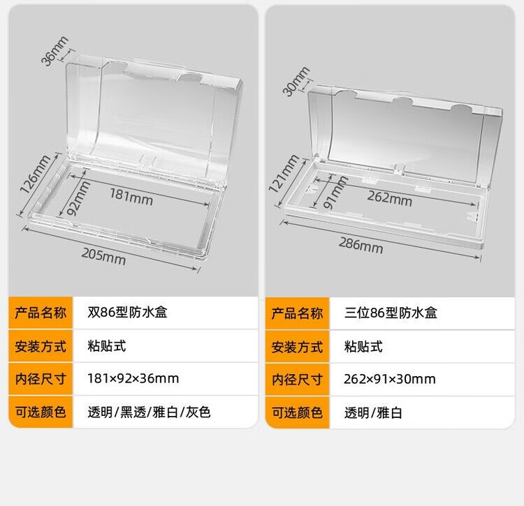 Socket waterproof cover two-position double 86 type waterproof box adhesive bathroom toilet double two-position two-position switch socket waterproof cover black-86 type two-position adhesive