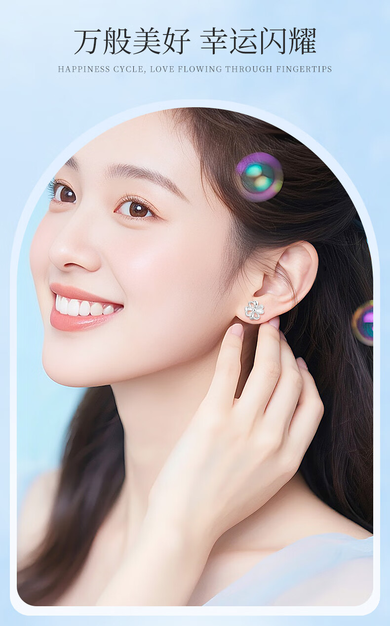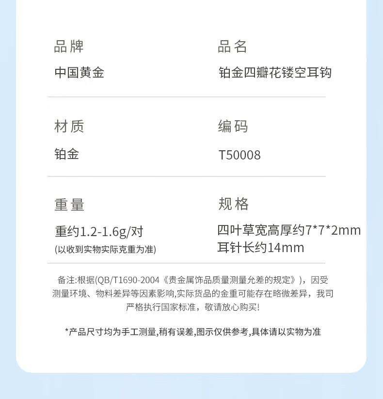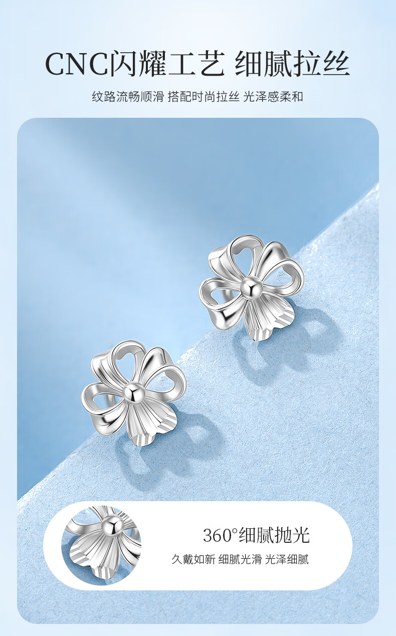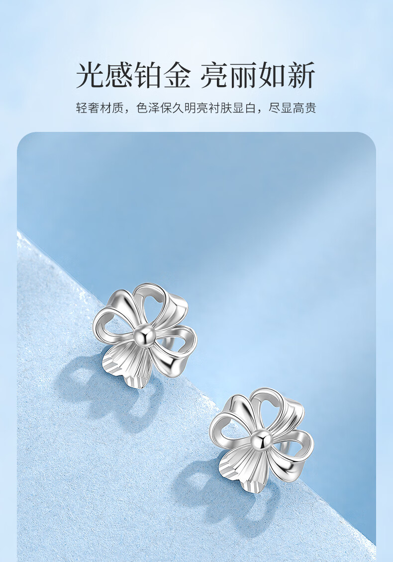 Chinese gold hollow platinum earrings for women pt950 earrings birthday gift for girlfriend and wife wedding anniversary practical and heart-warming platinum four-petal flower hollow ear hook + exquisite packaging
