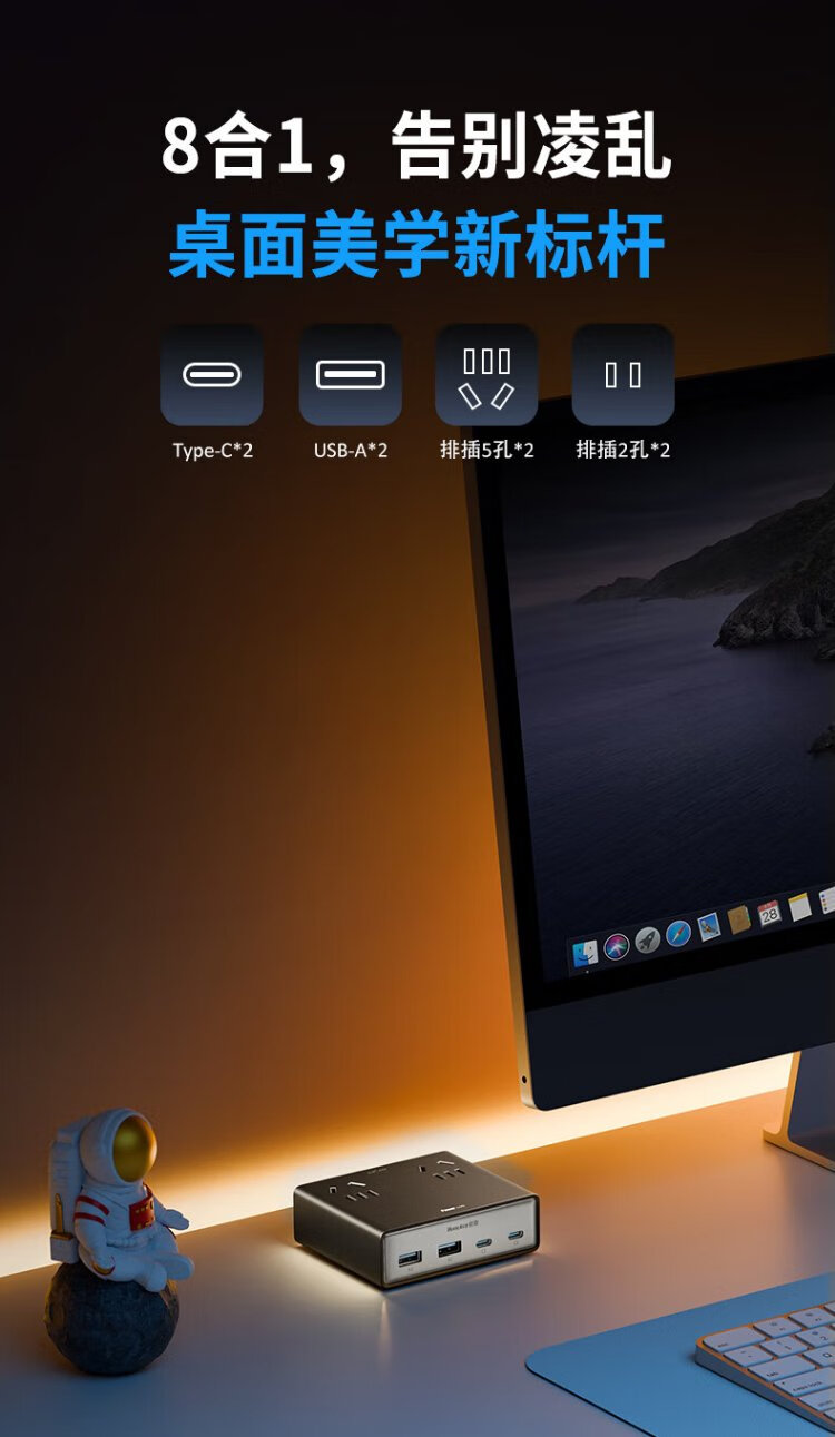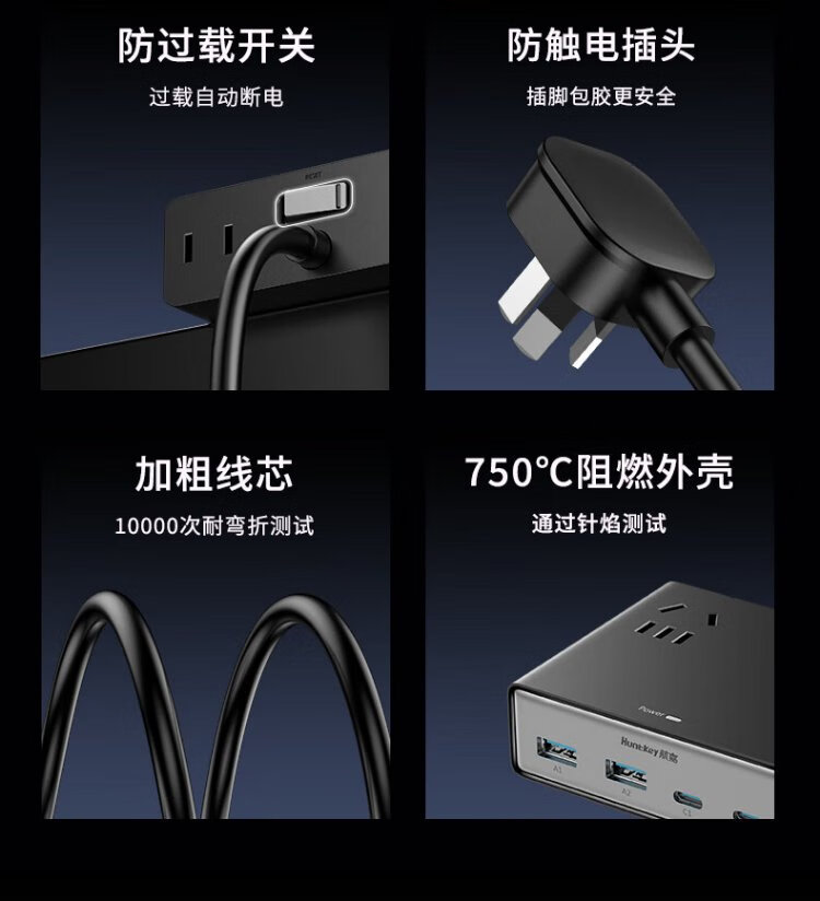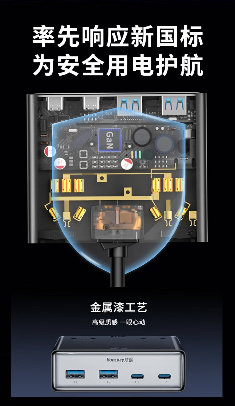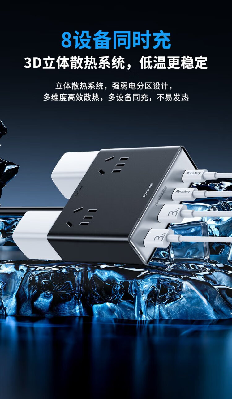 Huntkey Charging Bar Smart M30/M20 Desktop Socket Power Strip USB Fast Charging Plug Board Charging Station Gallium Nitride 30W Multi-port Portable Typec Multi-function Bedside Anti-overload Power Strip 20W 8-in-1 Charging Station - Total Length 1.5 Meters Aerospace Quality New National Standard