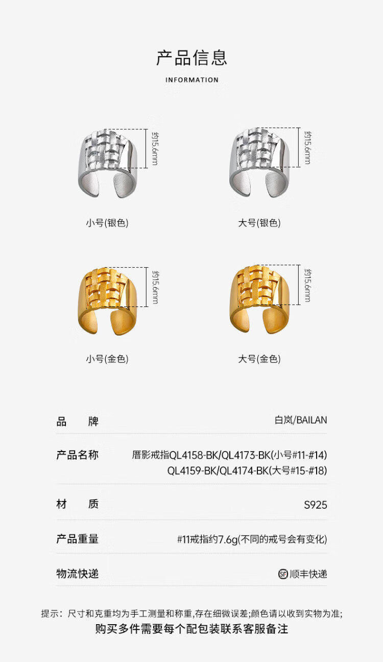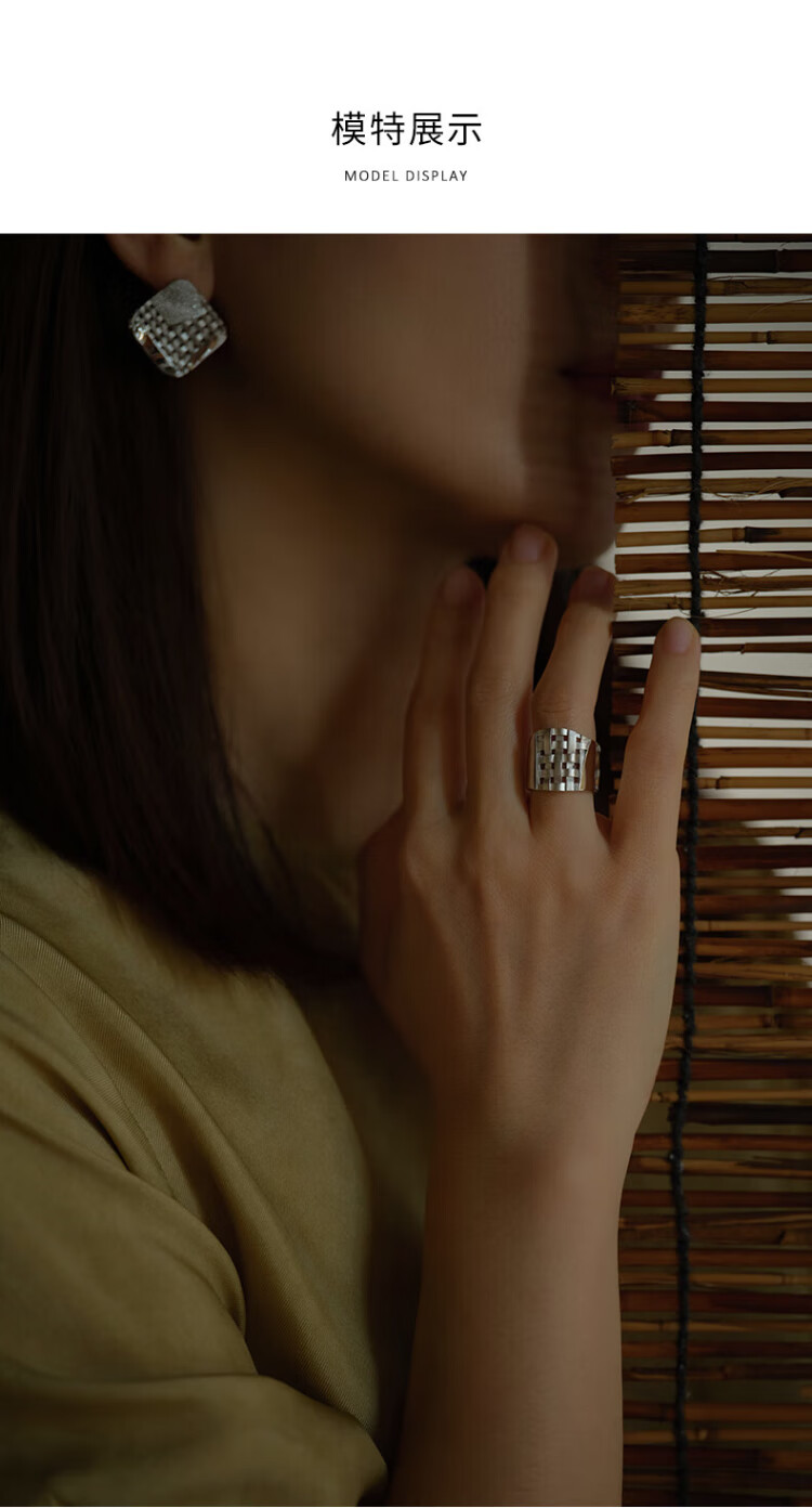 Bai Lan Cuoying Ring 925 silver retro niche design fashionable high-end jewelry feminine temperament birthday gift for wife Cuoying Ring (Silver Small)
