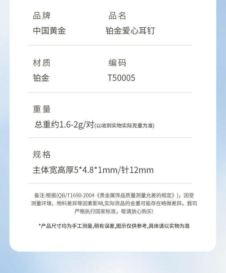 China Gold (CHINA GOLD) Love Platinum Earrings Women's pt950 Earrings Birthday Gift for Girlfriend and Wife Practical, High-end, Exquisite and Luxurious Platinum Love Earrings PT950 for Girlfriend