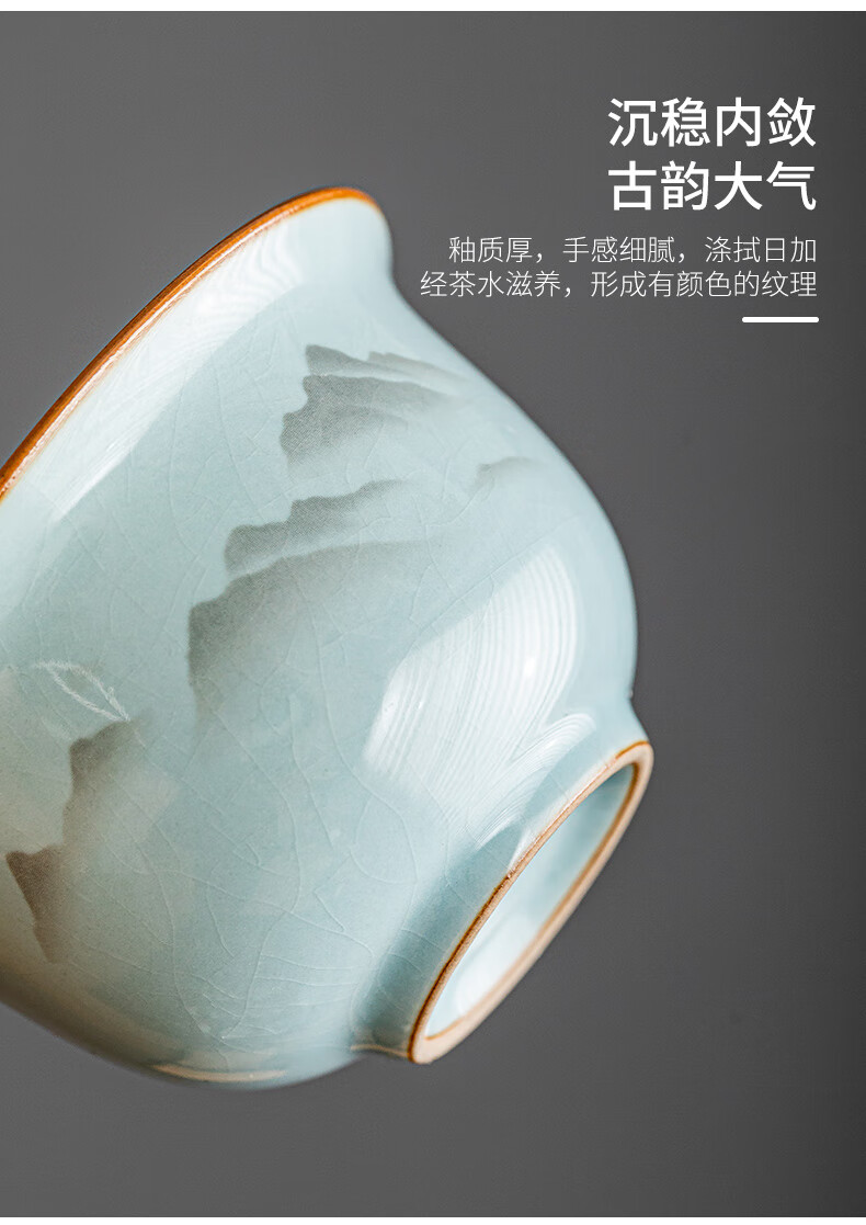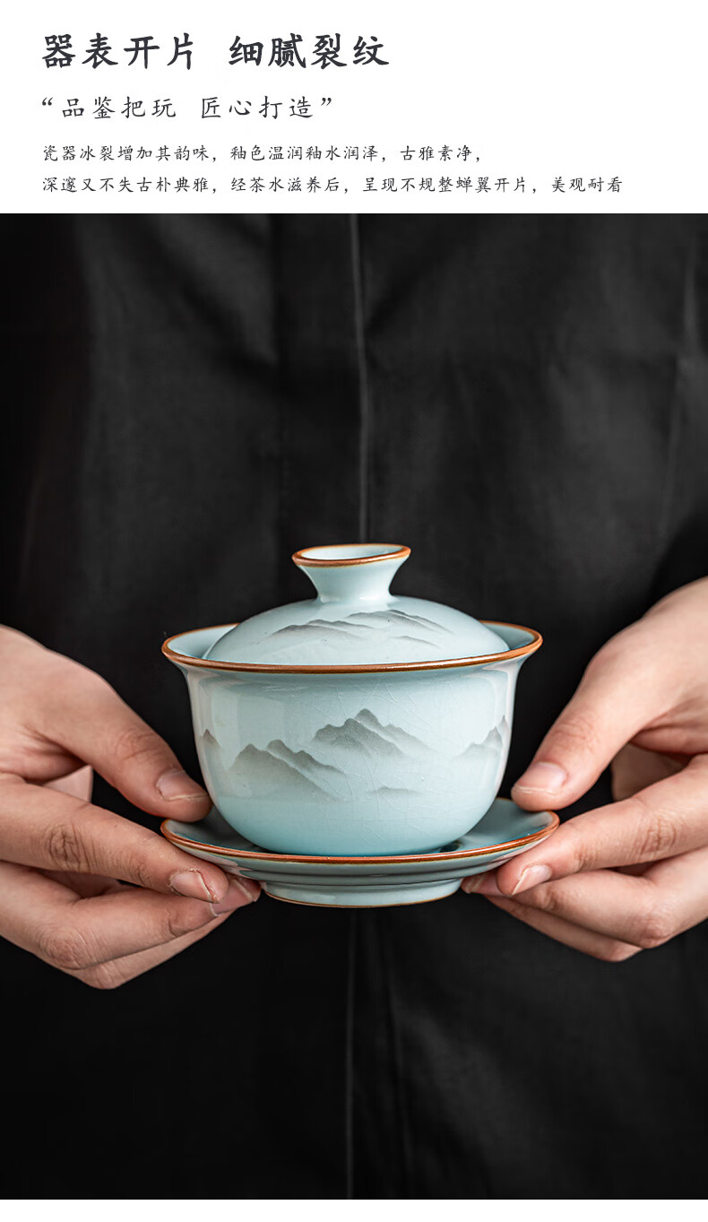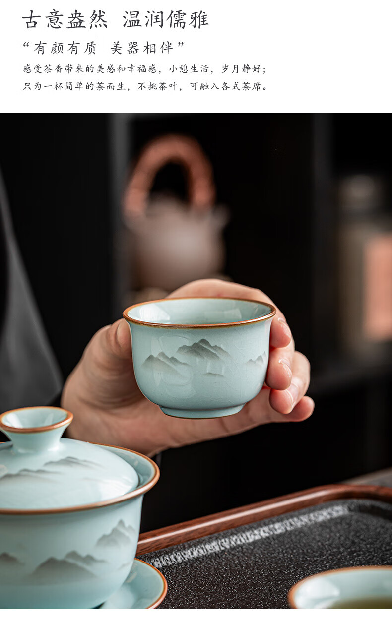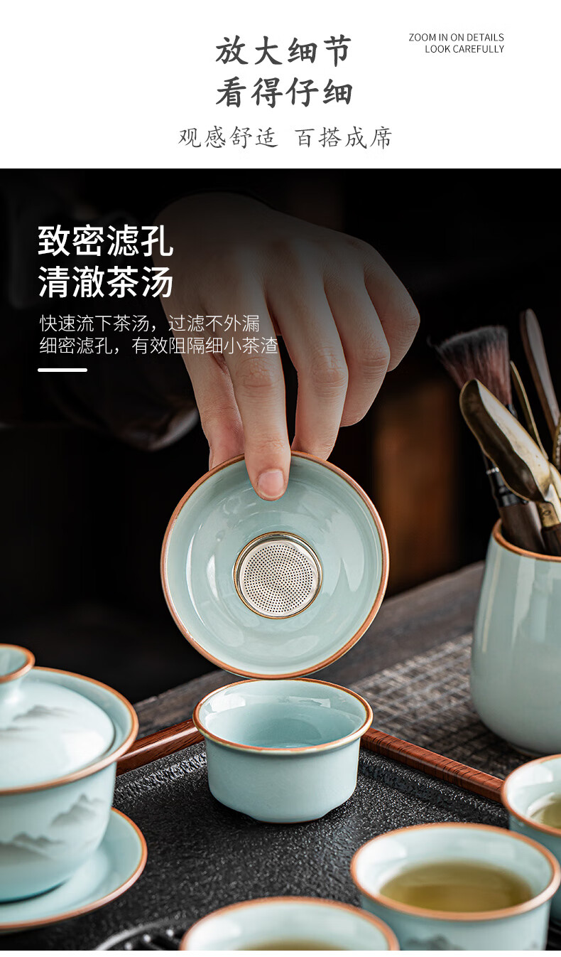 Porcelain brand tea set, official kiln ink and wash Guanshan tea set, complete set of high-end ceramic Kung Fu tea set, open piece can be used to grow teapot and bowl, ink and wash Guanshan lifting beam teapot and bowl, 8 cups, 13 pieces + tea tray