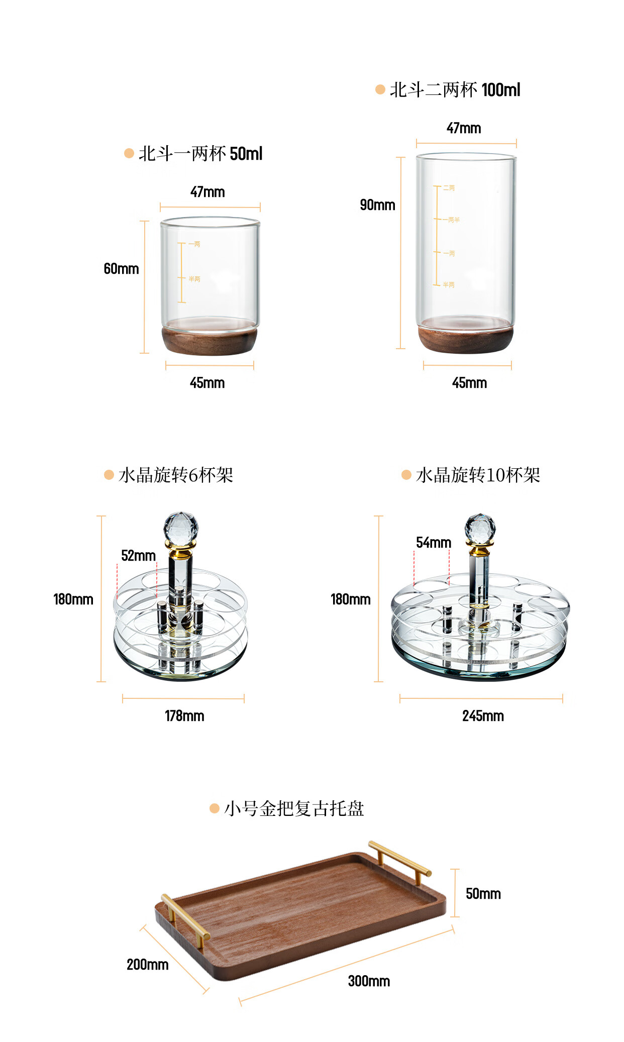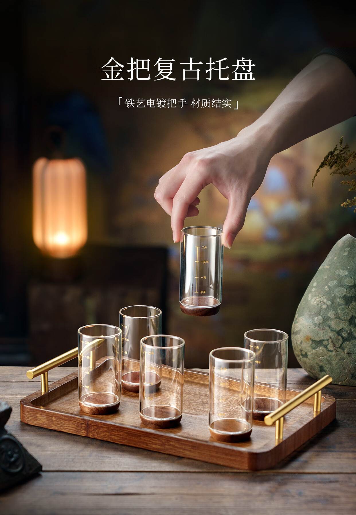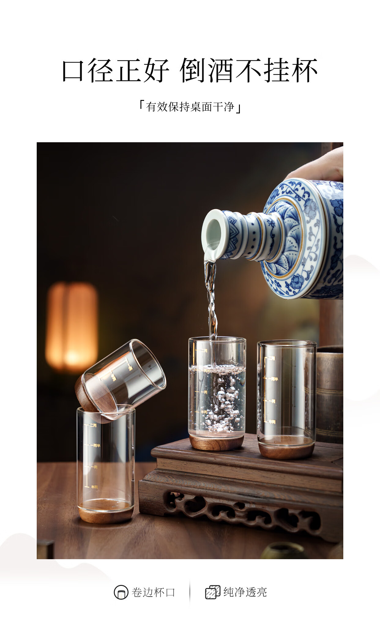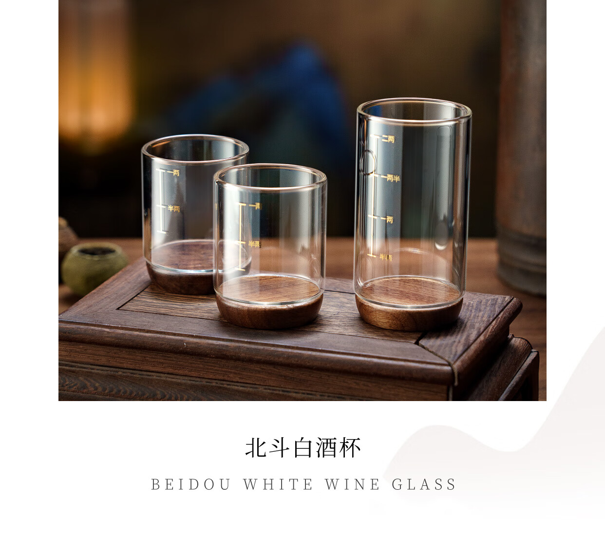 Yuchang white wine cup one or two cups two or two cups with scale high-end shochu rice wine Chinese style walnut wine set Beidou two or two cups 6 pieces walnut bottom