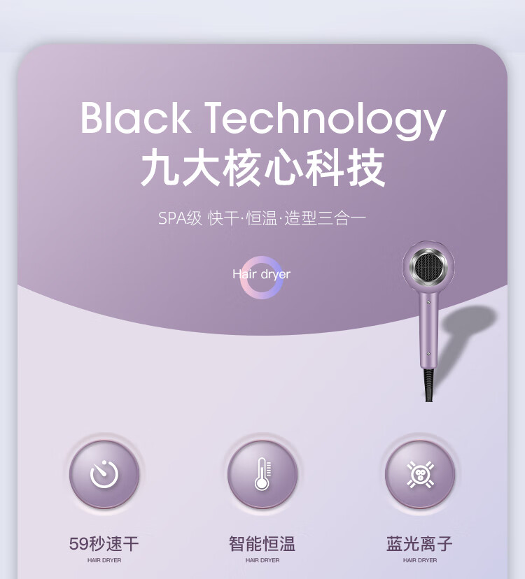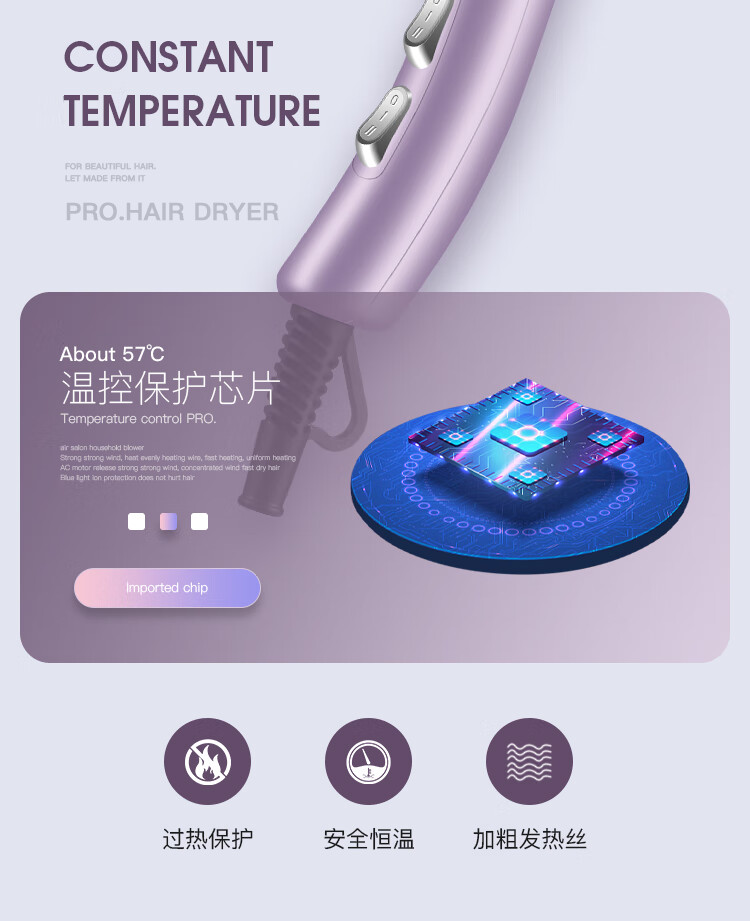Hair salon high-wind hair dryer household high-power quick-drying blue light negative ion hair dryer cold and hot air hair care mute professional hairdressing comb