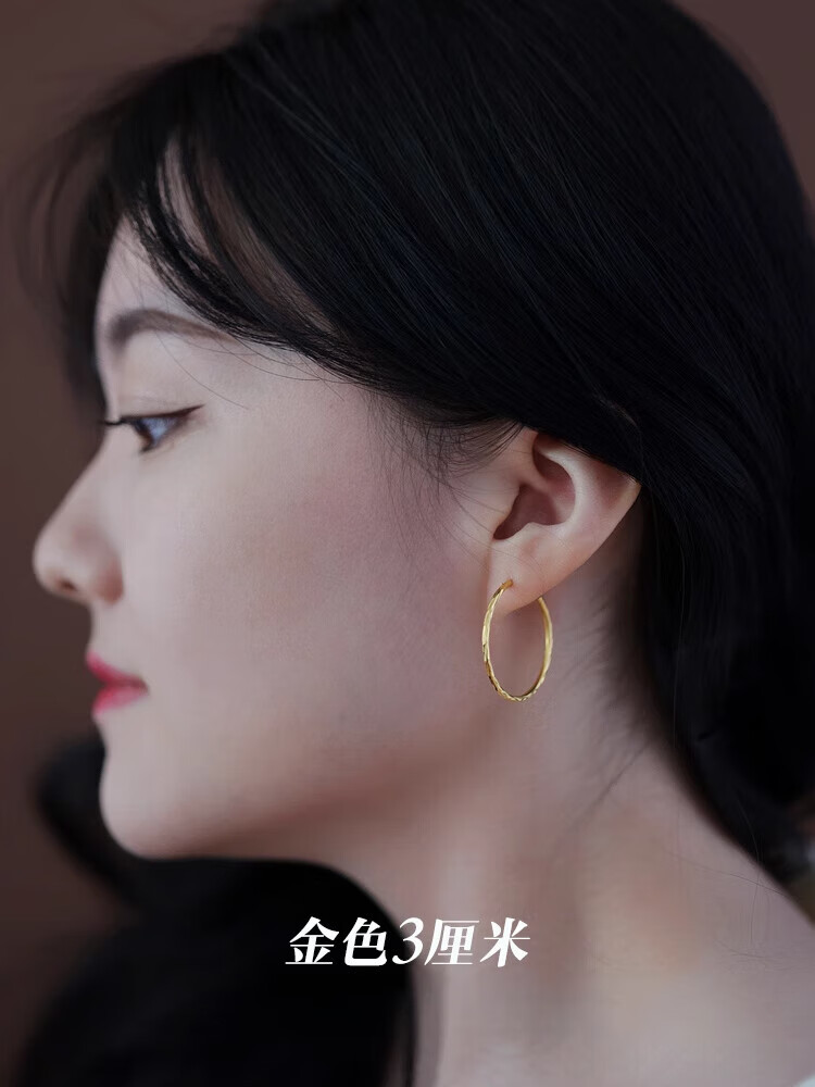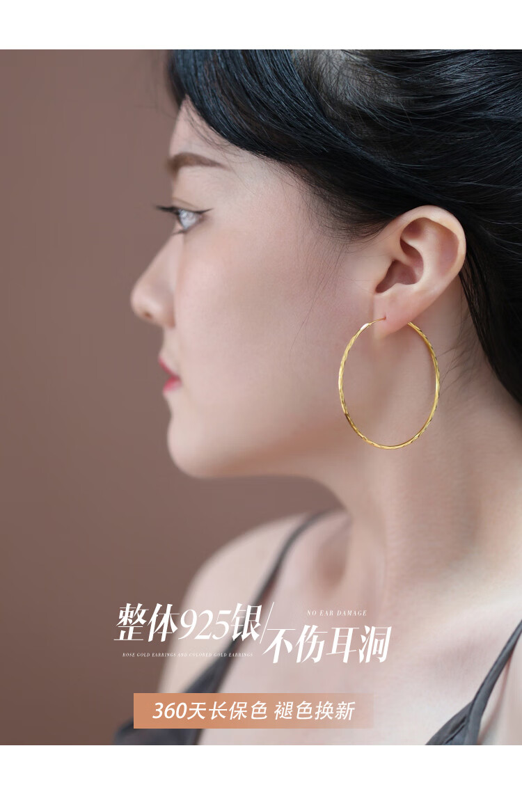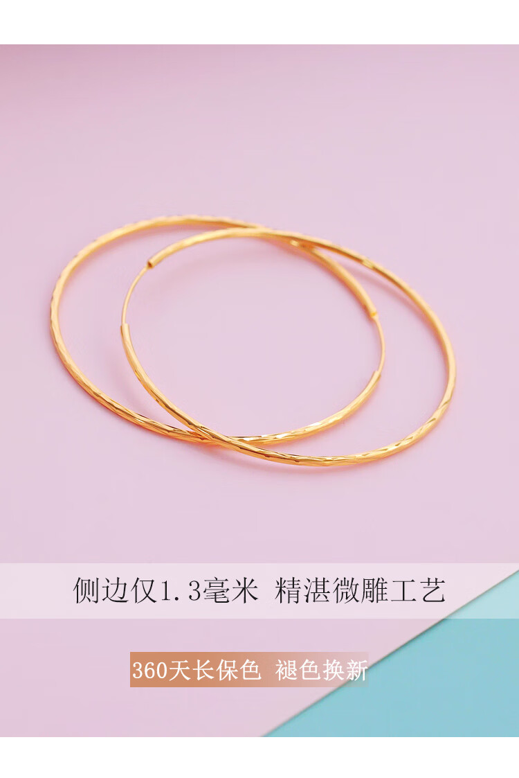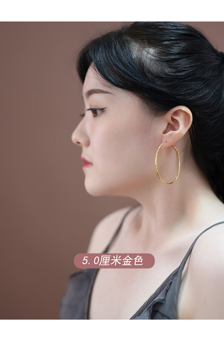 DL 1998 Fat Donglai same style 18K gold large hoop earrings 2025 new model main picture pattern gold color 5.0 cm