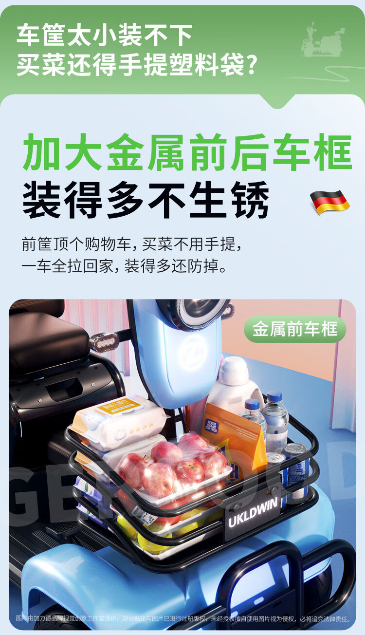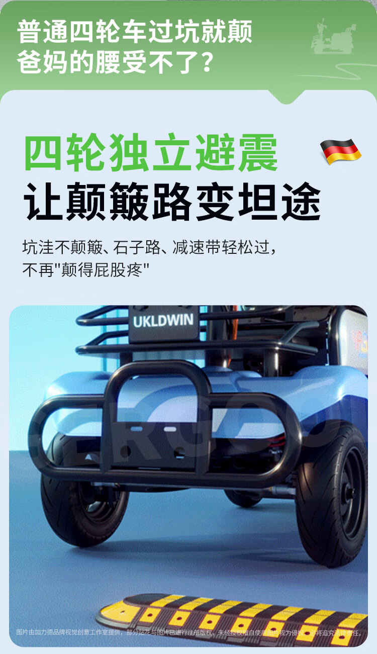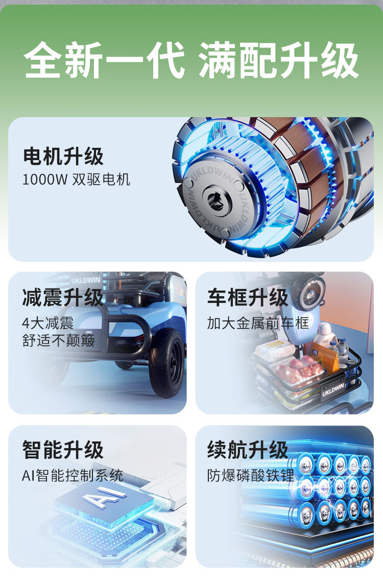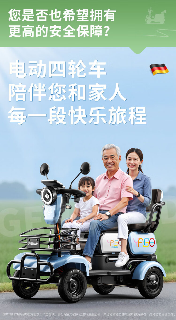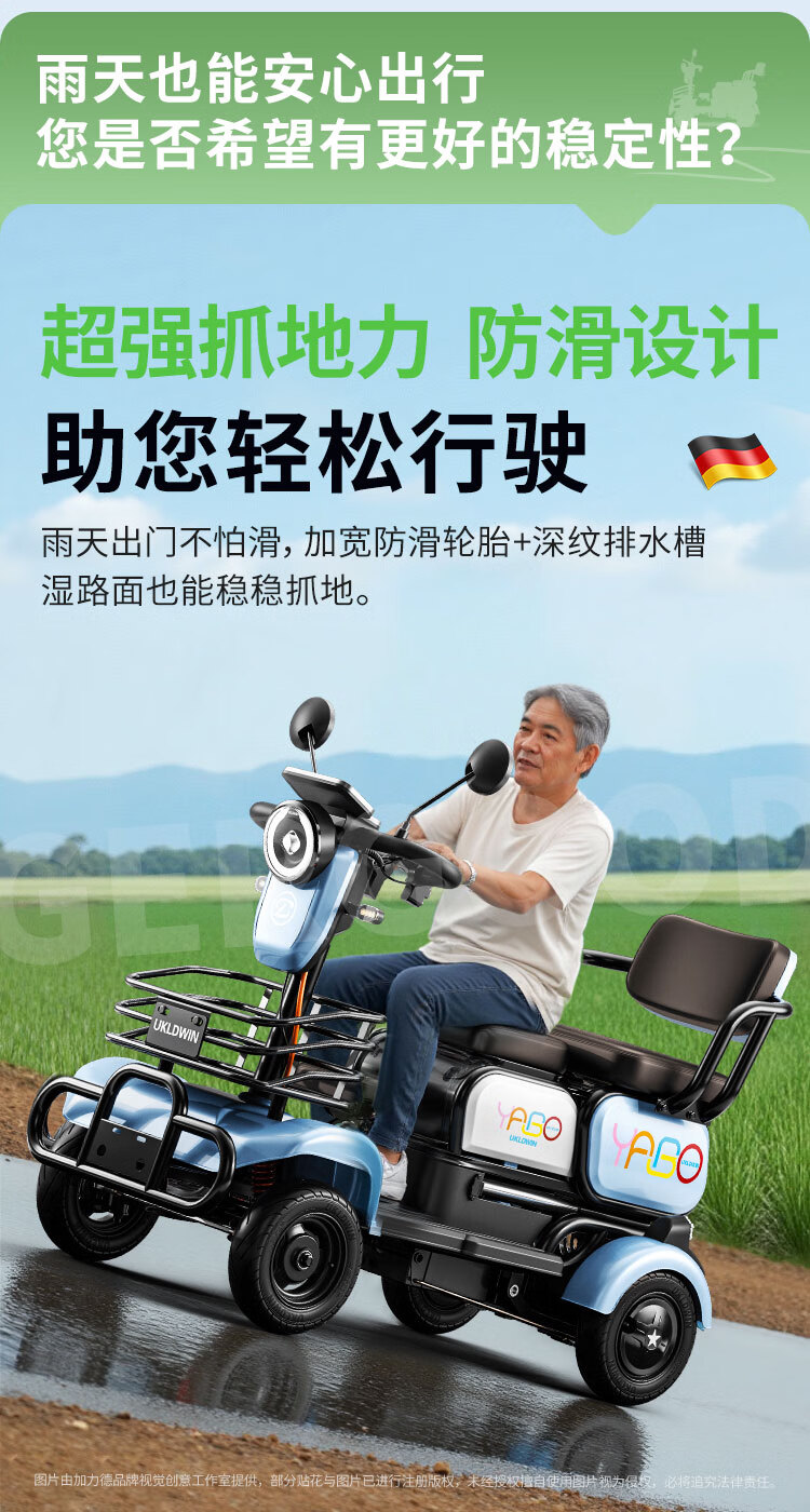 Galide electric four-wheeler for disabled people, moped to pick up and drop off children, home battery car, small mobility four-wheeler for the elderly, 1000W+60V70A, about 330 miles + exported lithium battery