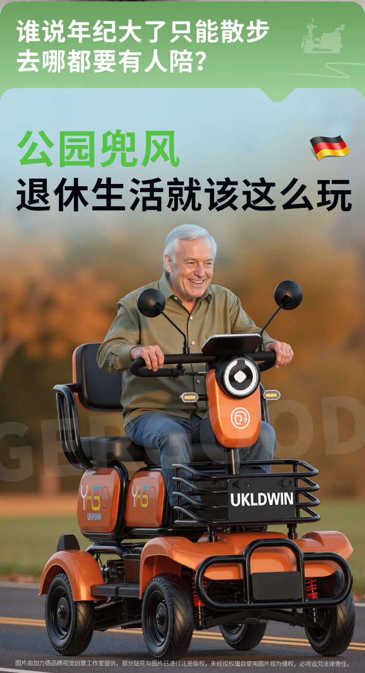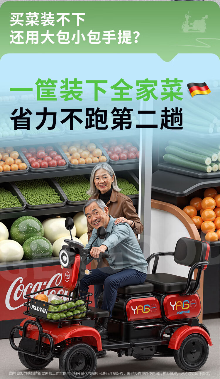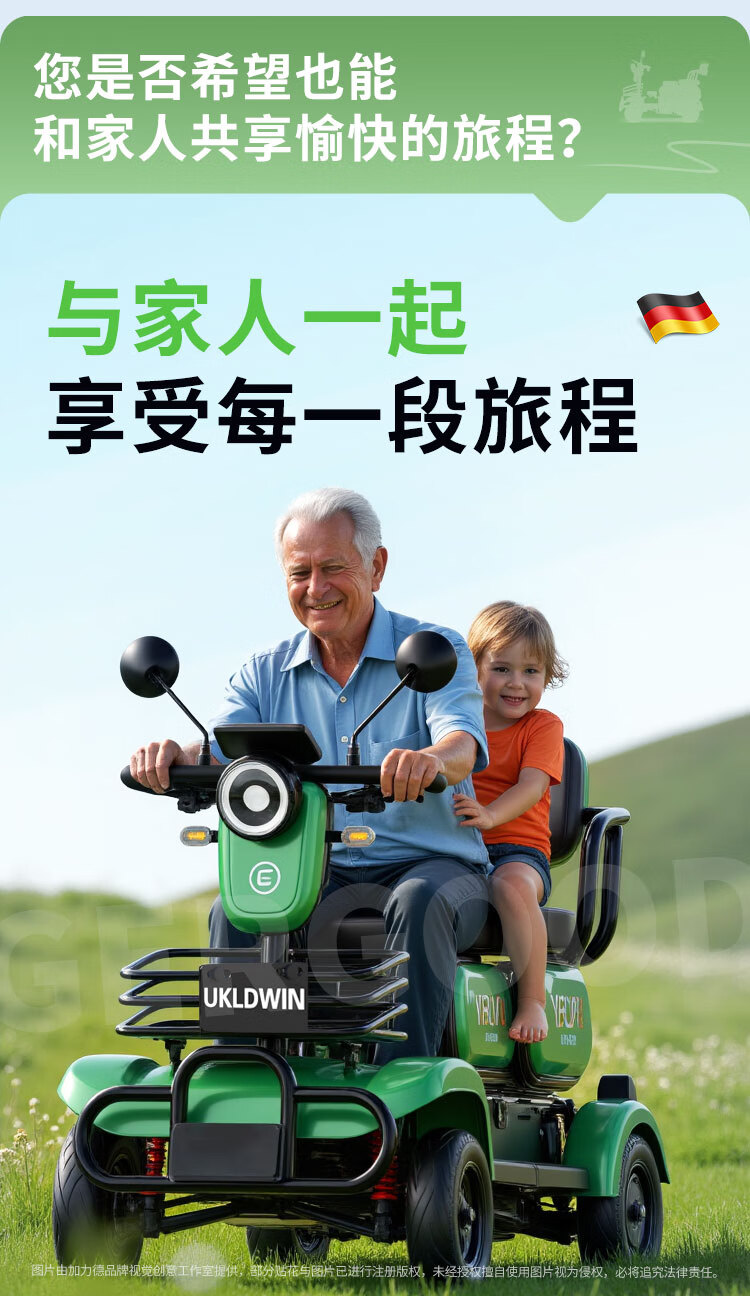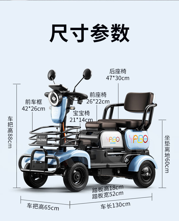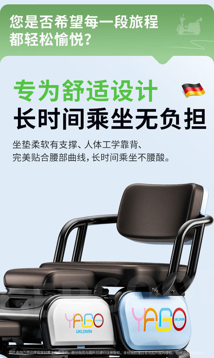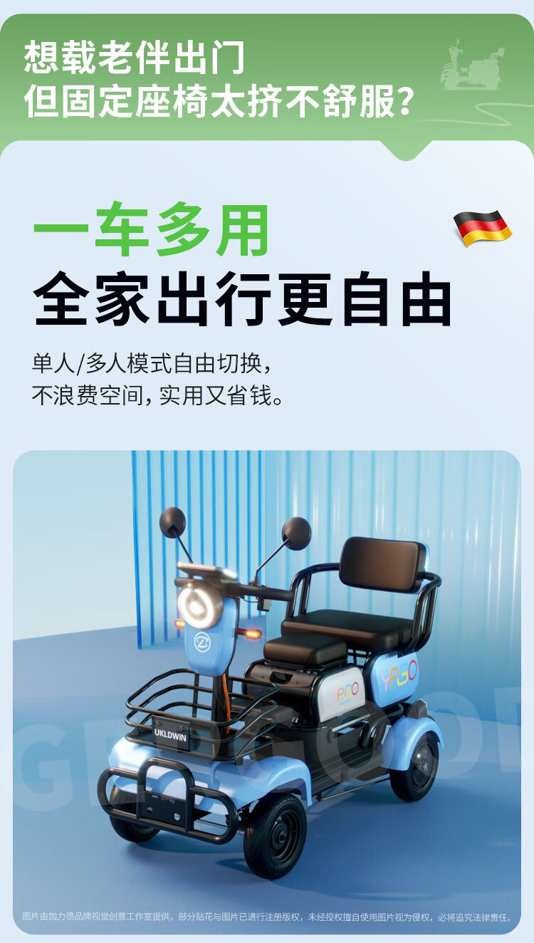 Galide electric four-wheeler for disabled people, moped to pick up and drop off children, home battery car, small mobility four-wheeler for the elderly, 1000W+60V70A, about 330 miles + exported lithium battery