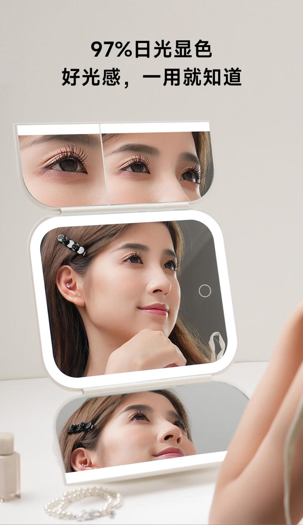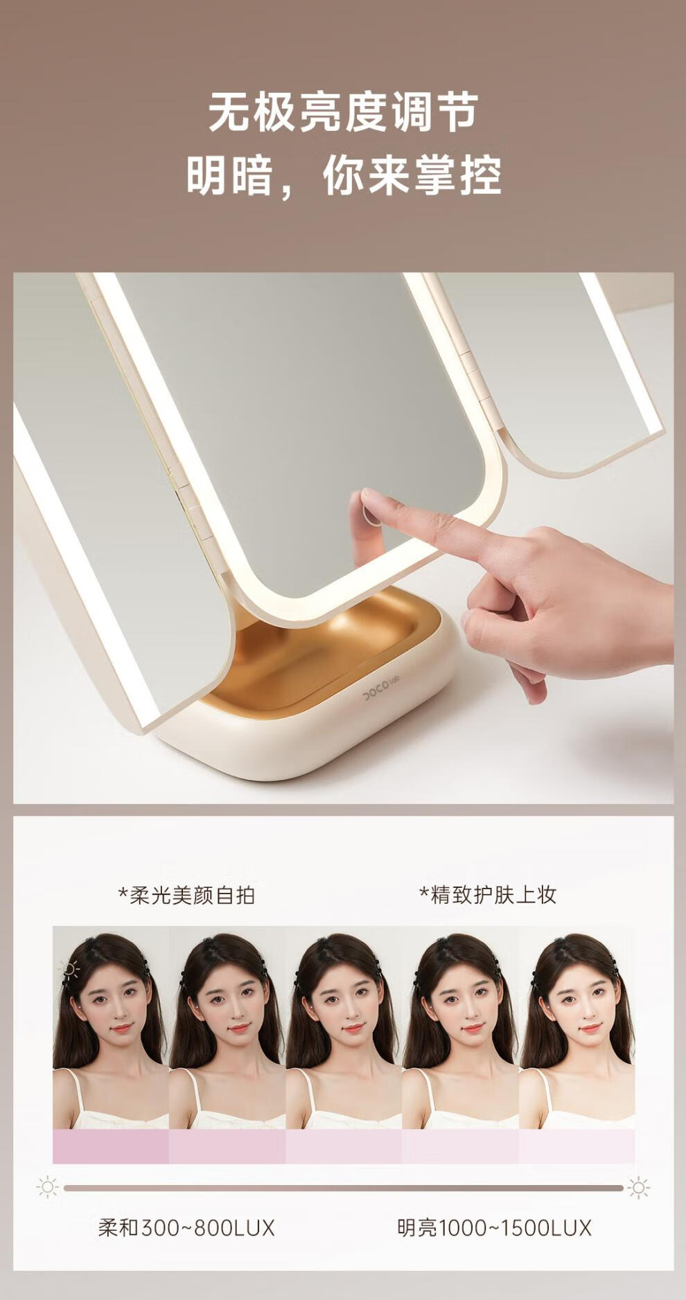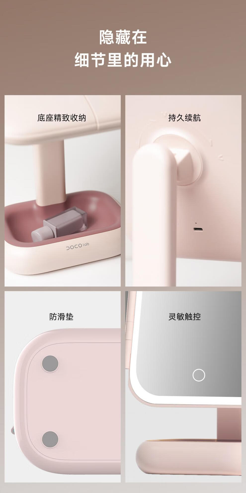 DOCO LAB new product 嗲嗲 makeup mirror with light led mirror desktop desktop luminous smart vanity mirror beauty mirror shell mirror standard version - warm mist smoke powder 2500 mAh