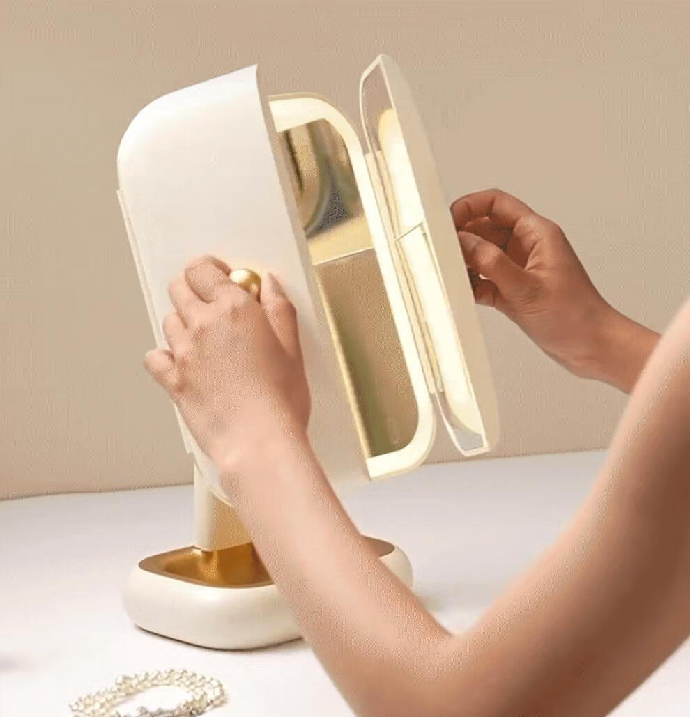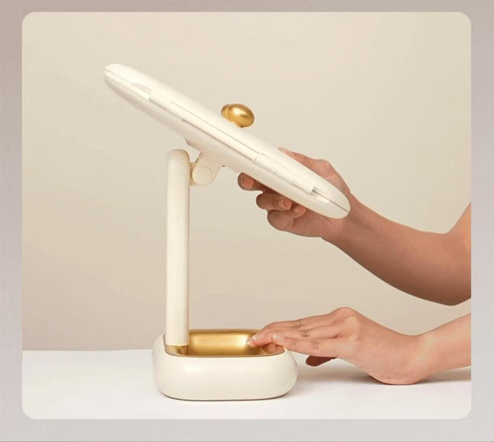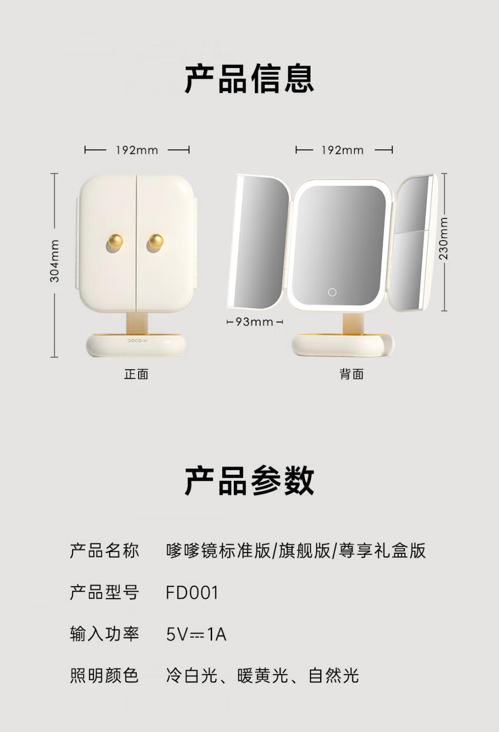 DOCO LAB new product 嗲嗲 makeup mirror with light led mirror desktop desktop luminous smart vanity mirror beauty mirror shell mirror standard version - warm mist smoke powder 2500 mAh