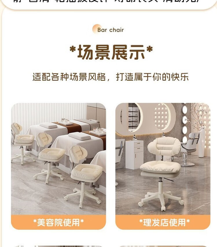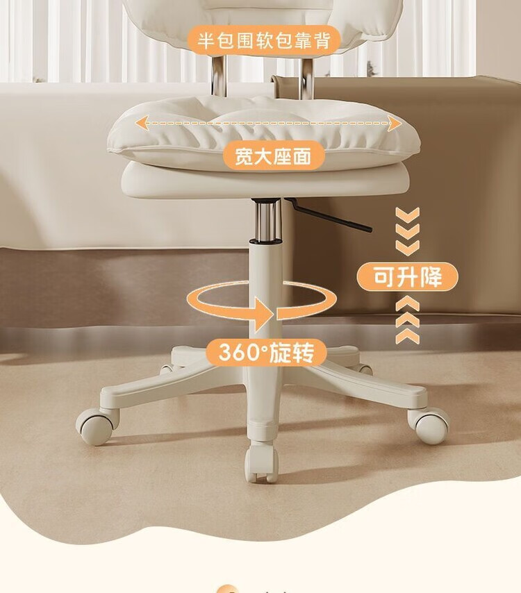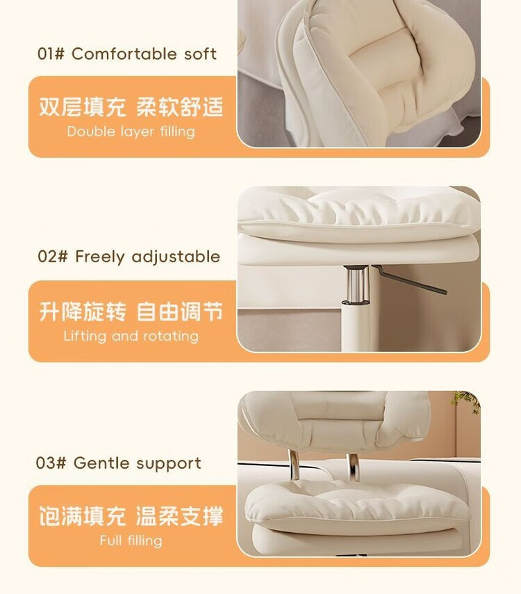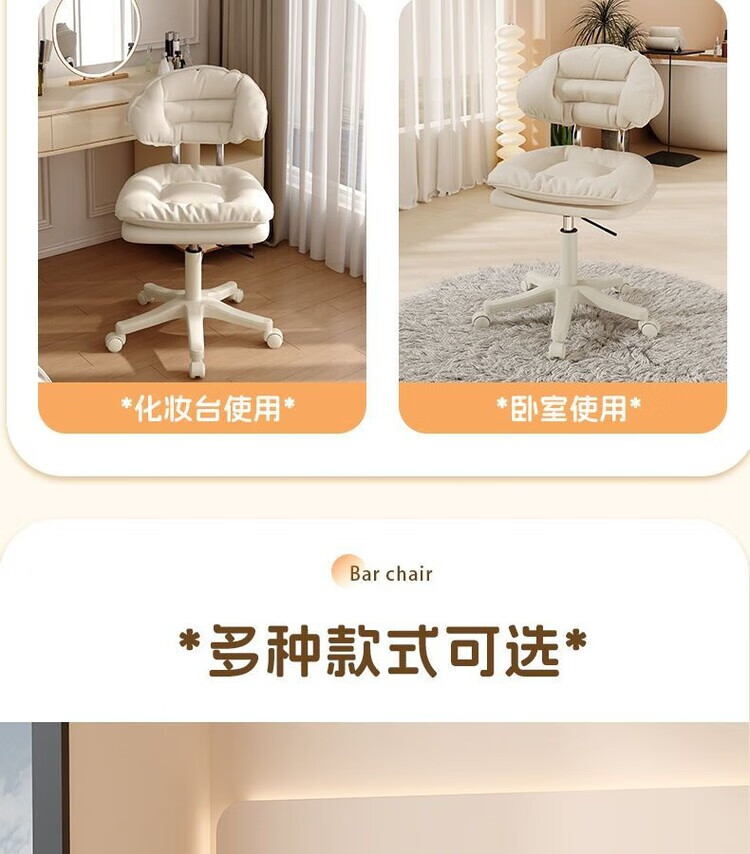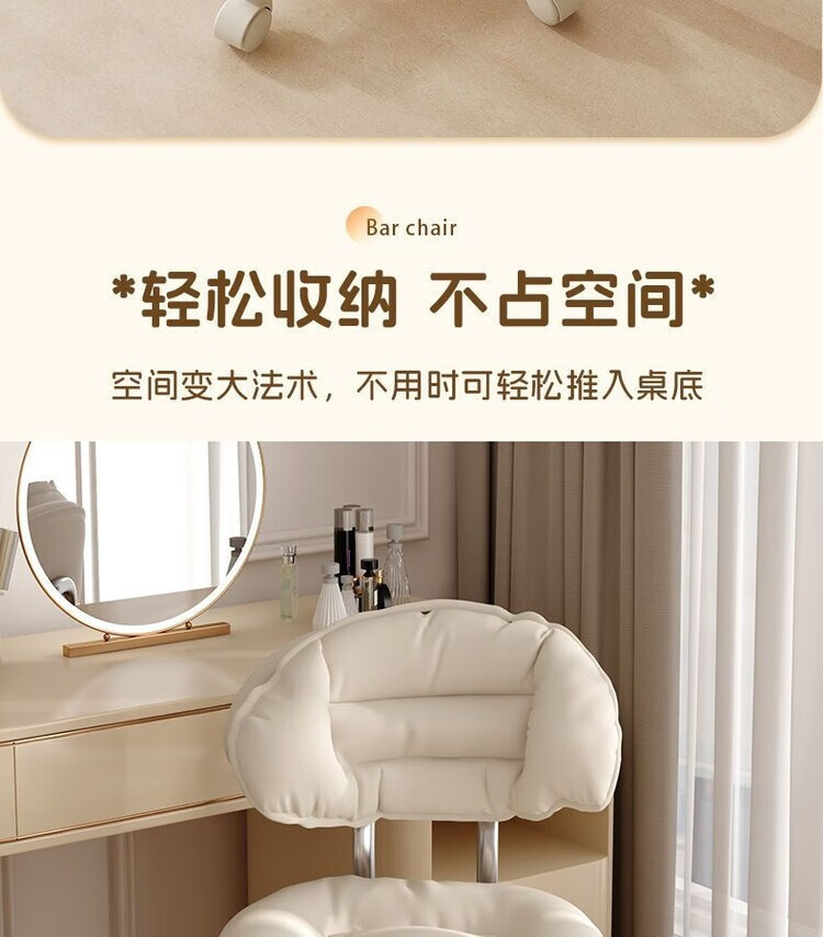 Miyi Light Luxury Makeup Stool Bedroom Dressing Stool Modern Simple Small Apartment Home Dressing Table Chair High-end Manicure Stool Super Quality Beige Cloud Cushion Beige Pole-Silent White Wheel