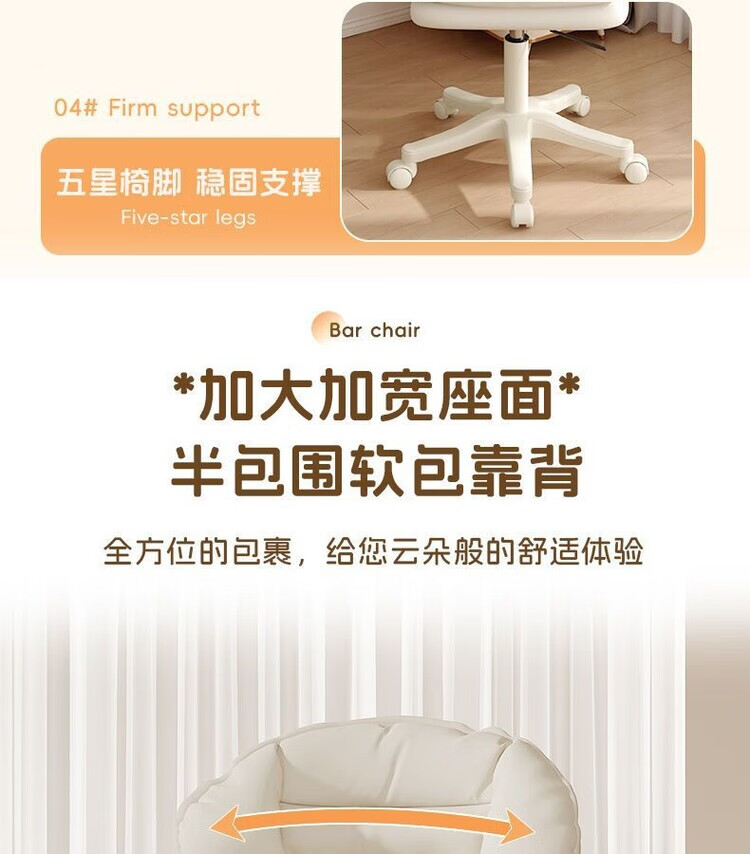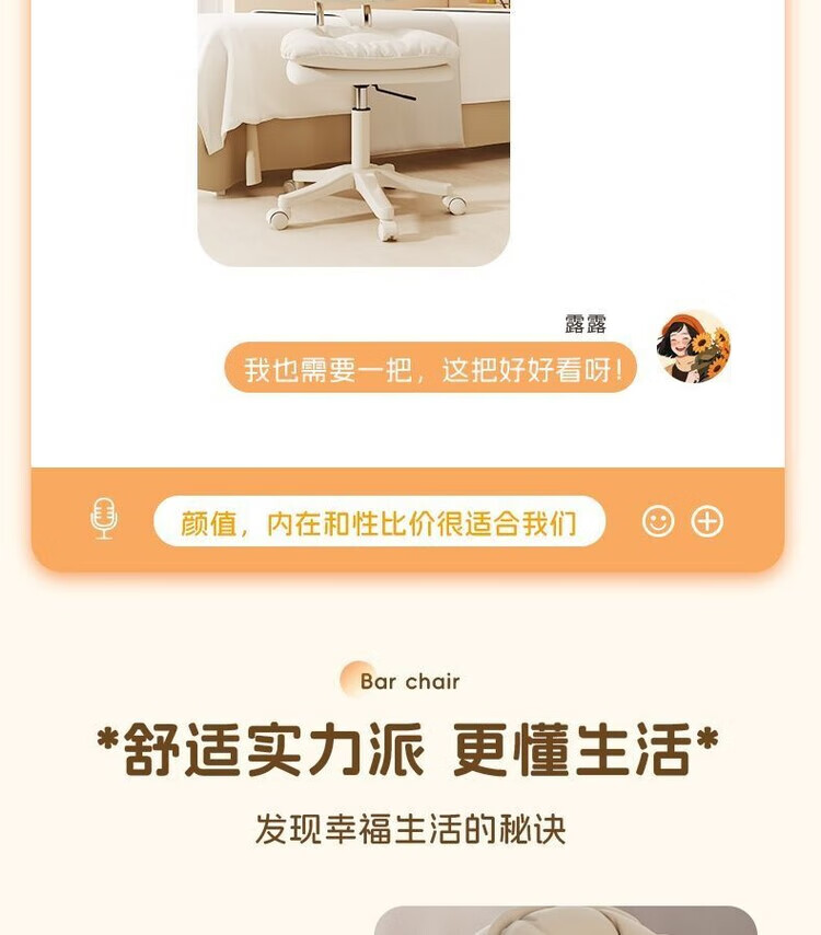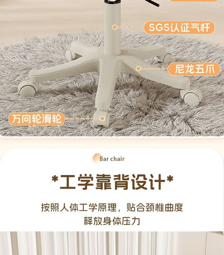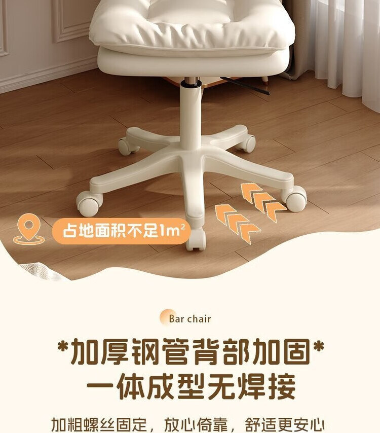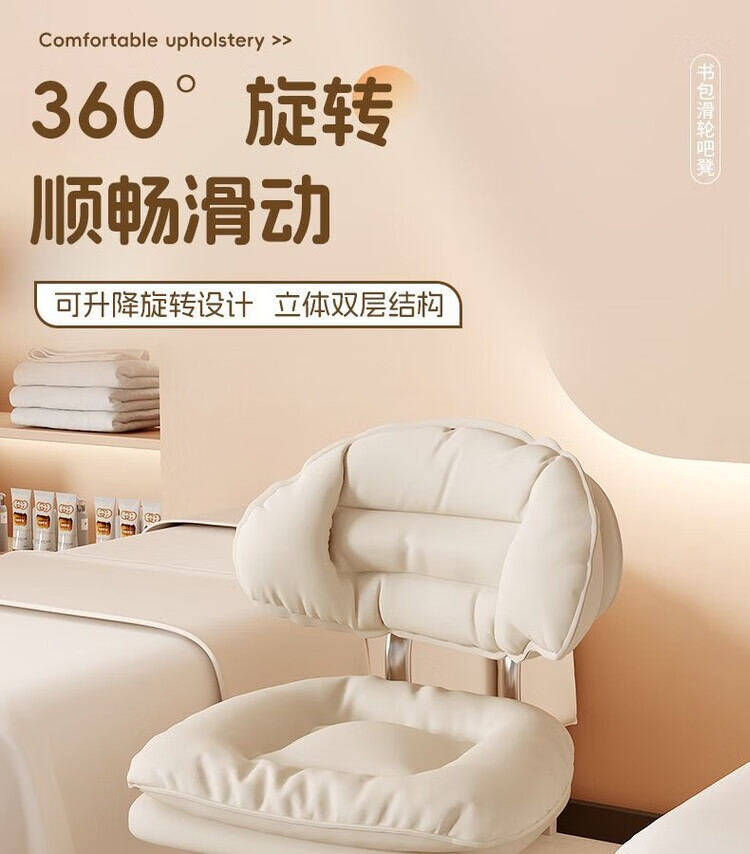Miyi Light Luxury Makeup Stool Bedroom Dressing Stool Modern Simple Small Apartment Home Dressing Table Chair High-end Manicure Stool Super Quality Beige Cloud Cushion Beige Pole-Silent White Wheel