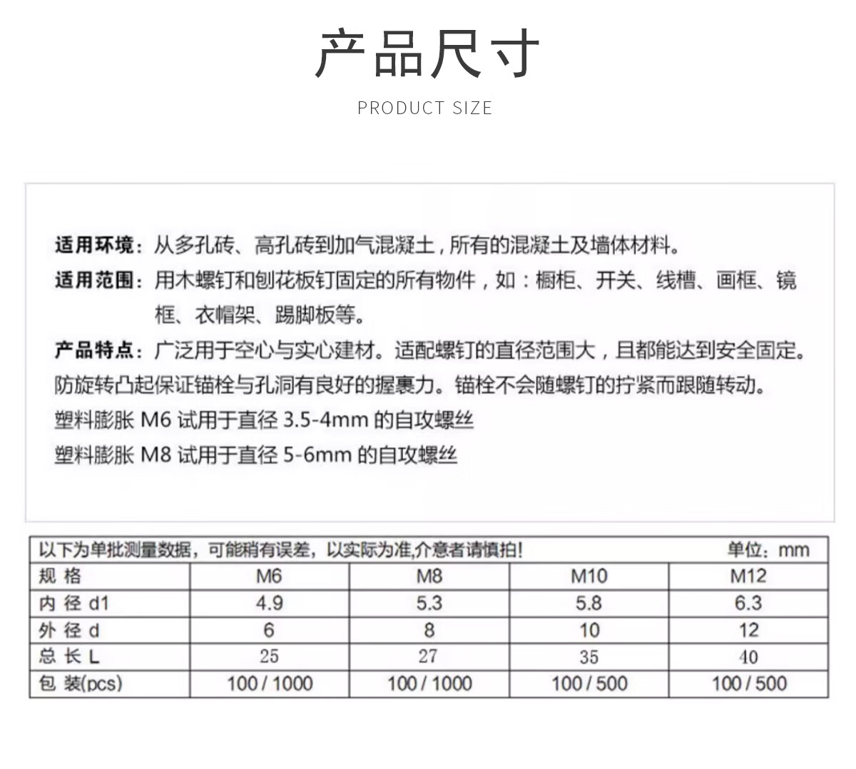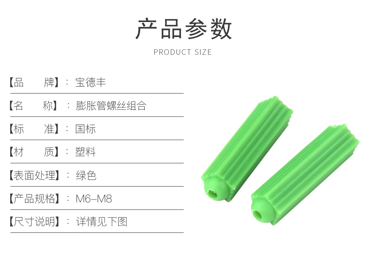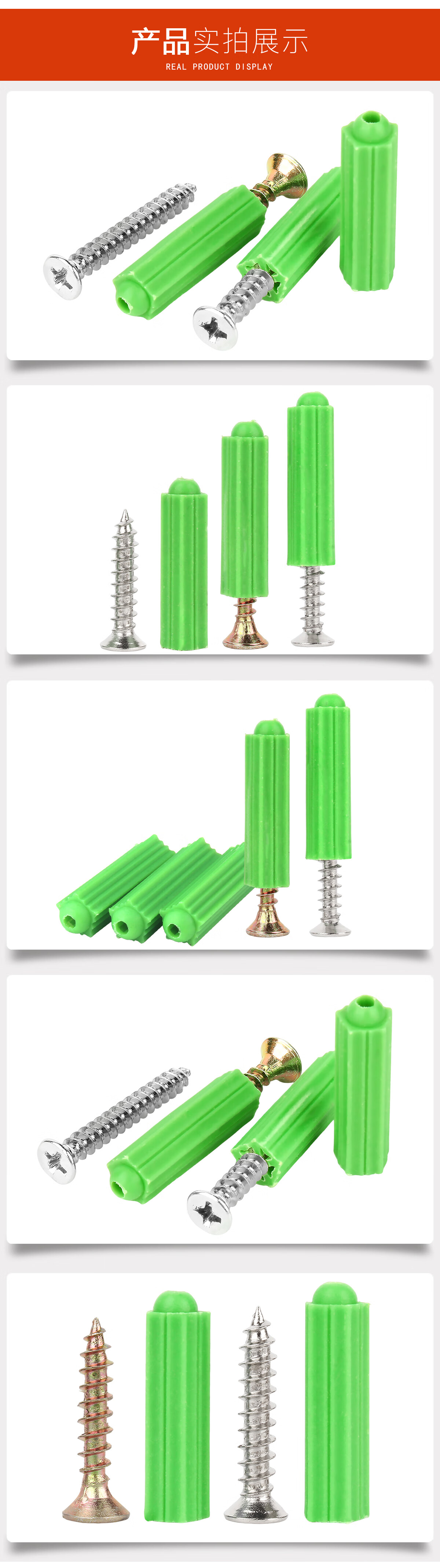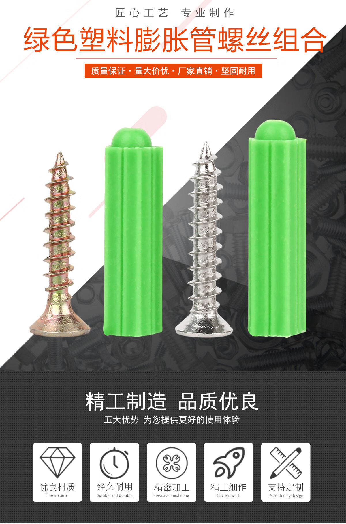 Baodefeng green plastic expansion tube 6mm8mm expansion screw expansion plug wall plug rubber plug stainless steel self-tapping screw M4M5 M6+304 self-tapping 50 sets