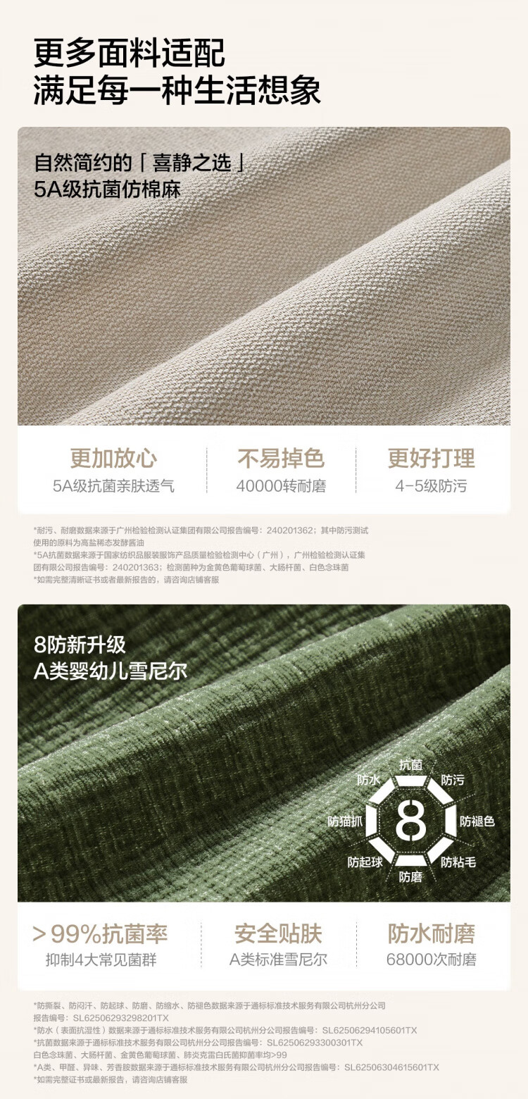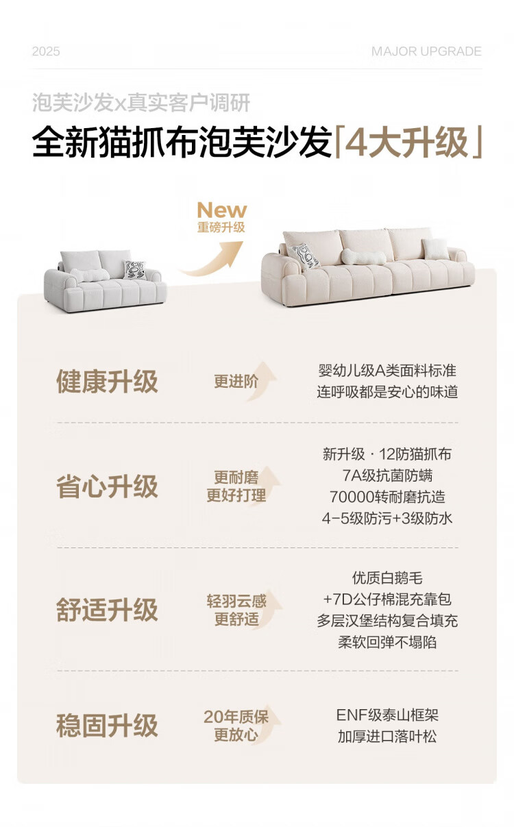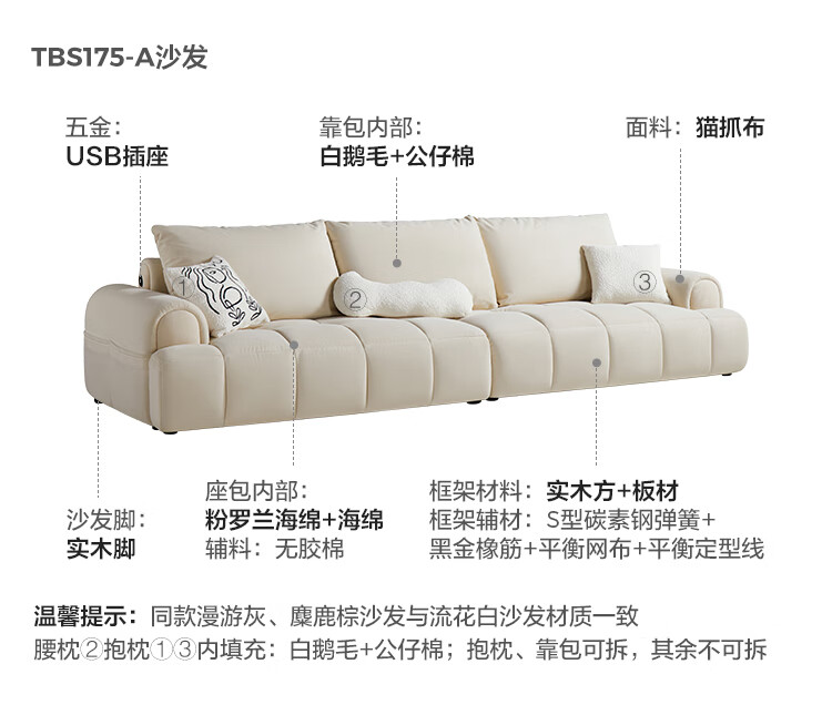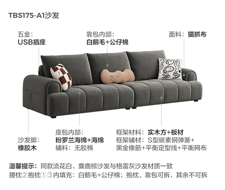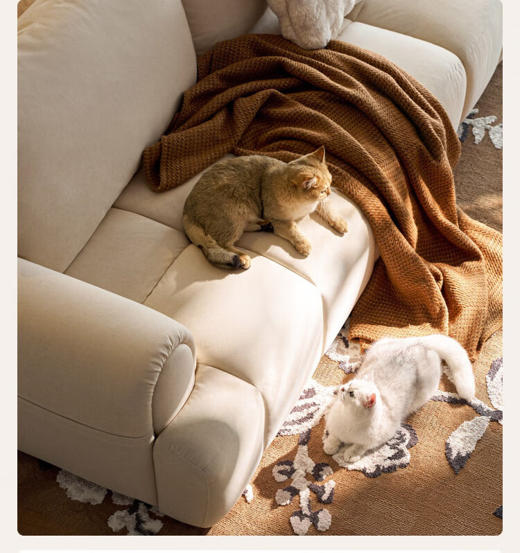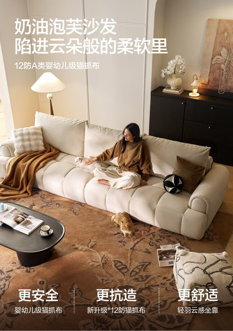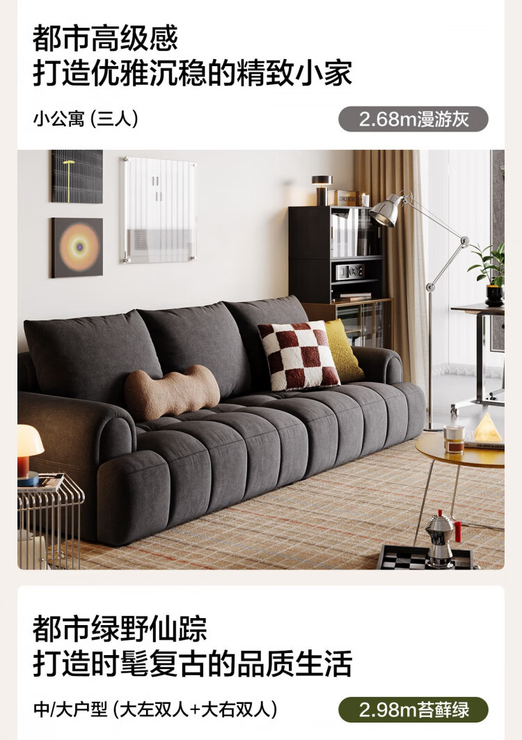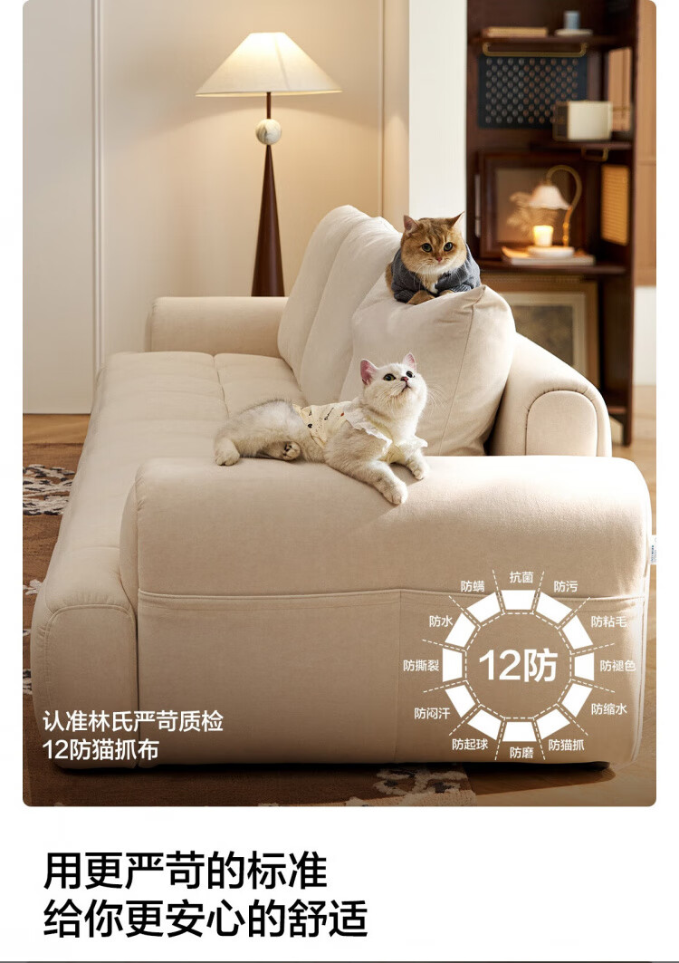 Lin's Home Cream Style Fabric Sofa Living Room 2025 New Puff Sofa Cat Scratch Cloth Furniture Small Apartment Sofa TBS175 2.68 meters | Roaming Gray 12 Anti-bacterial Cat Scratch Cloth