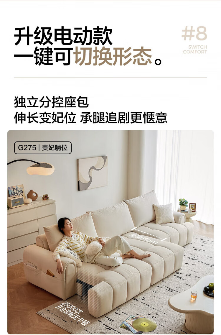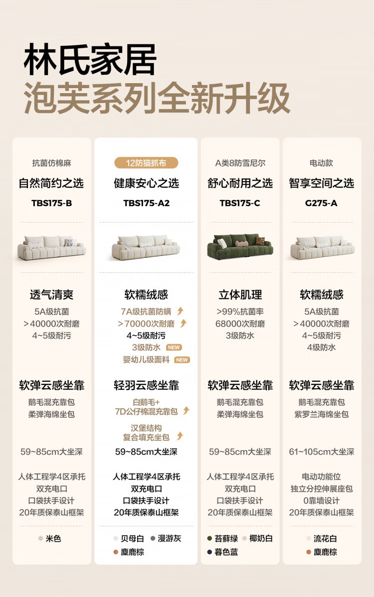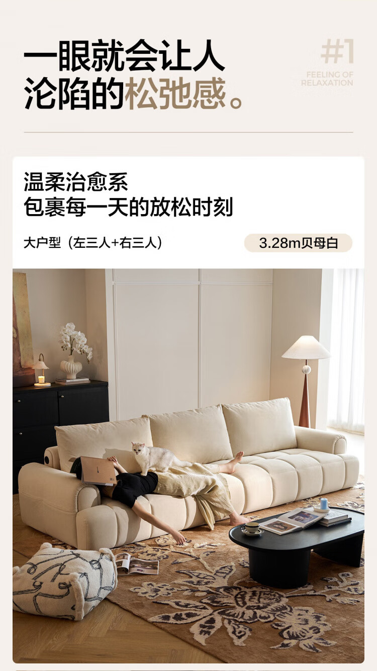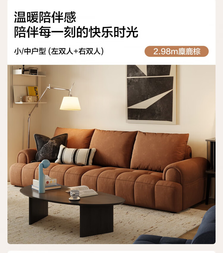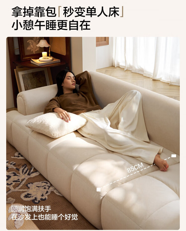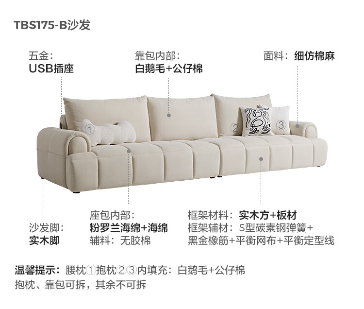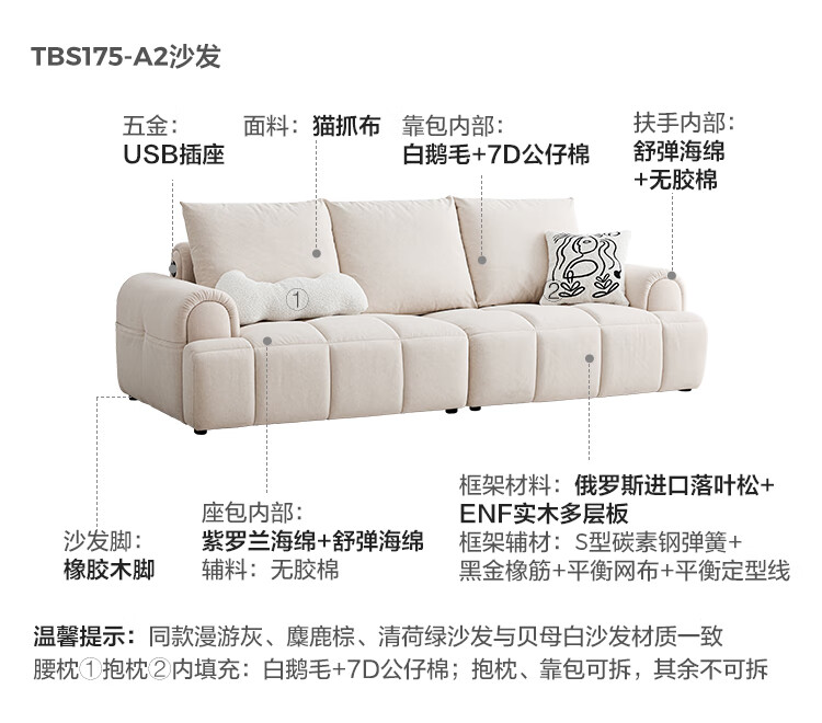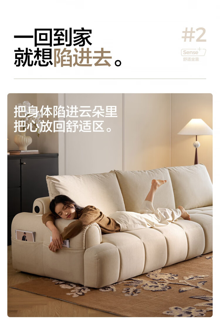 Lin's Home Cream Style Fabric Sofa Living Room 2025 New Puff Sofa Cat Scratch Cloth Furniture Small Apartment Sofa TBS175 2.68 meters | Roaming Gray 12 Anti-bacterial Cat Scratch Cloth