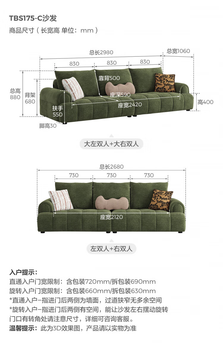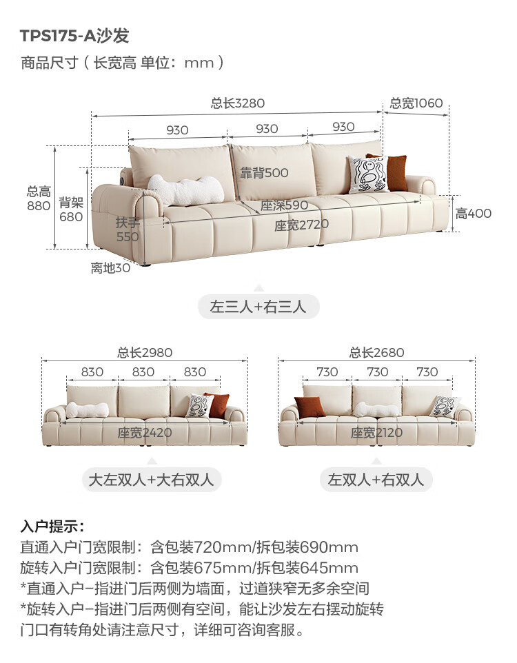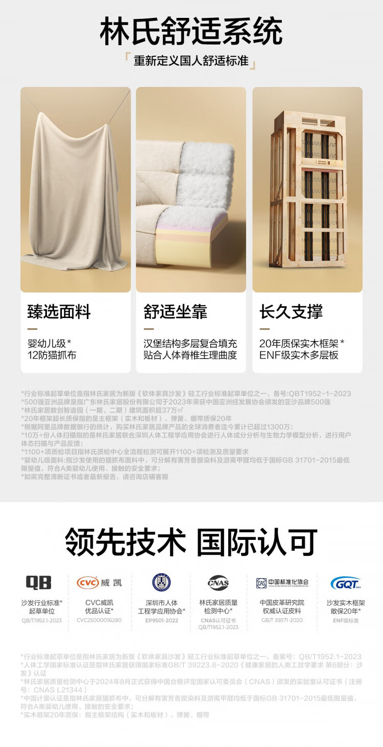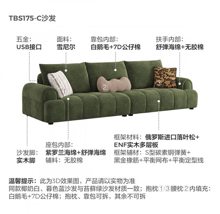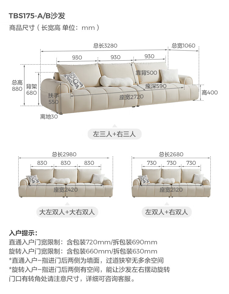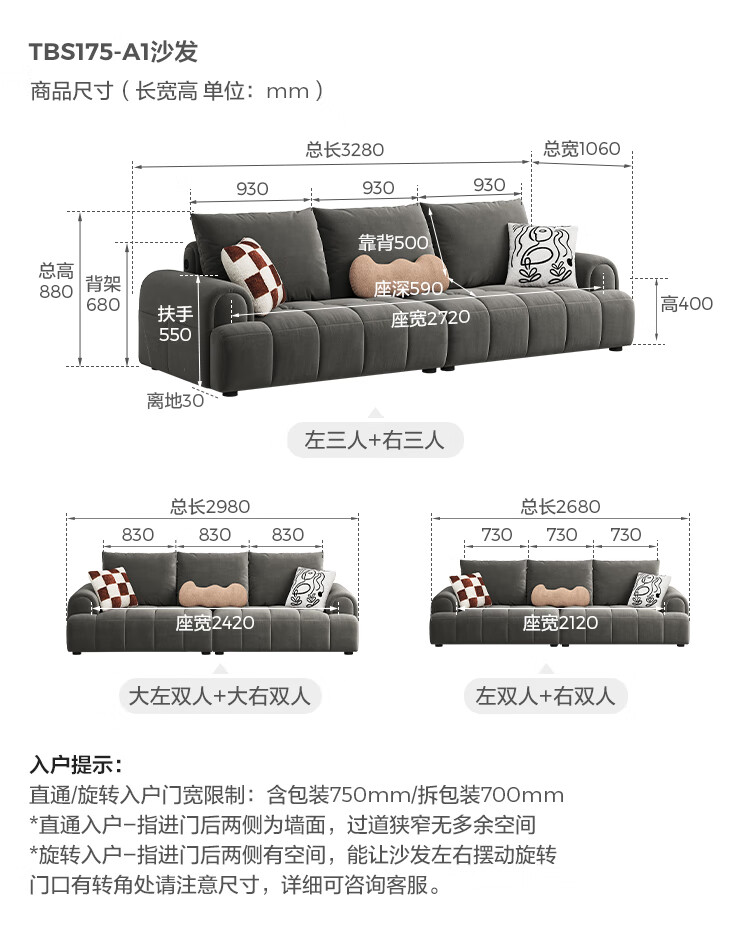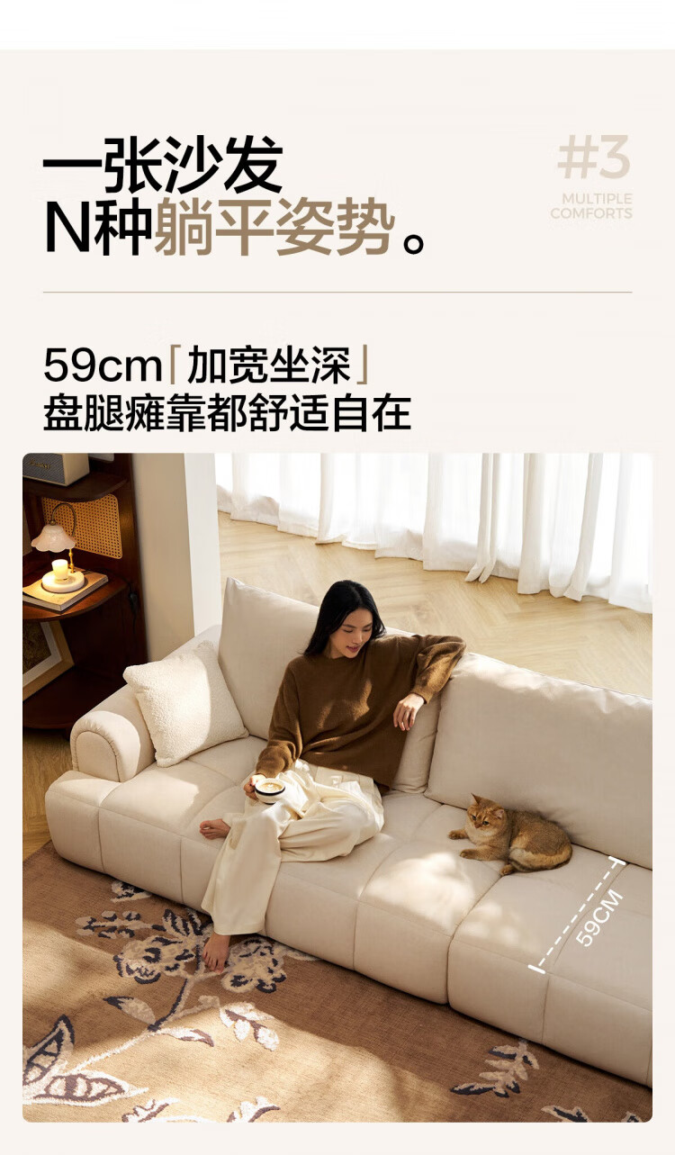 Lin's Home Cream Style Fabric Sofa Living Room 2025 New Puff Sofa Cat Scratch Cloth Furniture Small Apartment Sofa TBS175 2.68 meters | Roaming Gray 12 Anti-bacterial Cat Scratch Cloth