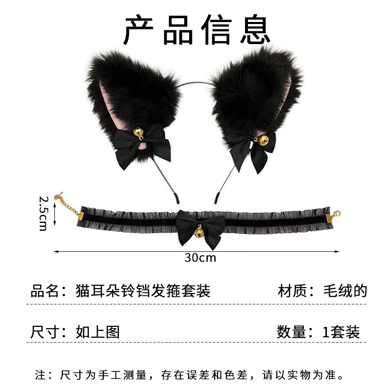 Suican cat ear bell headband atmosphere cos dress collar animal ear headwear cat girlfriend anchor Lolita couple cat ear headband black + collar 1 set