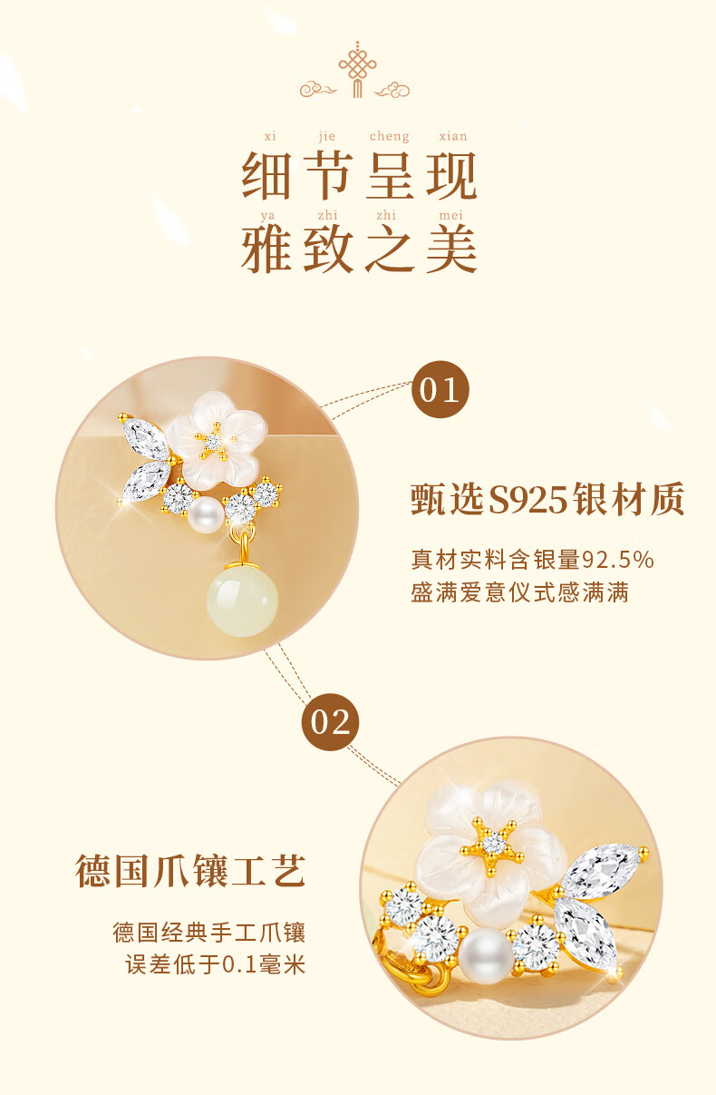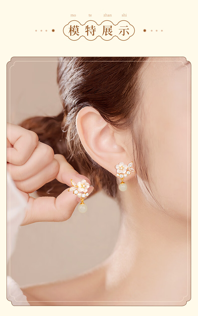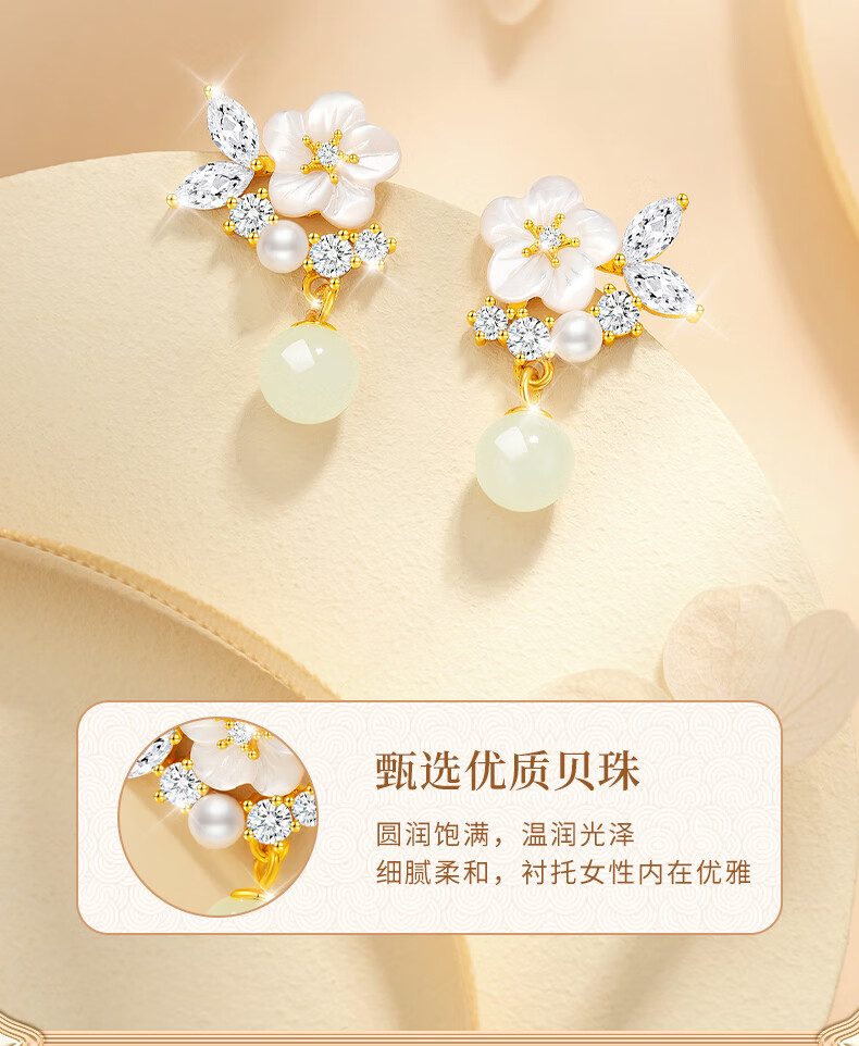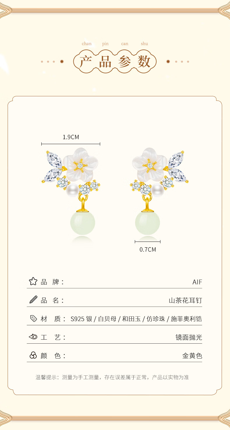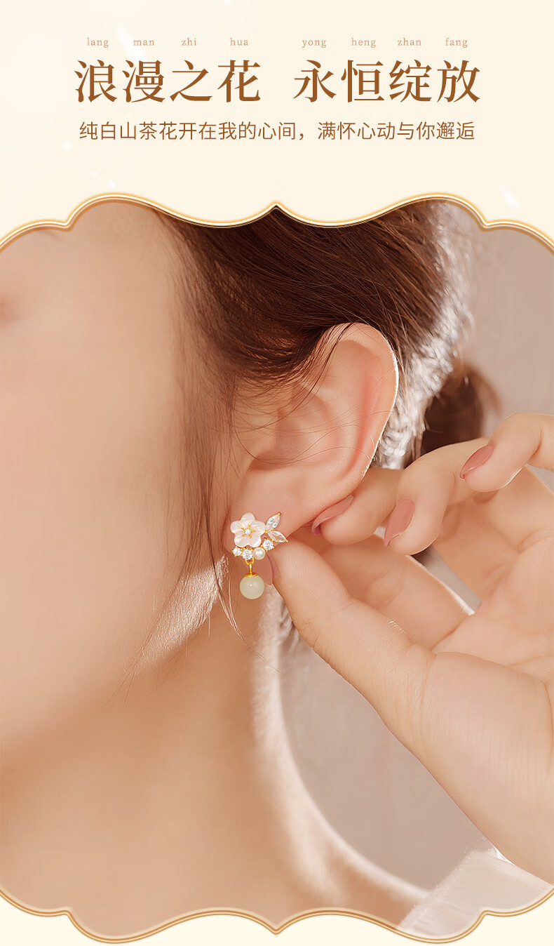 AIF Camellia S925 Silver Earrings for Women Hetian Jade Earrings Pearl Earrings Earrings High-end Birthday Gifts for Girlfriend Camellia Silver Earrings + Selection Gift Box