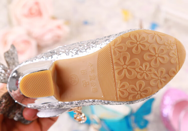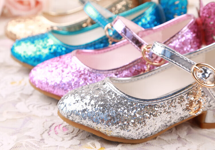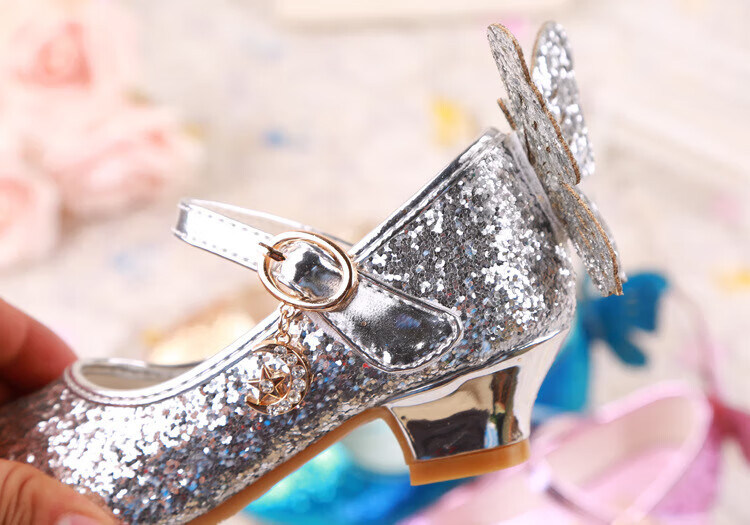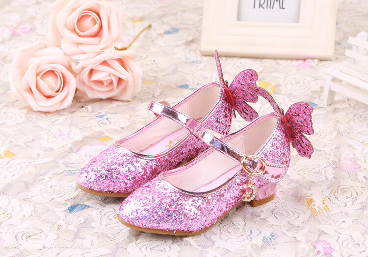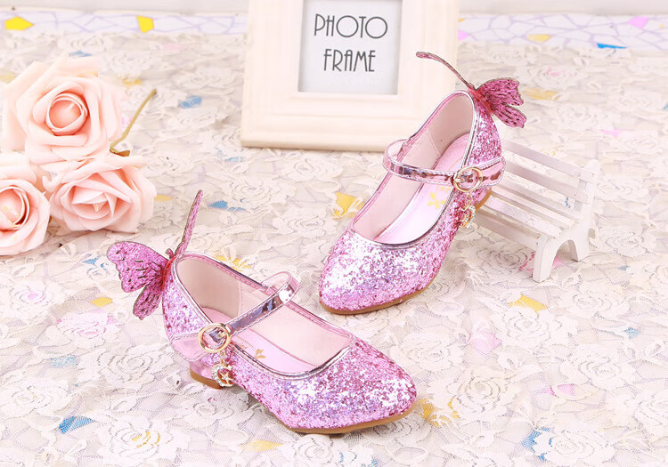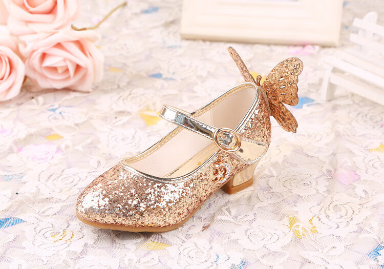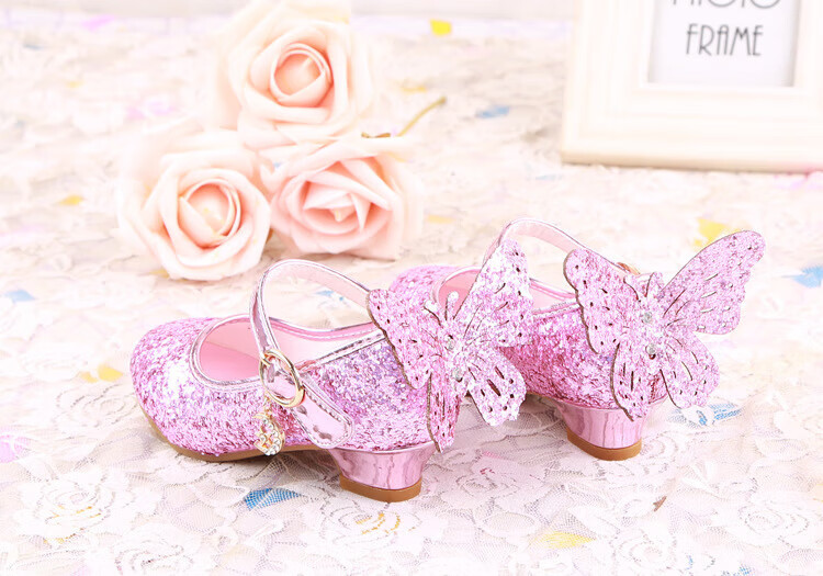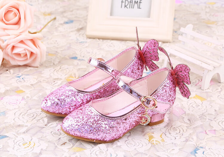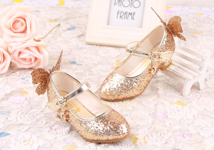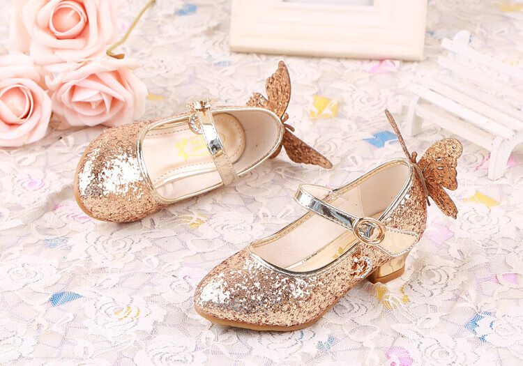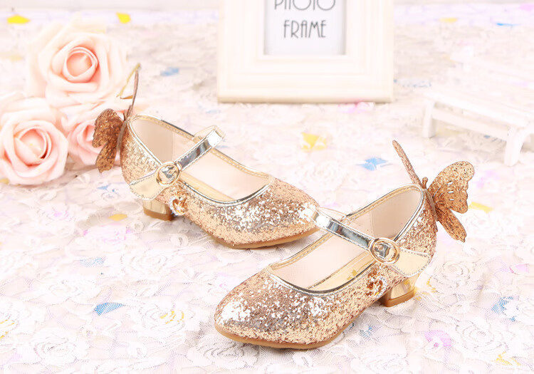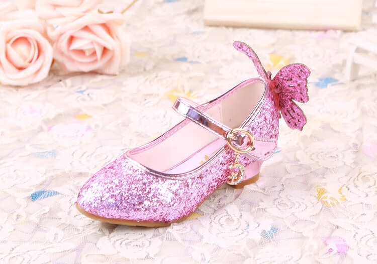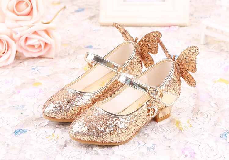 BAOZOUXIE Girls' Single Shoes Butterfly Princess Shoes Children's High-heeled Leather Shoes Little Girls Crystal Shoes Host Dance Performance Blue Size 31 Shoes Inner Length 19.5cm